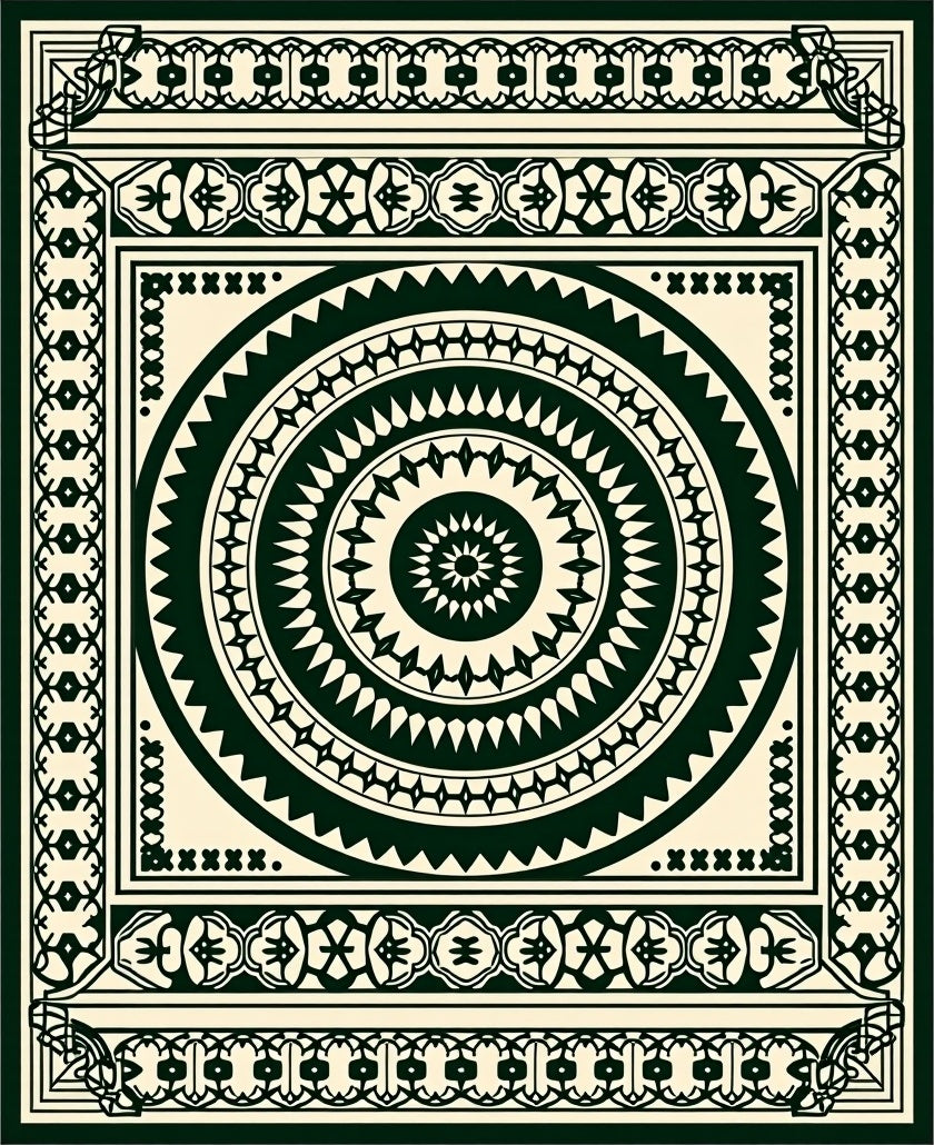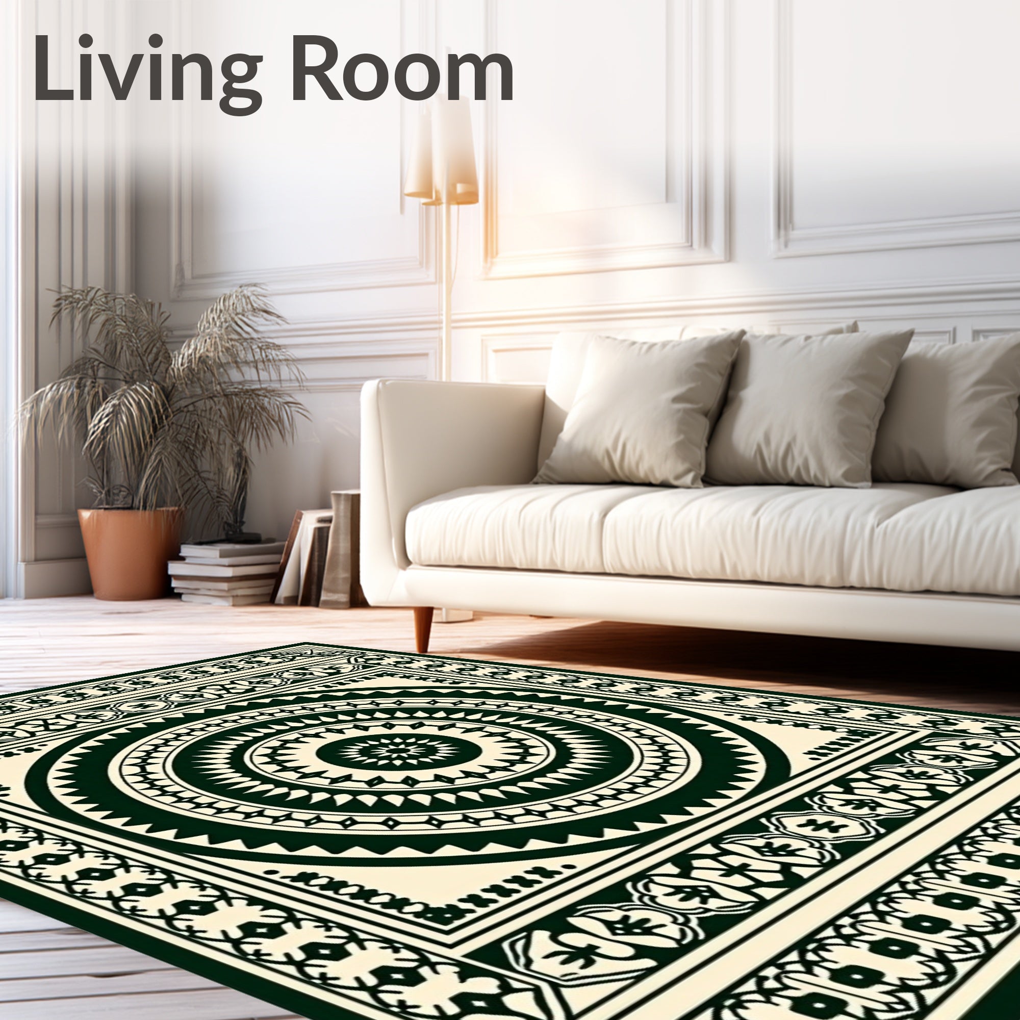 Ultra Soft Area Rug, Non Slip, Stain Resistant, Washable Area Rugs for Living Room, Bedroom, Medallion Mosaic with Ancient Symbol Framework(Green) Overview: