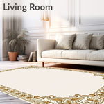 Flatwoven High Traffic Area Rug, Medallion Tapestry Design with Ornate Floral Border, Non Slip, Stain Resistant, Washable Area Rugs for Living Room, Bedroom (Gold) Overview: