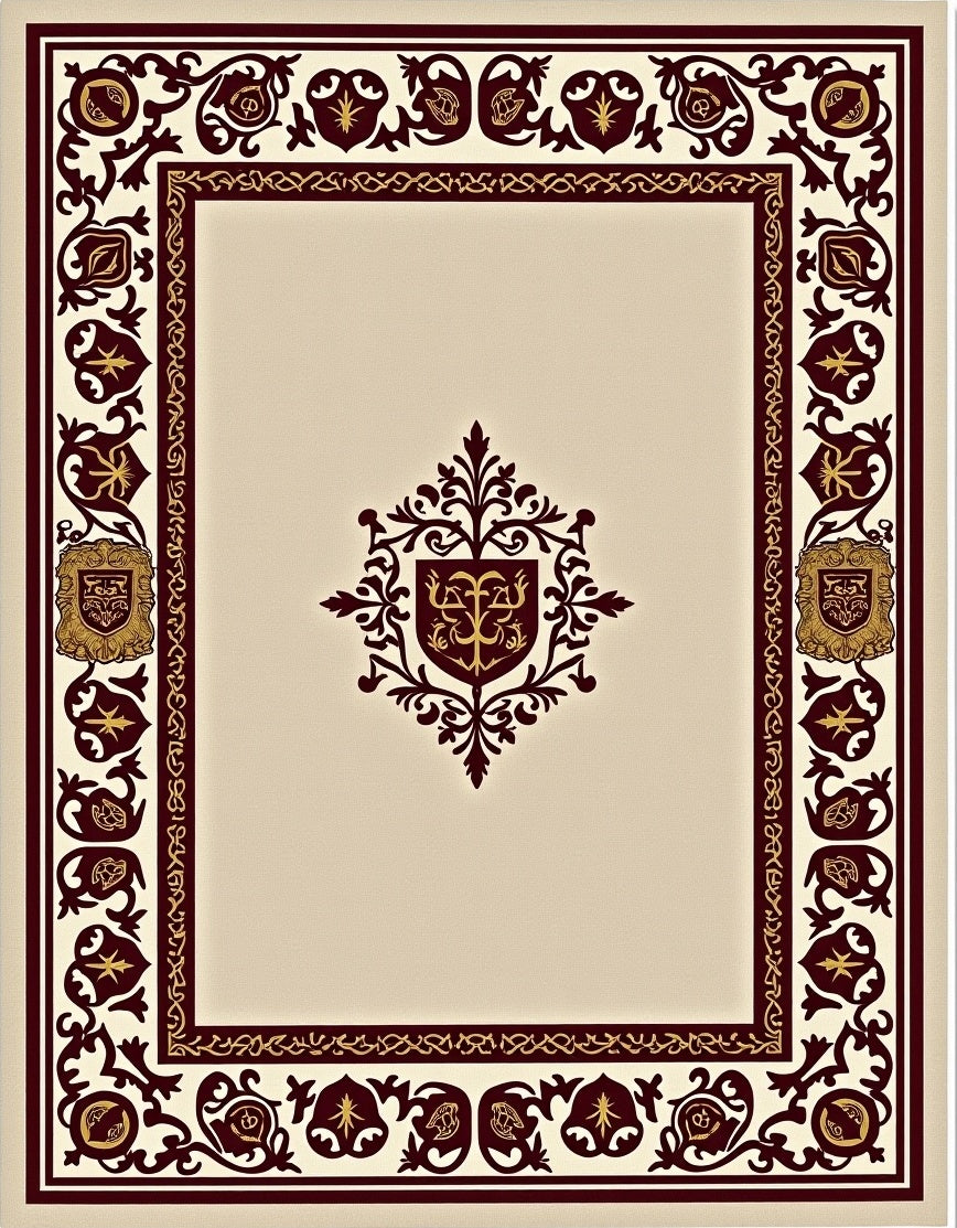 Medieval Tapestry Inspired Heraldic Crest with Flourish(Beige)
