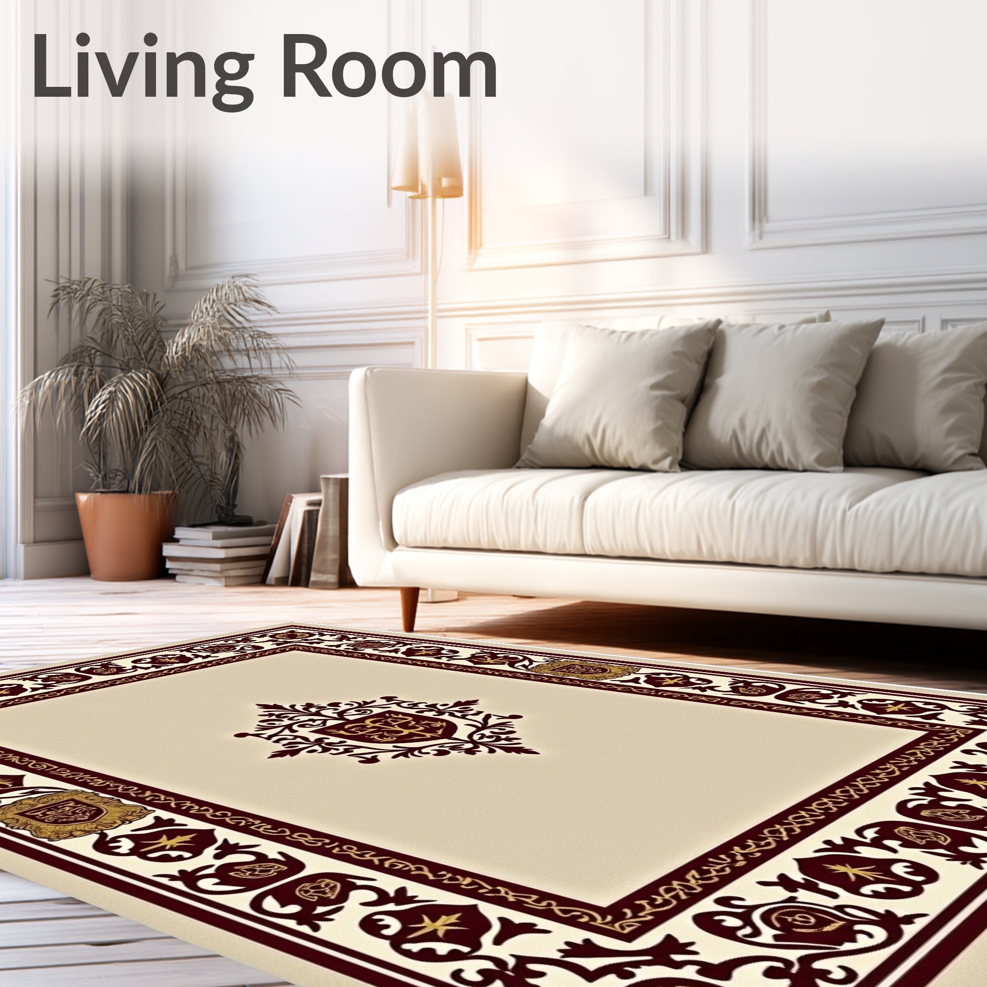 Ultra Soft Area Rug, Non Slip, Stain Resistant, Washable Area Rugs for Living Room, Bedroom, Medieval Tapestry Inspired Heraldic Crest with Flourish(Beige) Overview: