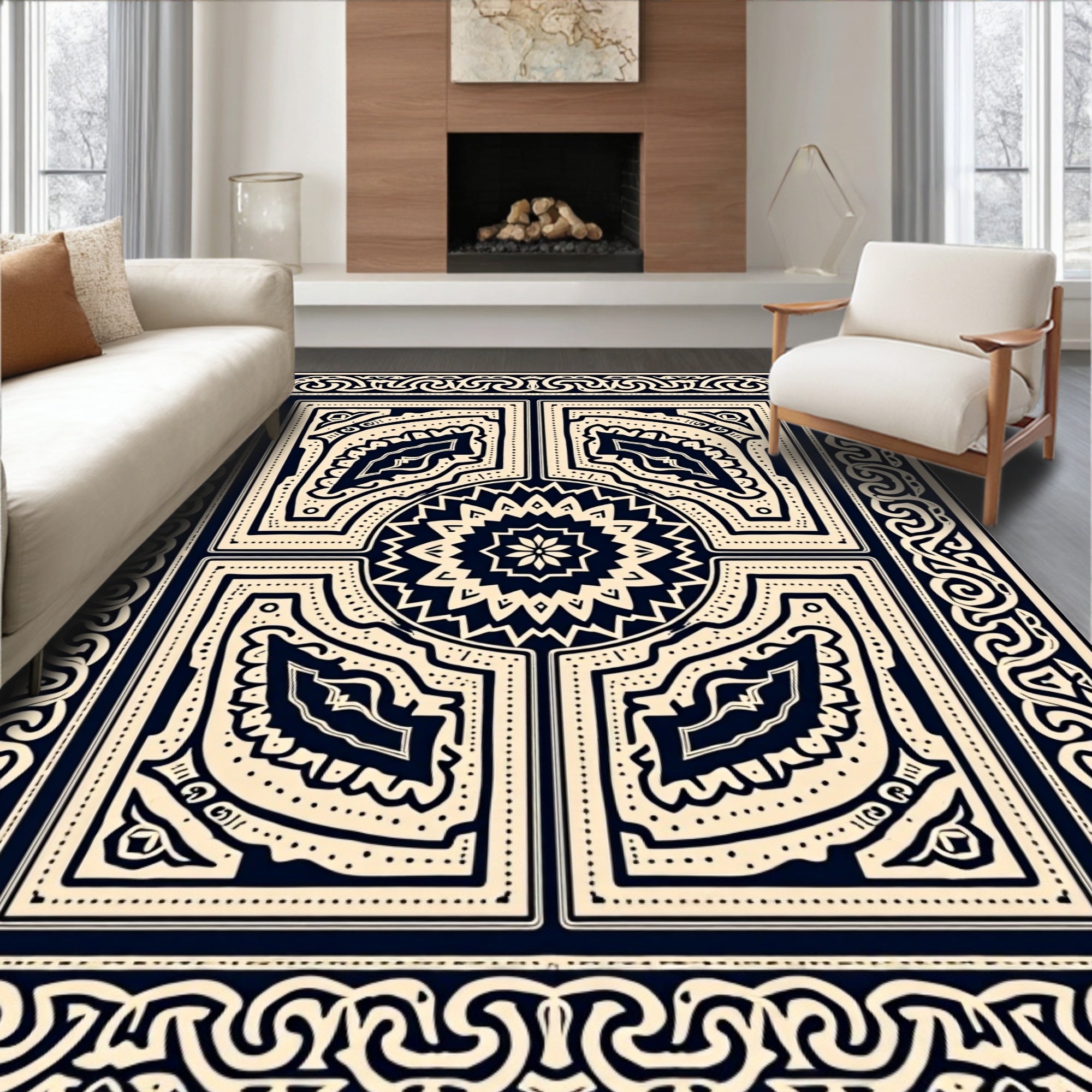 Ultra Soft Area Rug, Non Slip, Stain Resistant, Washable Area Rugs for Living Room, Bedroom, Mediterranean Labyrinth Mosaic Heritage Collection(Black) Overview: