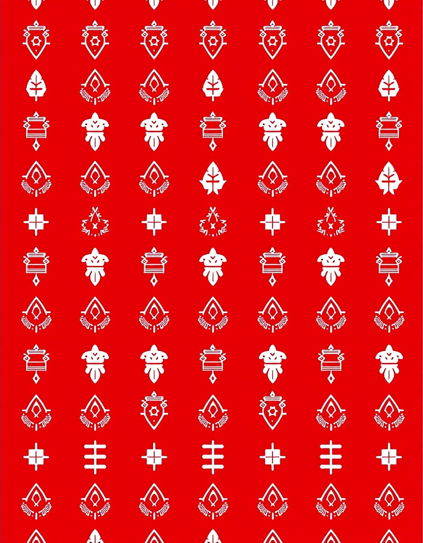 Merry Mosaic with Interwoven Plaid and Stylized Holiday Symbols(Red)