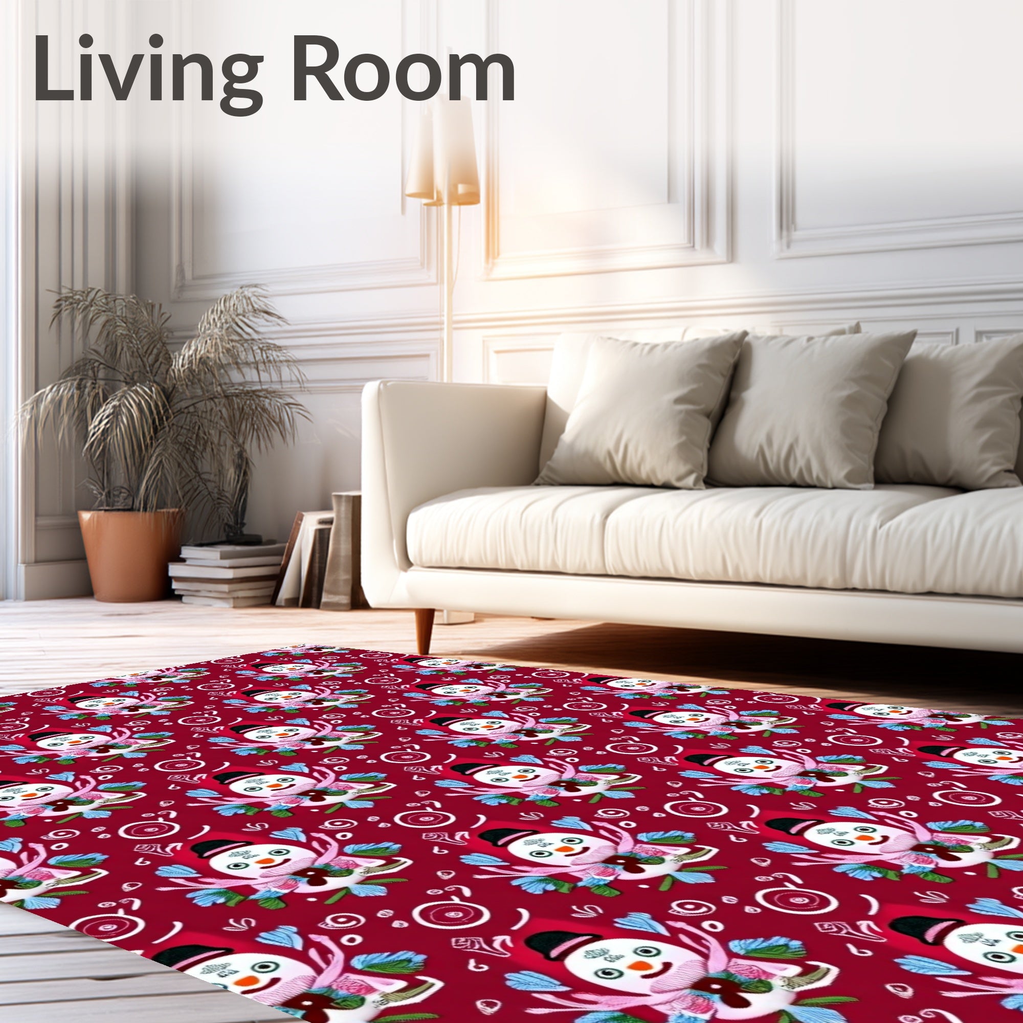 Ultra Soft Area Rug, Non Slip, Stain Resistant, Washable Area Rugs for Living Room, Bedroom, Merry Wintertime Pal Seasonal Festivity Statement(Red) Overview: