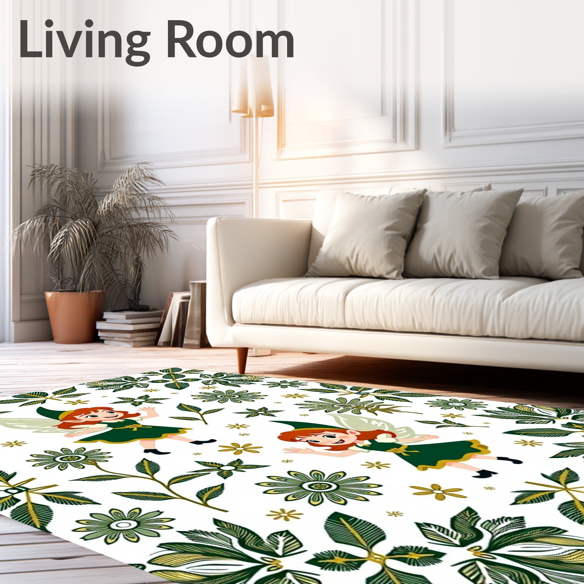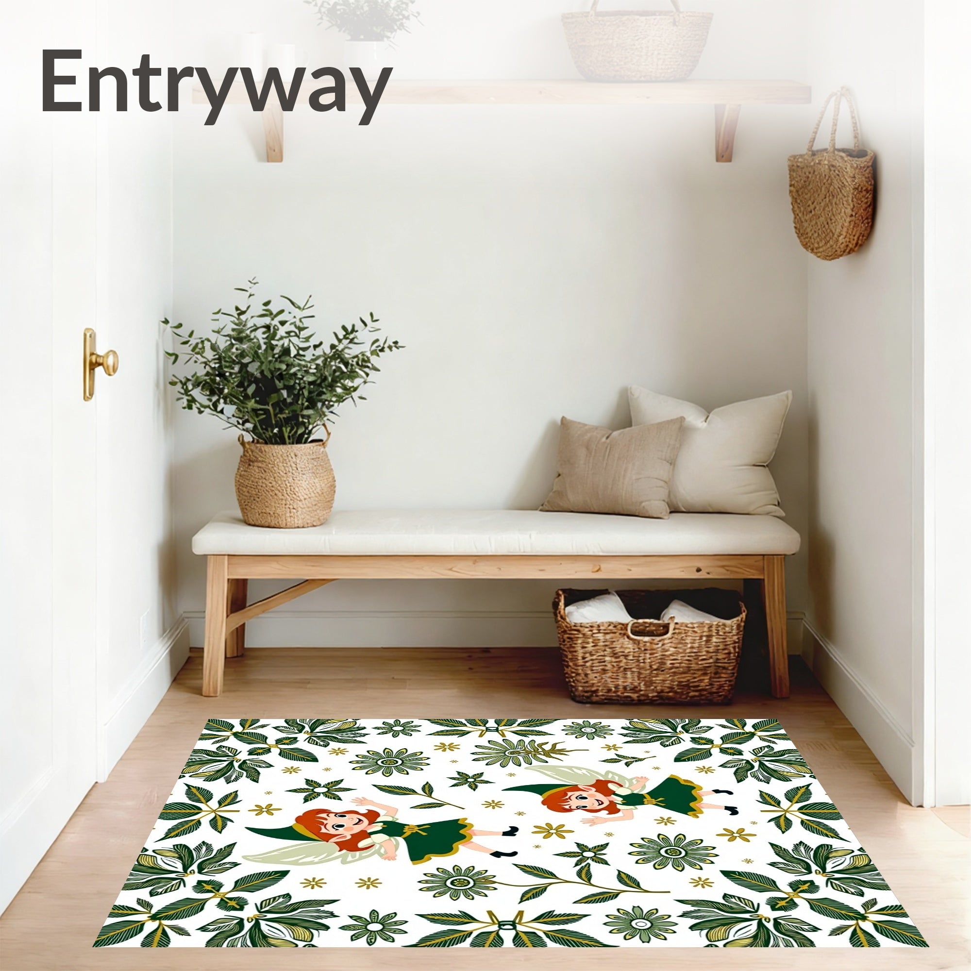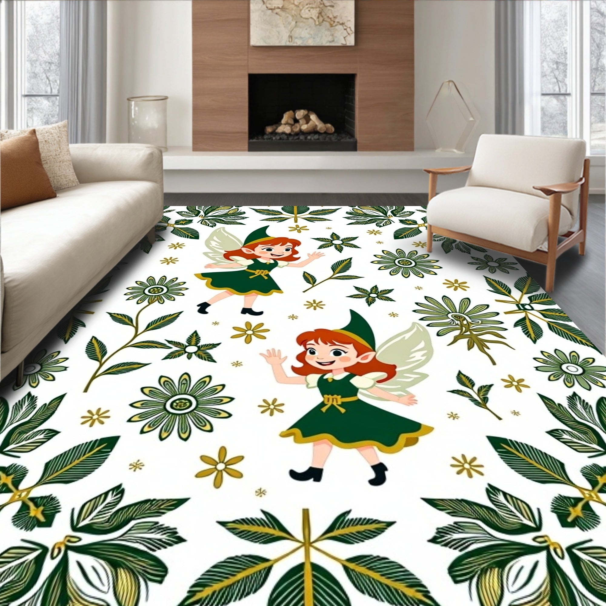Ultra Soft Area Rug, Non Slip, Stain Resistant, Washable Area Rugs for Living Room, Bedroom, Merry Yuletide Pixie Semicircular with Flower Details(Green) Overview: