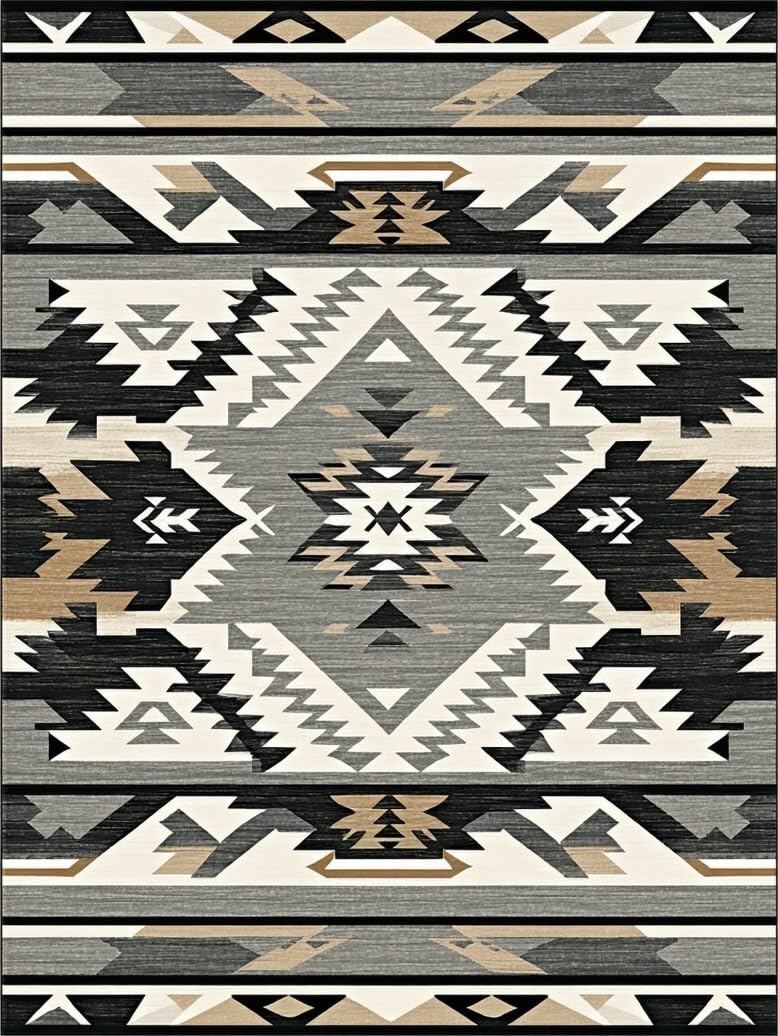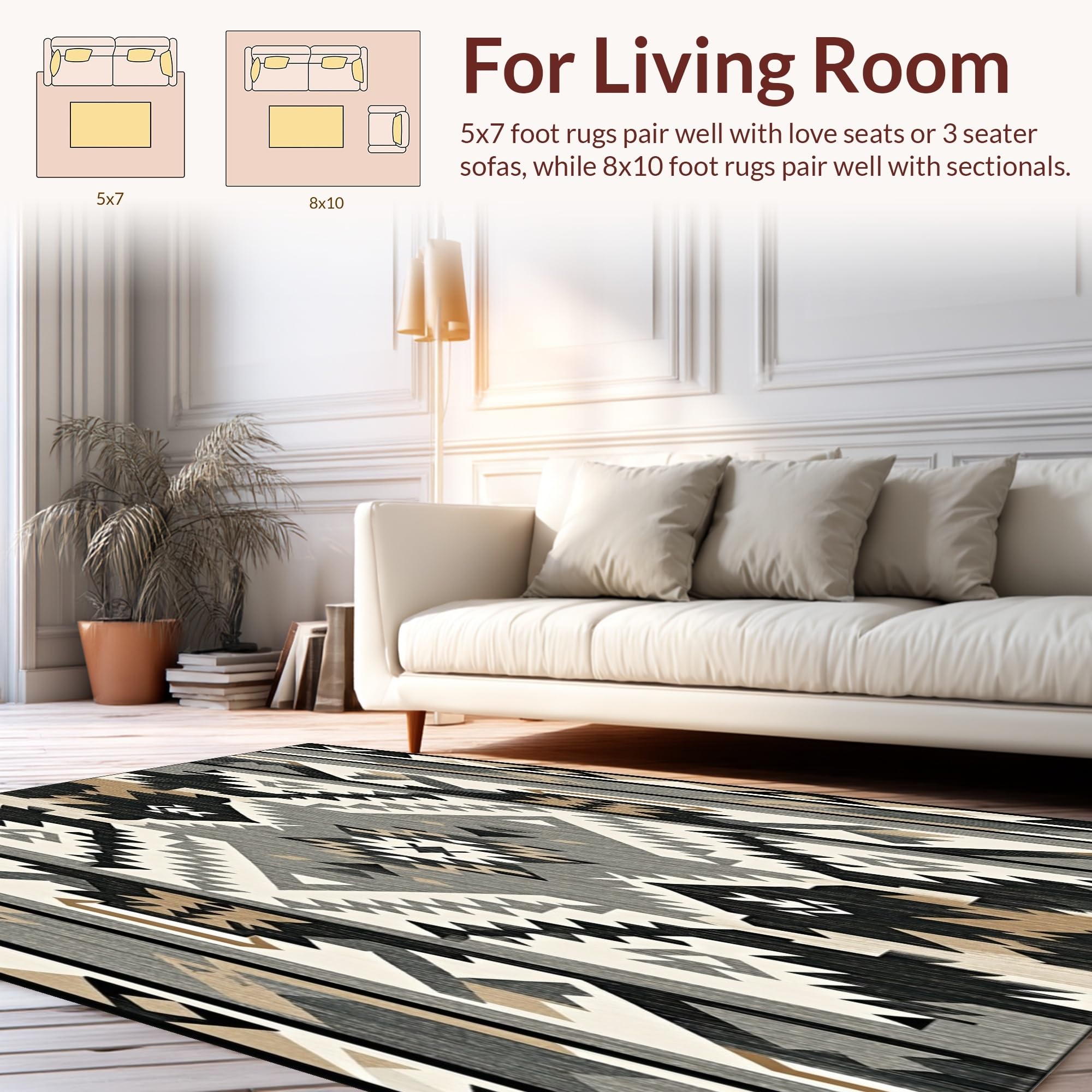 Ultra Soft Area Rug, Non Slip, Stain Resistant, Washable Area Rugs for Living Room, Bedroom, Mesa Vista Geometric Area With Authentic Tribal Artistry(Gray) Overview: