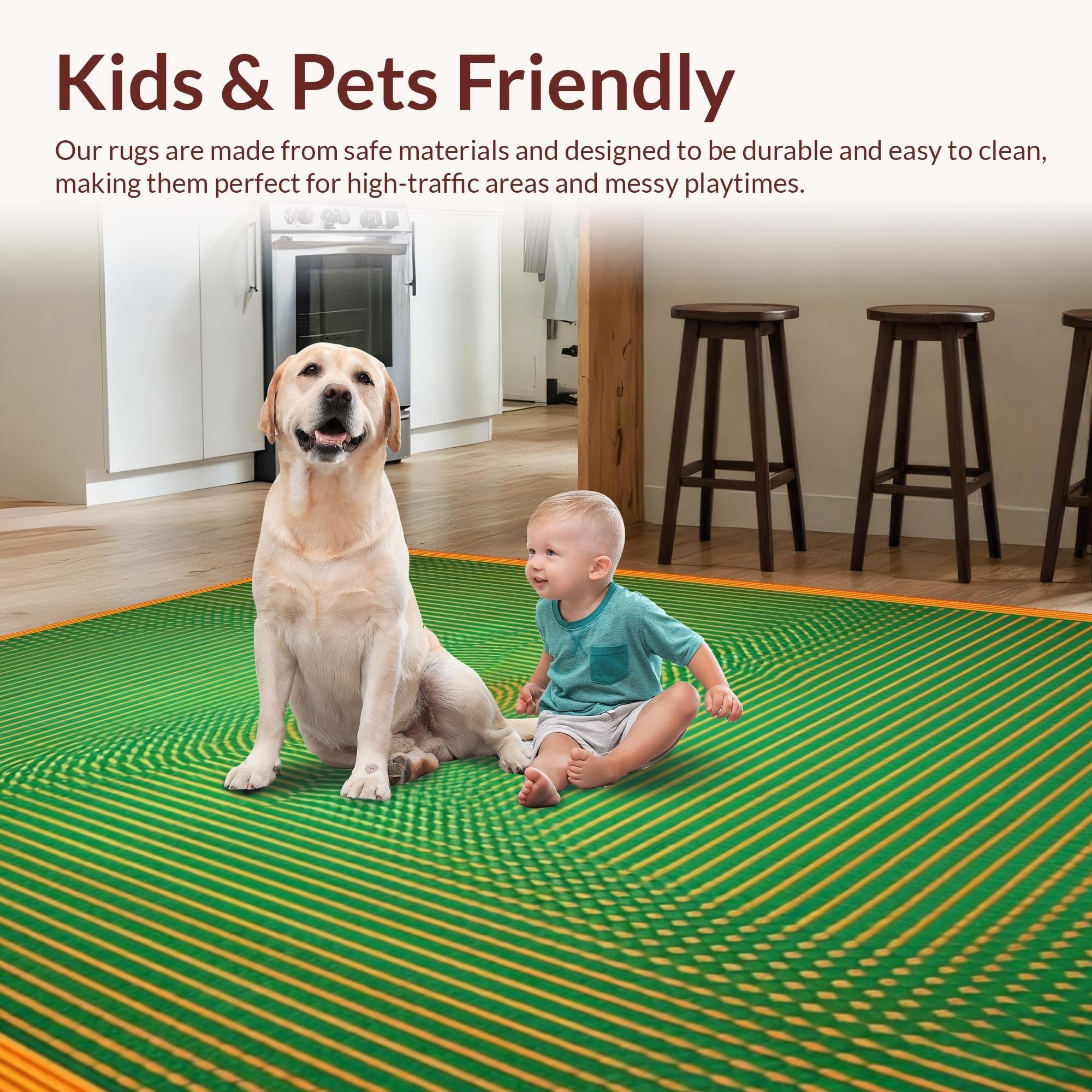 Ultra Soft Area Rug, Non Slip, Stain Resistant, Washable Area Rugs for Living Room, Bedroom, Mesmerizing Colorful Abstract Pattern(Green) Overview: