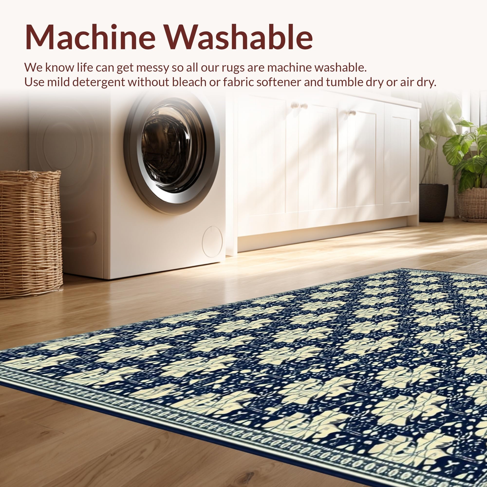 - Machine Washable: Our rugs can be easily thrown in the wash machine.
