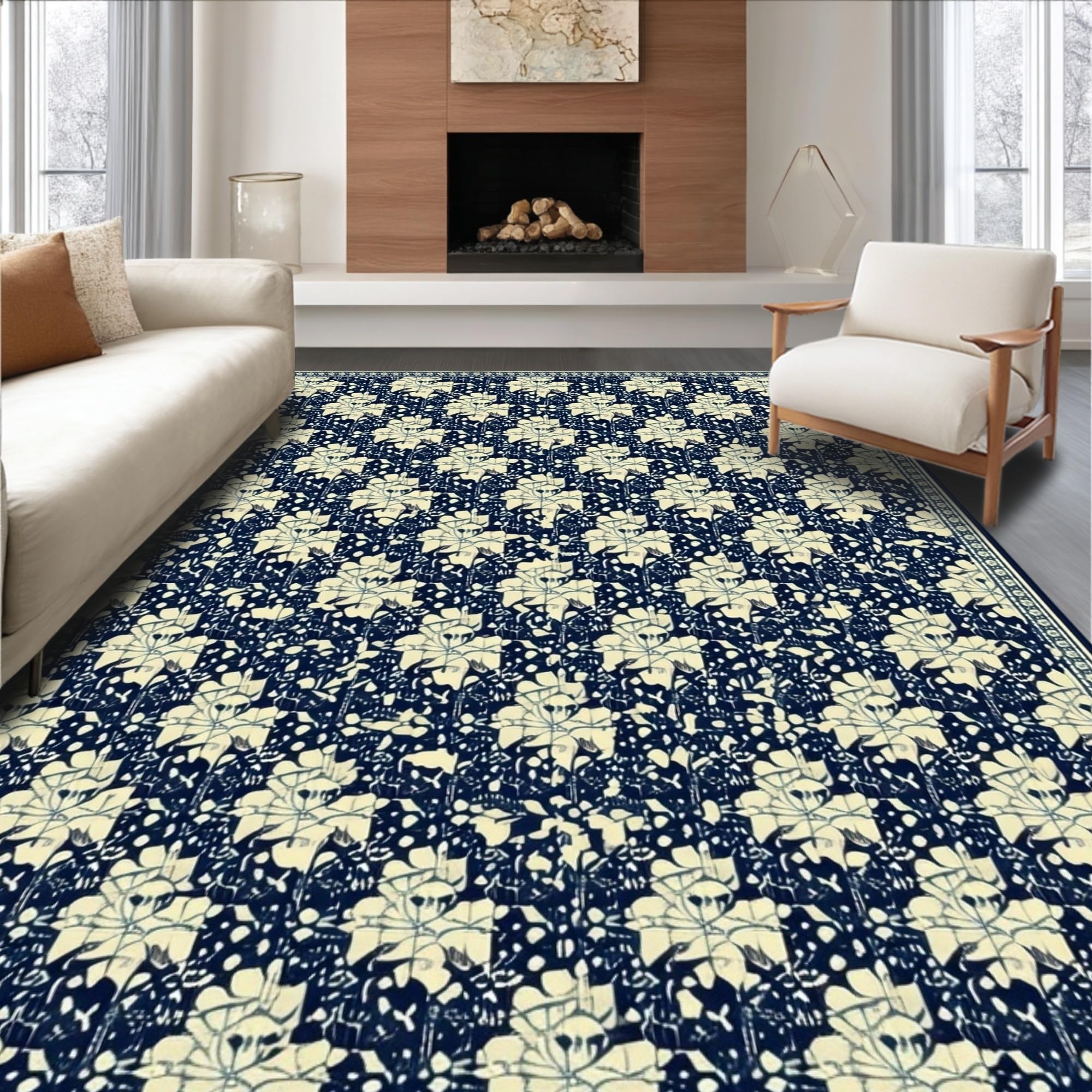 Ultra Soft Area Rug, Non Slip, Stain Resistant, Washable Area Rugs for Living Room, Bedroom, Mid Century Blue Beige Area for Home Decor(Blue) Overview:
