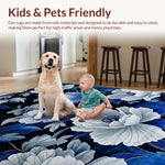 Ultra Soft Area Rug, Non Slip, Stain Resistant, Washable Area Rugs for Living Room, Bedroom, Midnight Bloom Abstract Floral Design Rug for Home Decor(Blue) Overview: