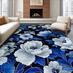 Midnight Bloom Abstract Floral Design Rug for Home Decor(Blue)