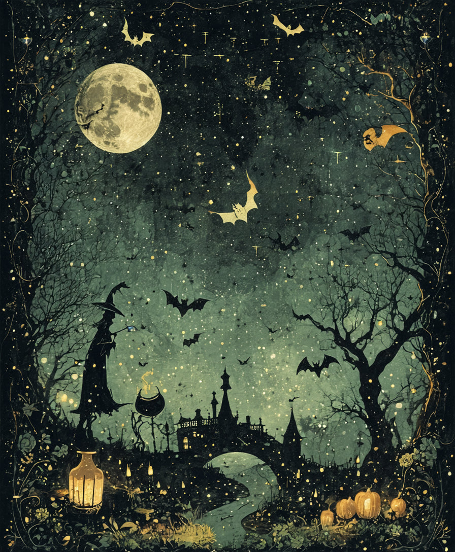 Midnight Coven Pair Bewitched Floor Art Enchanted Black(Black)