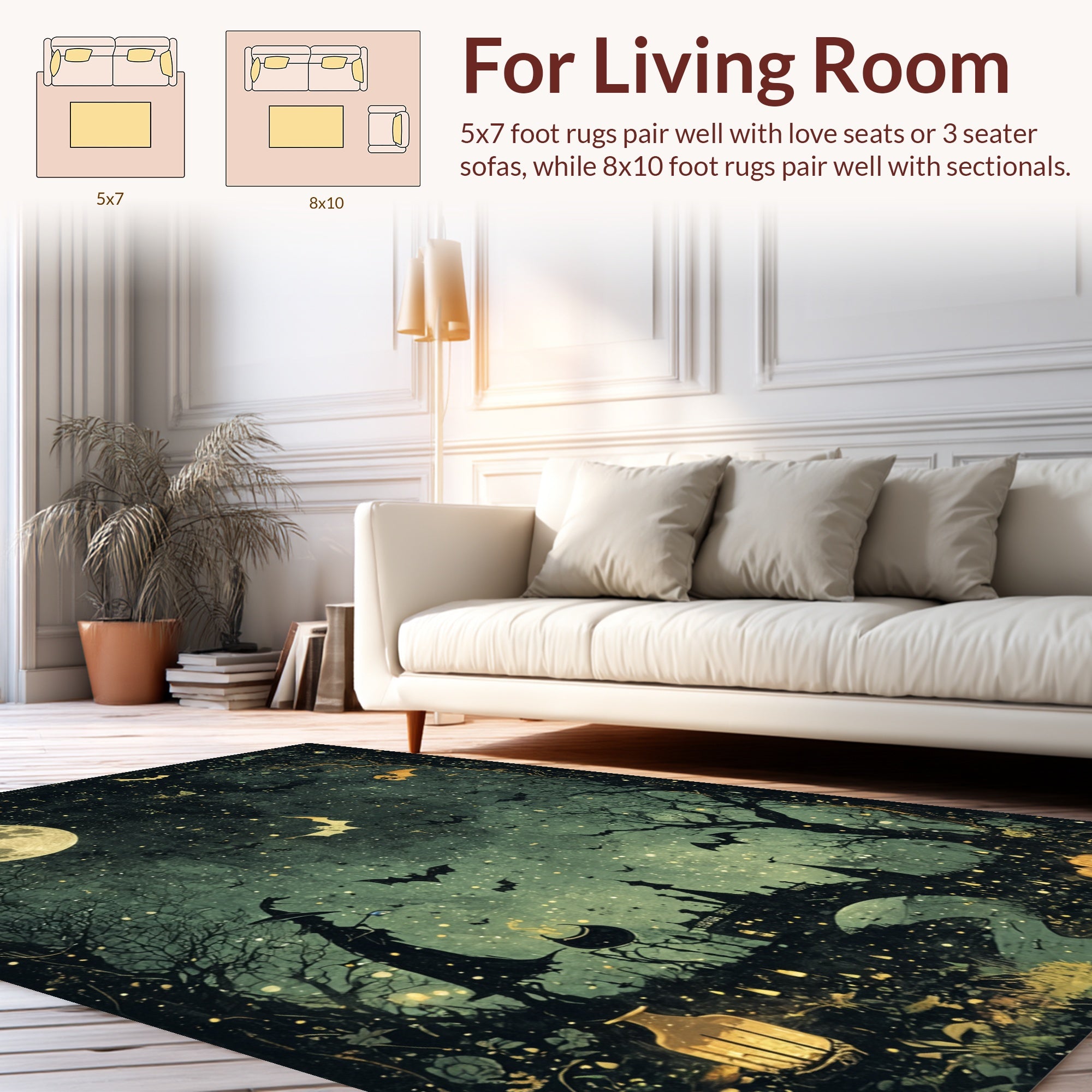 Flatwoven High Traffic Area Rug, Midnight Coven Pair Bewitched Floor Art Enchanted Black, Non Slip, Stain Resistant, Washable Area Rugs for Living Room, Bedroom (Black) Overview: