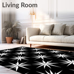 Ultra Soft Area Rug, Non Slip, Stain Resistant, Washable Area Rugs for Living Room, Bedroom, Midnight Interlocking Starburst with Art Accents(Black) Overview: