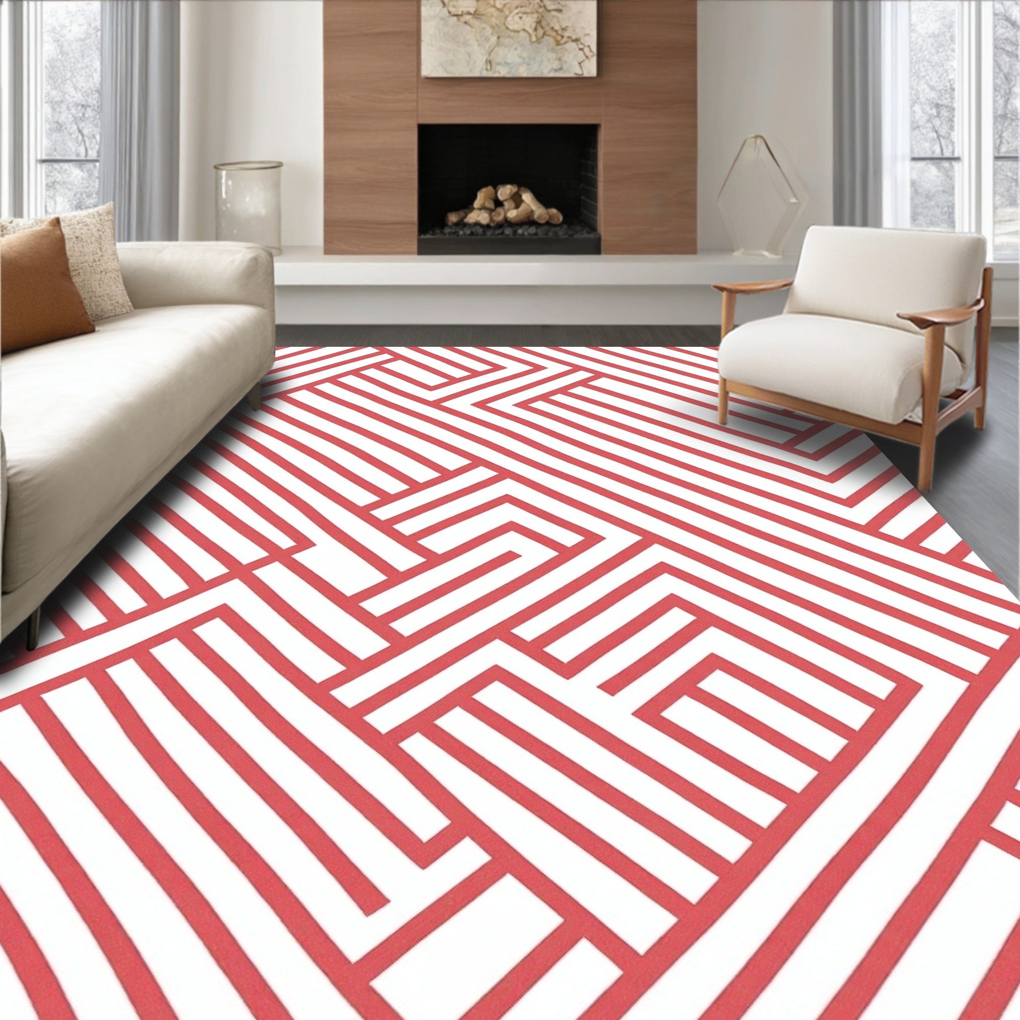 Ultra Soft Area Rug, Non Slip, Stain Resistant, Washable Area Rugs for Living Room, Bedroom, Minimal Herringbone Zigzag Farmhouse Trendy(Red) Overview: