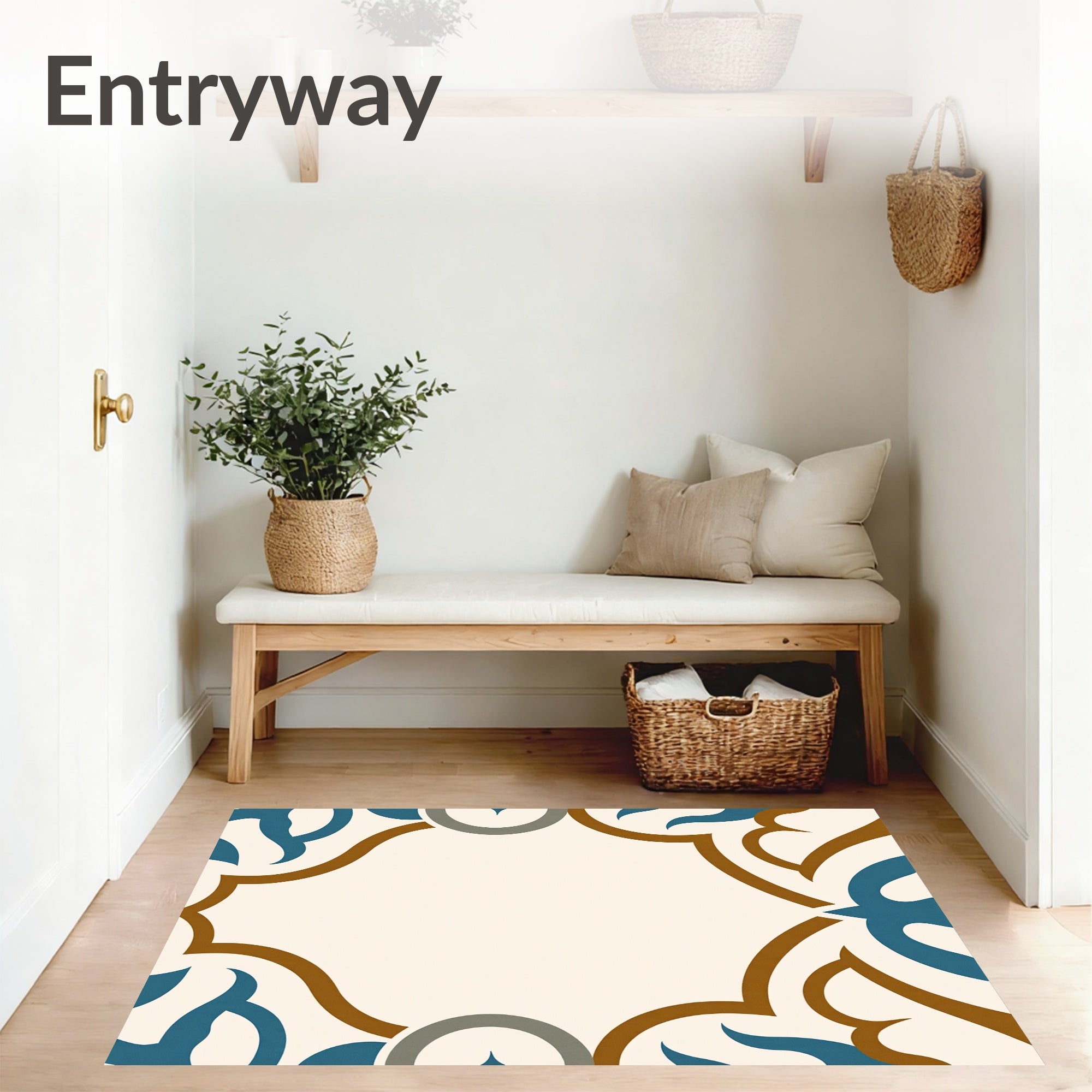 Ultra Soft Area Rug, Non Slip, Stain Resistant, Washable Area Rugs for Living Room, Bedroom, Minimalist Art Overlay with Stylized Arch Details(Brown) Overview: