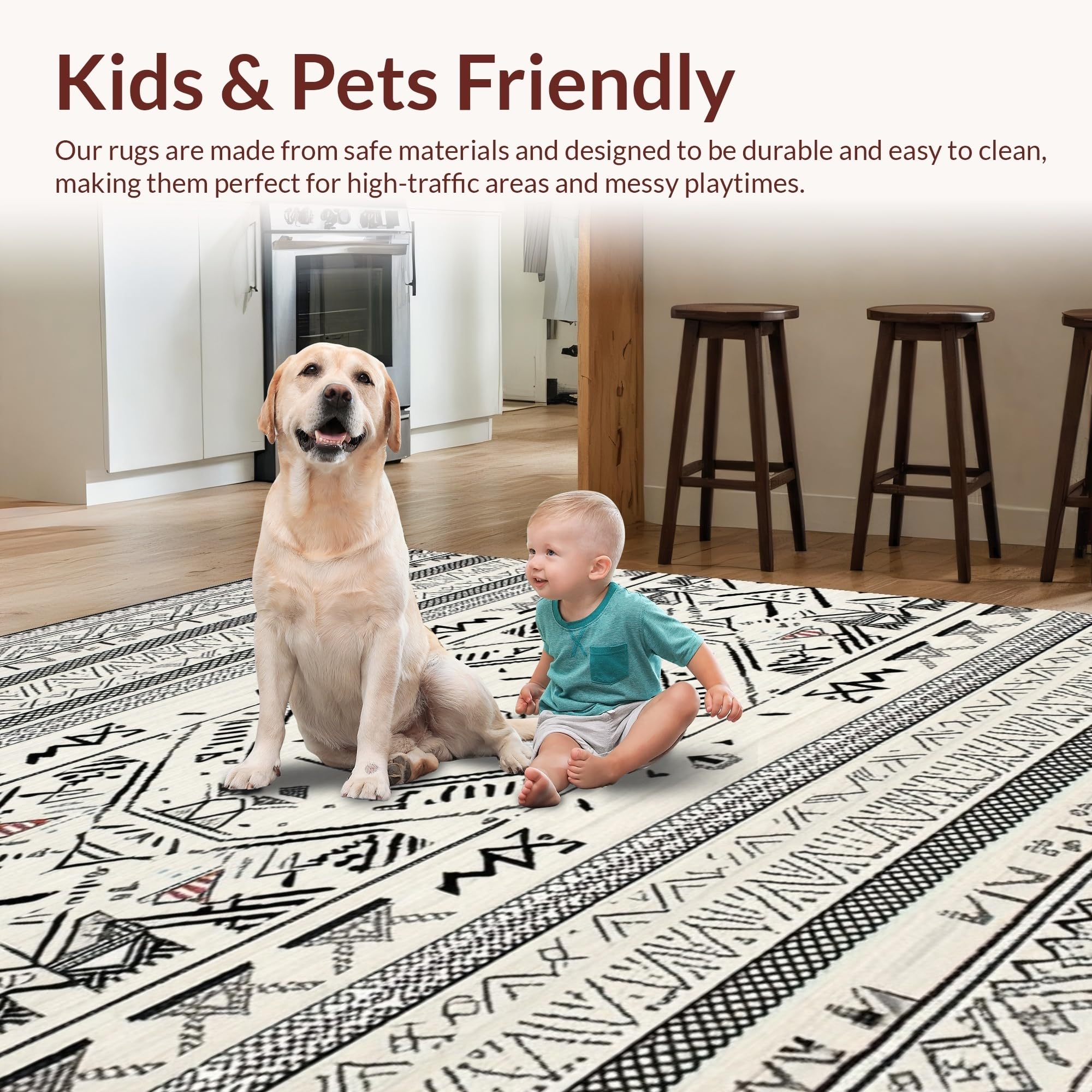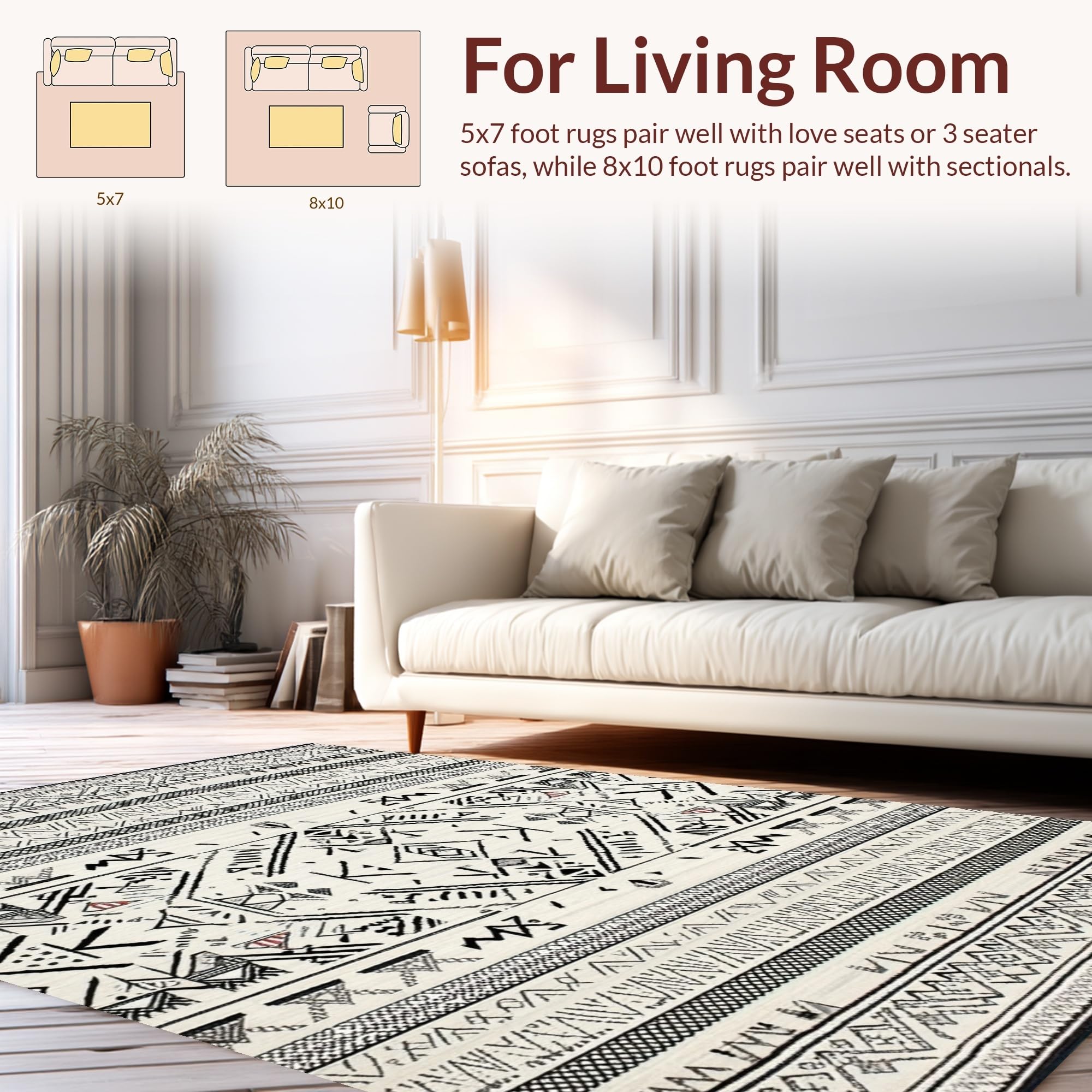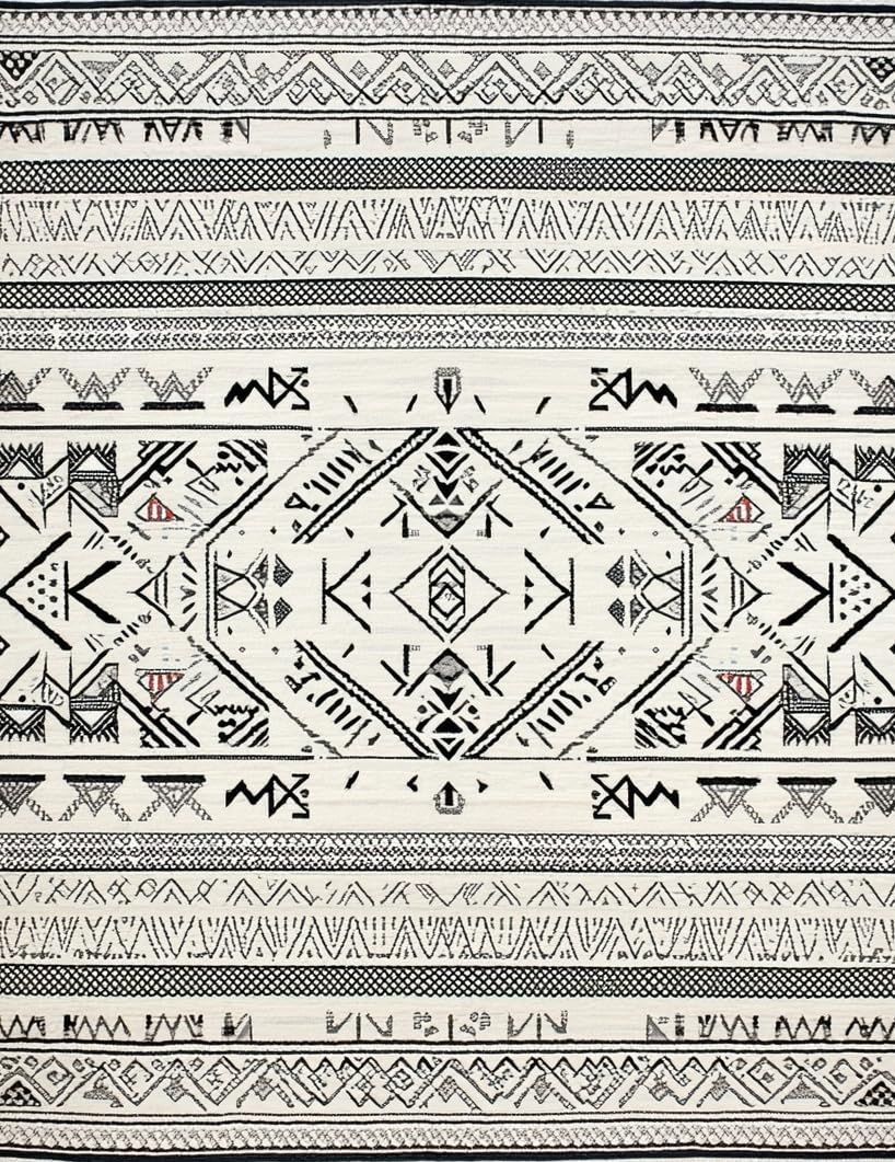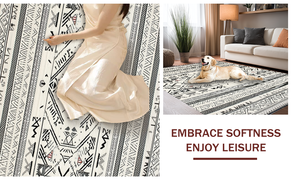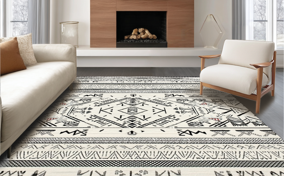 Ultra Soft Area Rug, Non Slip, Stain Resistant, Washable Area Rugs for Living Room, Bedroom, Minimalist Black and Ivory Pattern(Black) Overview: