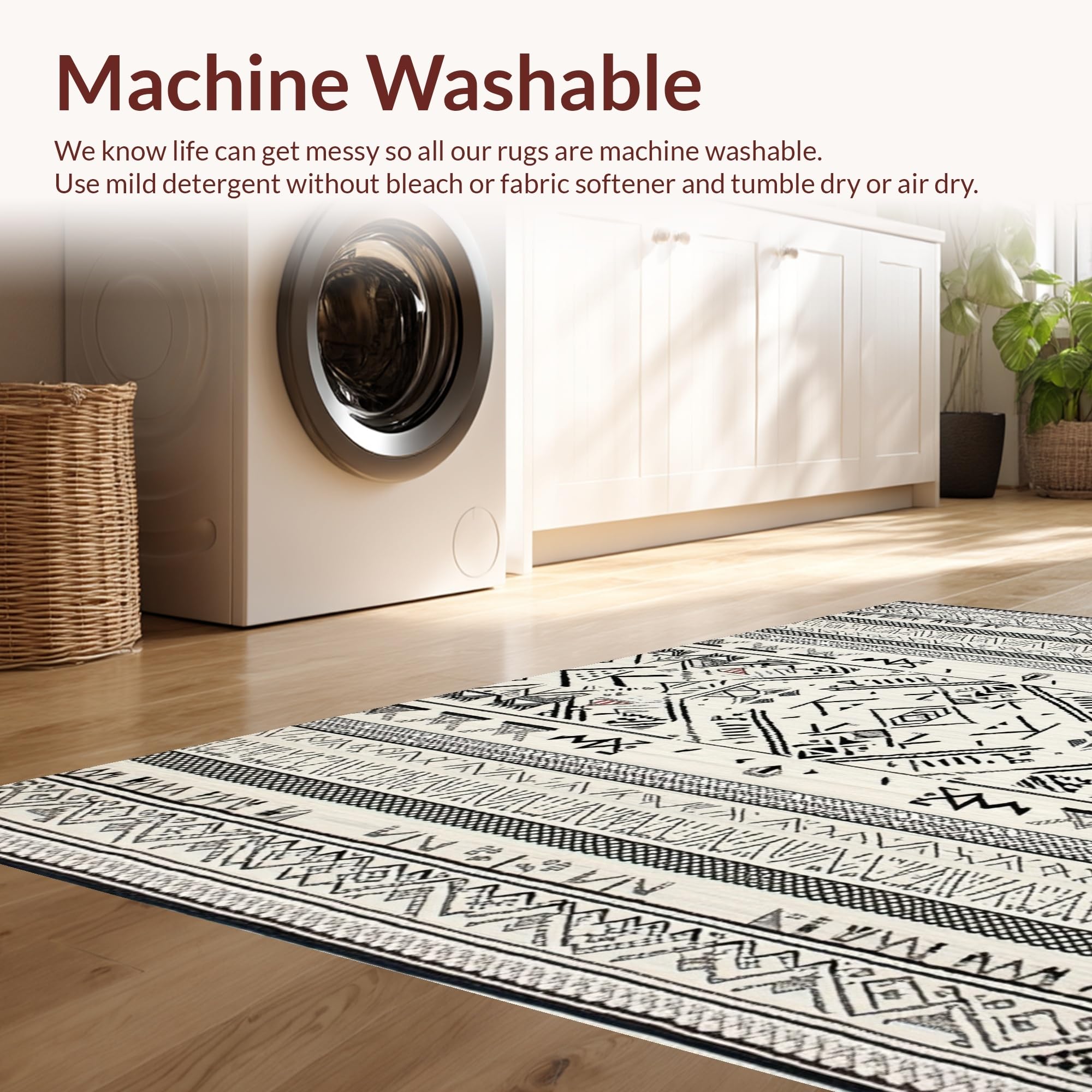 - Machine Washable: Our rugs can be easily thrown in the wash machine.