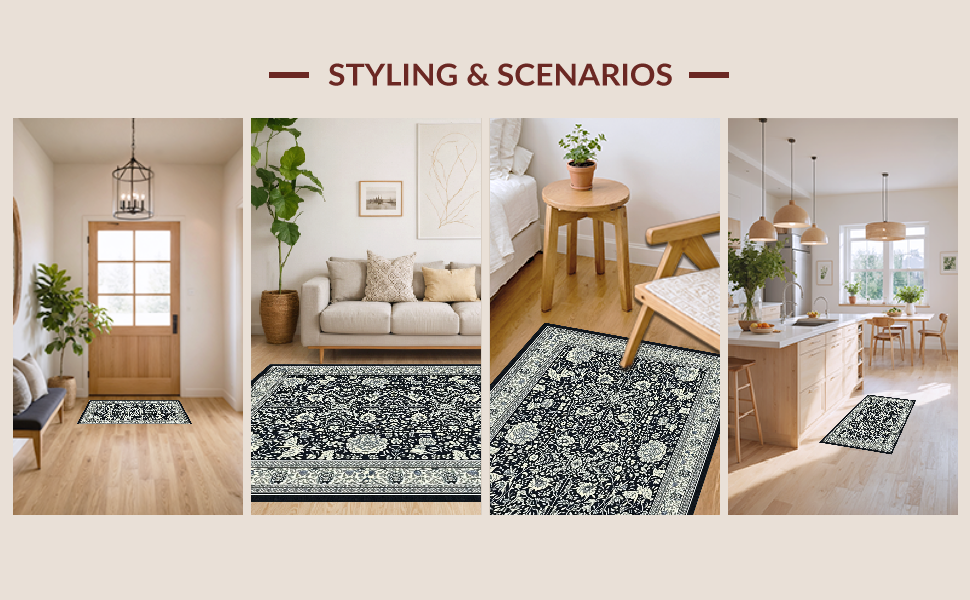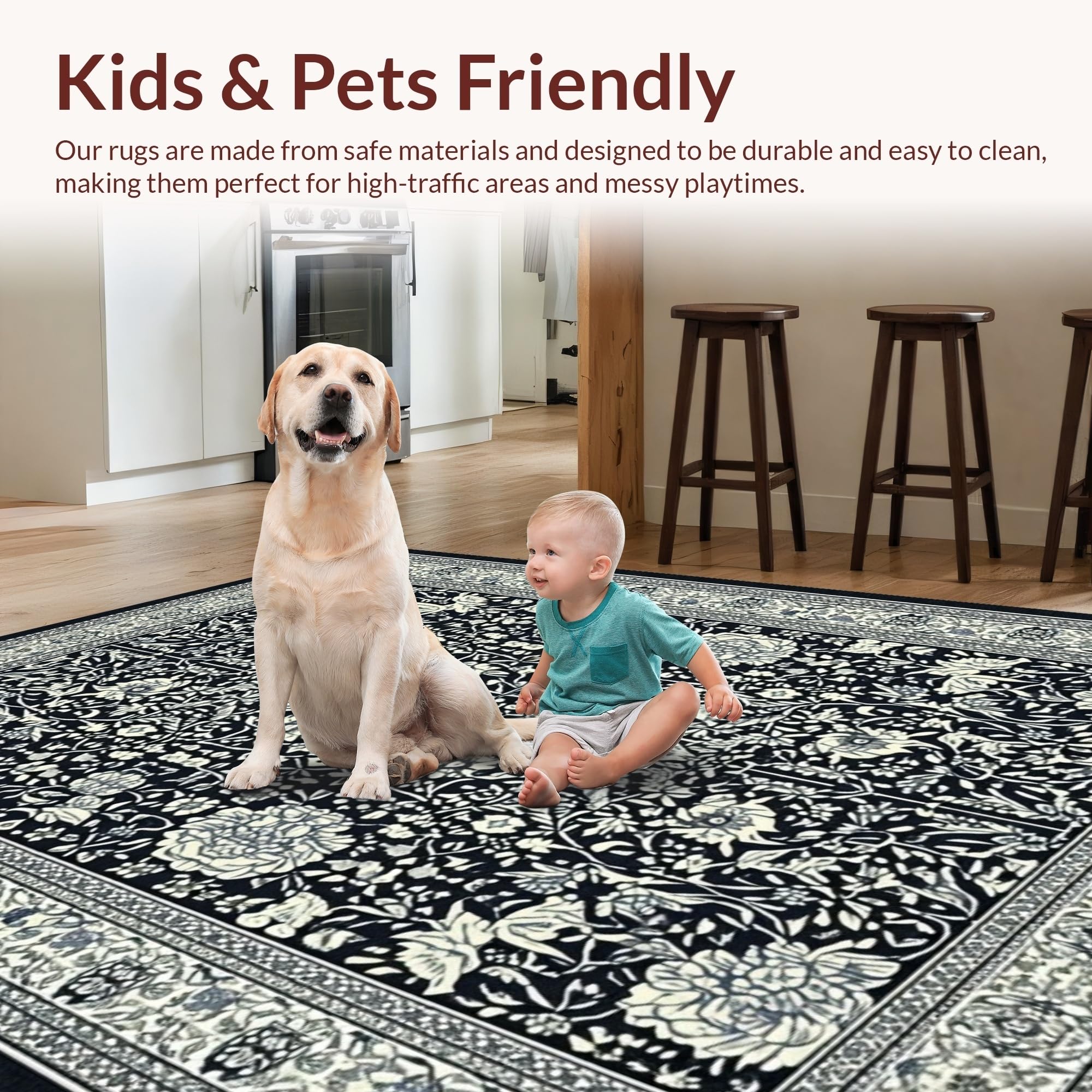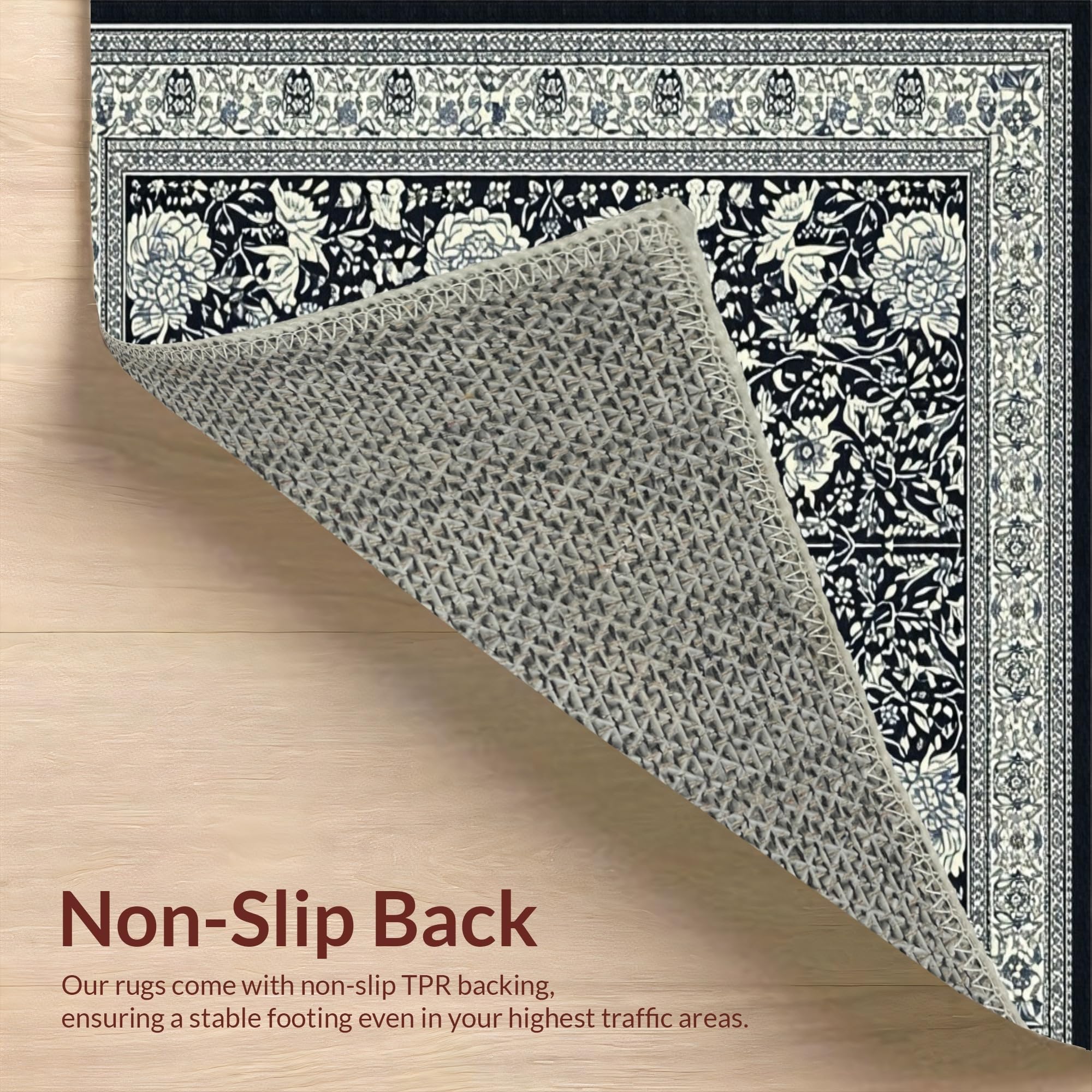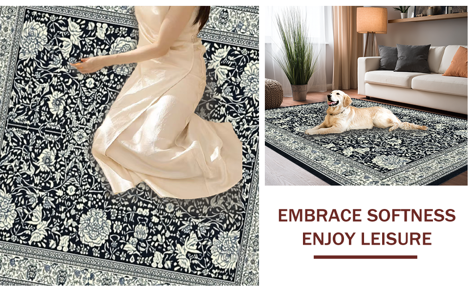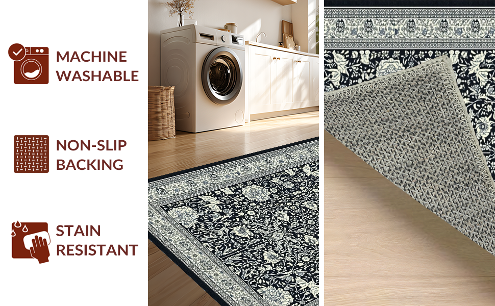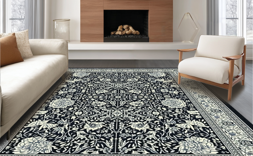 Ultra Soft Area Rug, Non Slip, Stain Resistant, Washable Area Rugs for Living Room, Bedroom, Minimalist Black Floral Texture(Black) Overview: