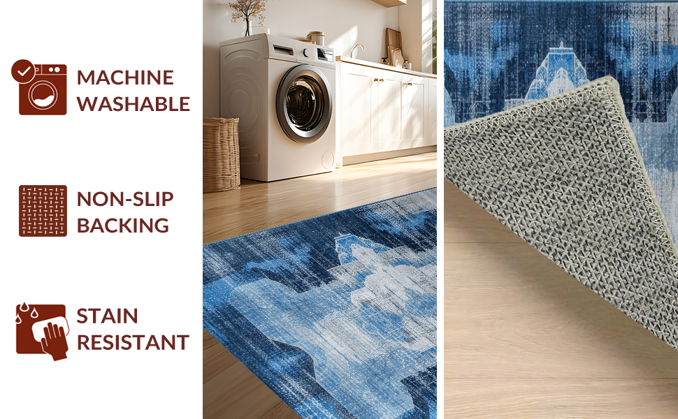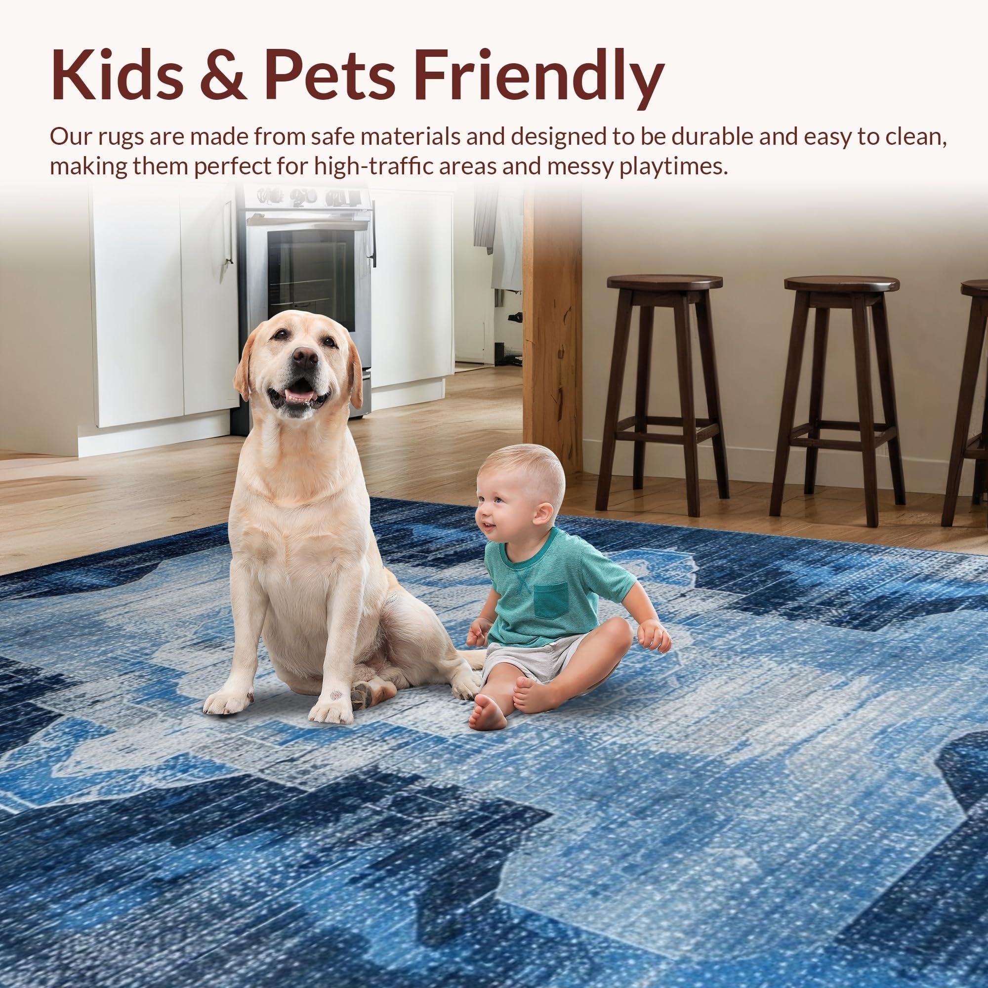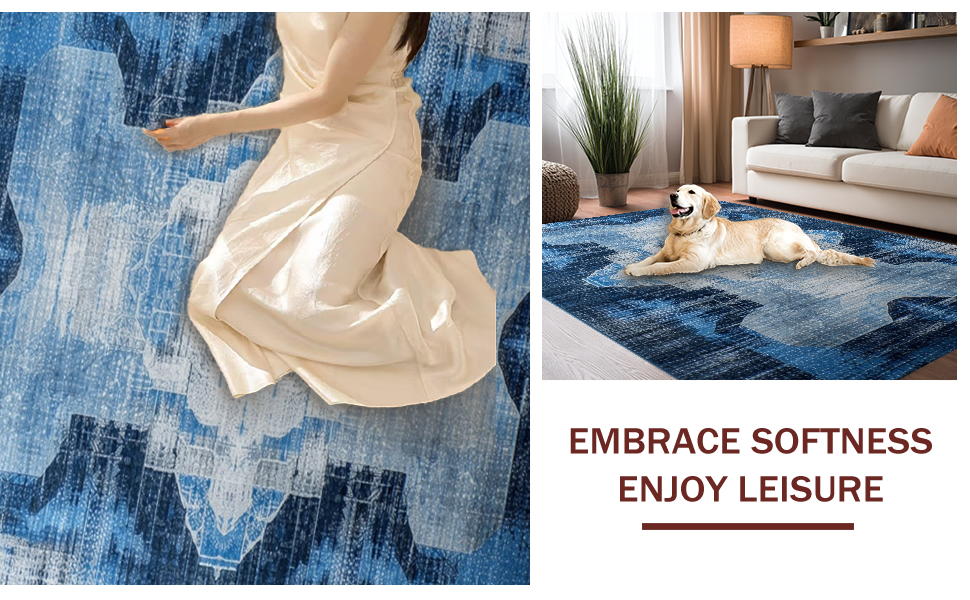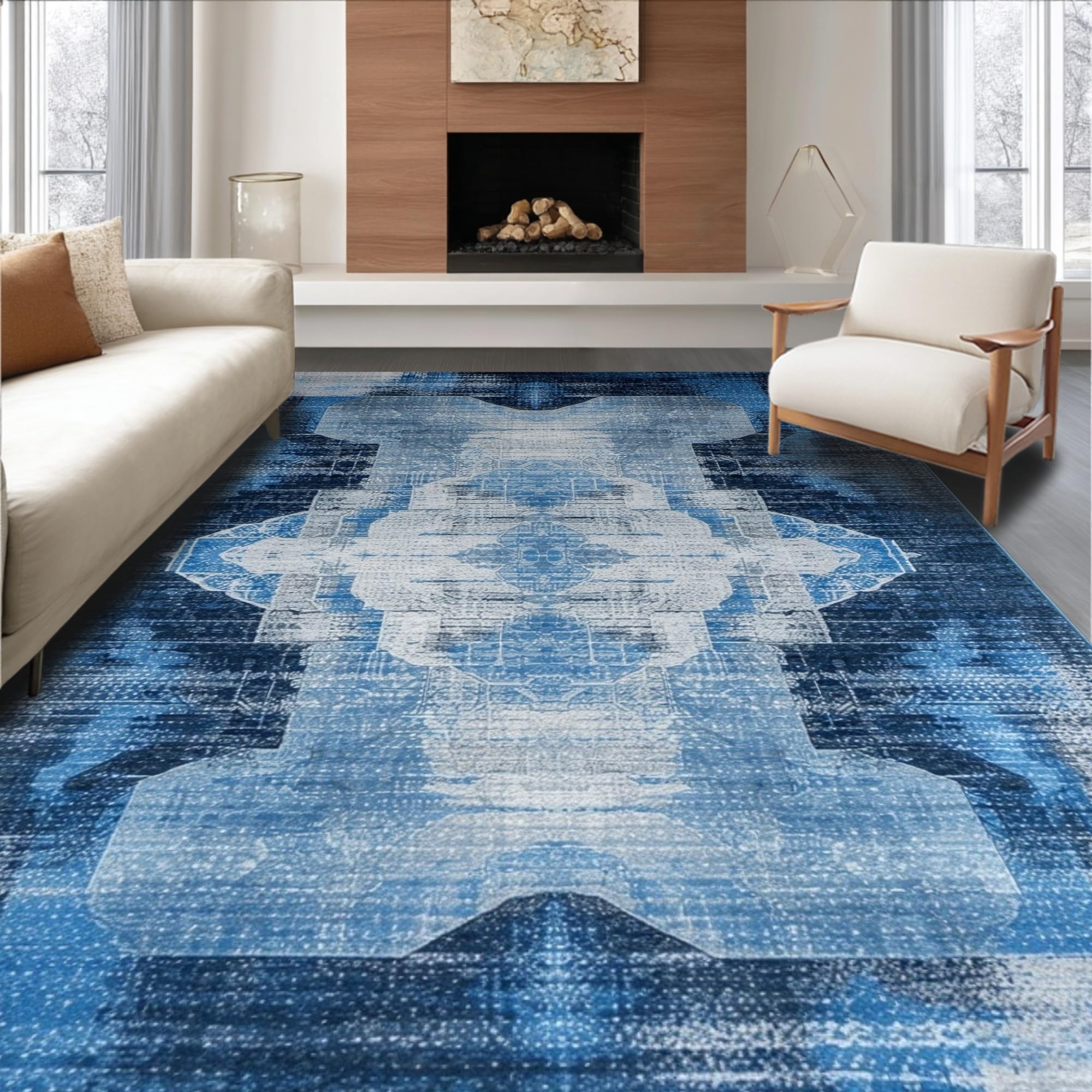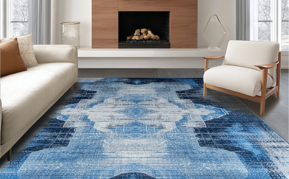Ultra Soft Area Rug, Non Slip, Stain Resistant, Washable Area Rugs for Living Room, Bedroom, Minimalist Blue and Gray Fusion(Blue) Overview:
