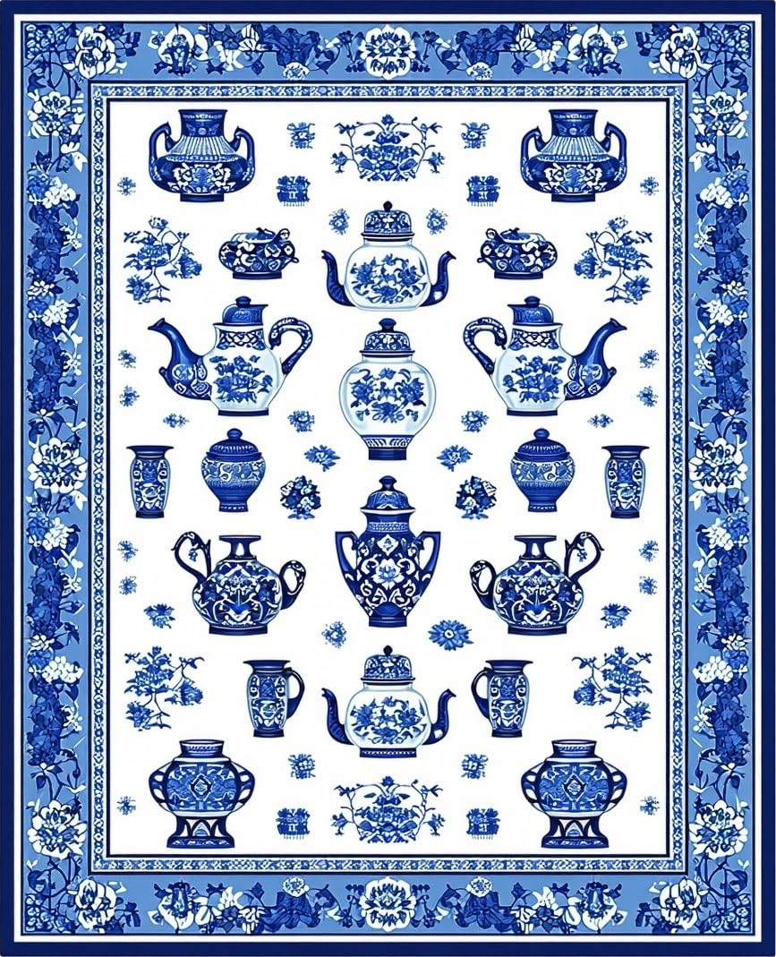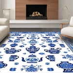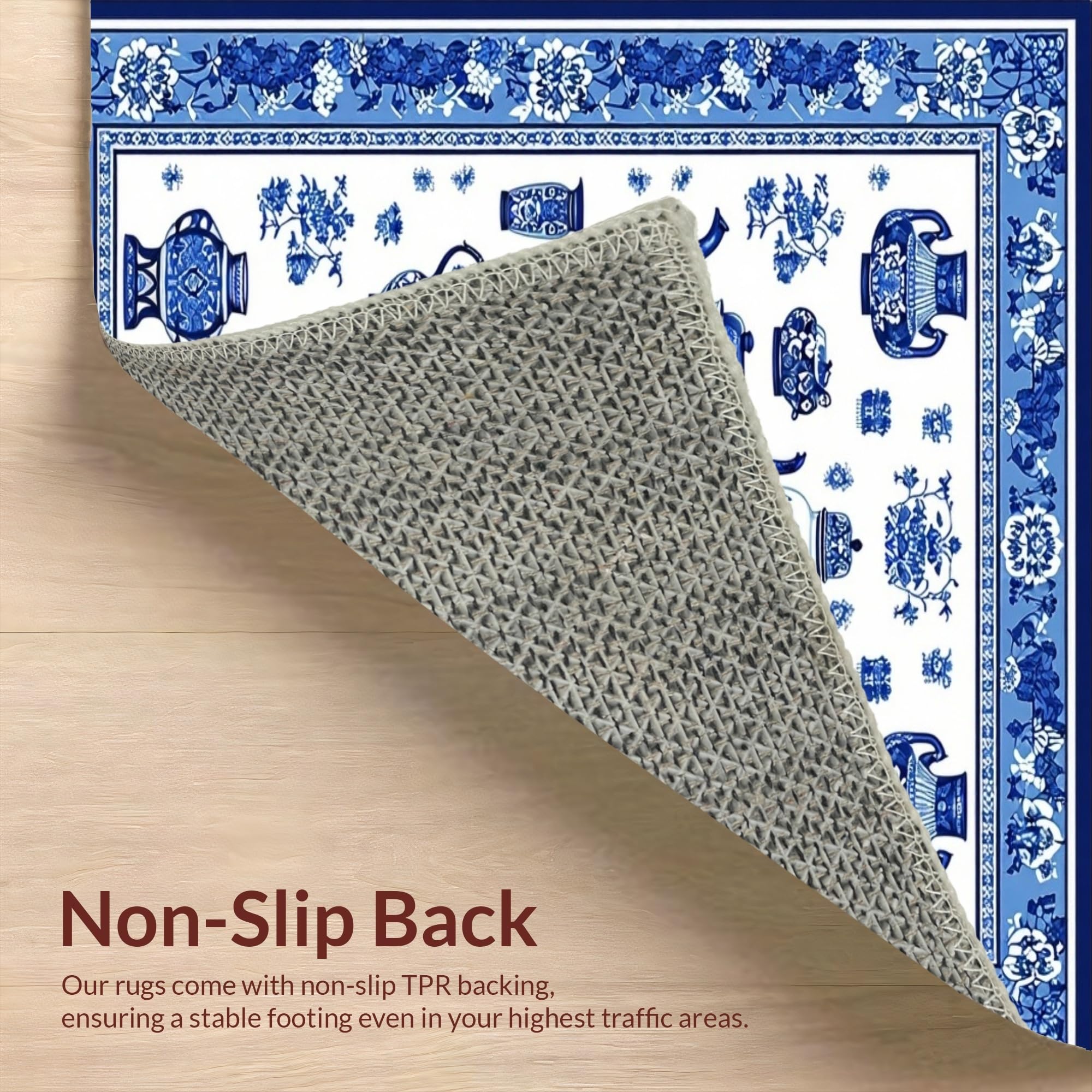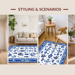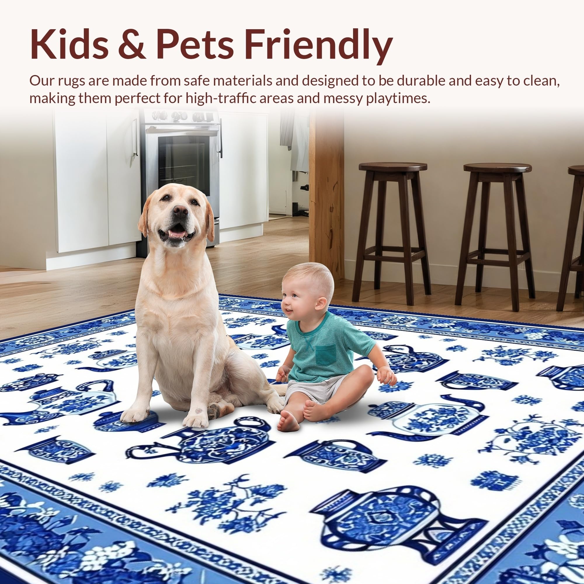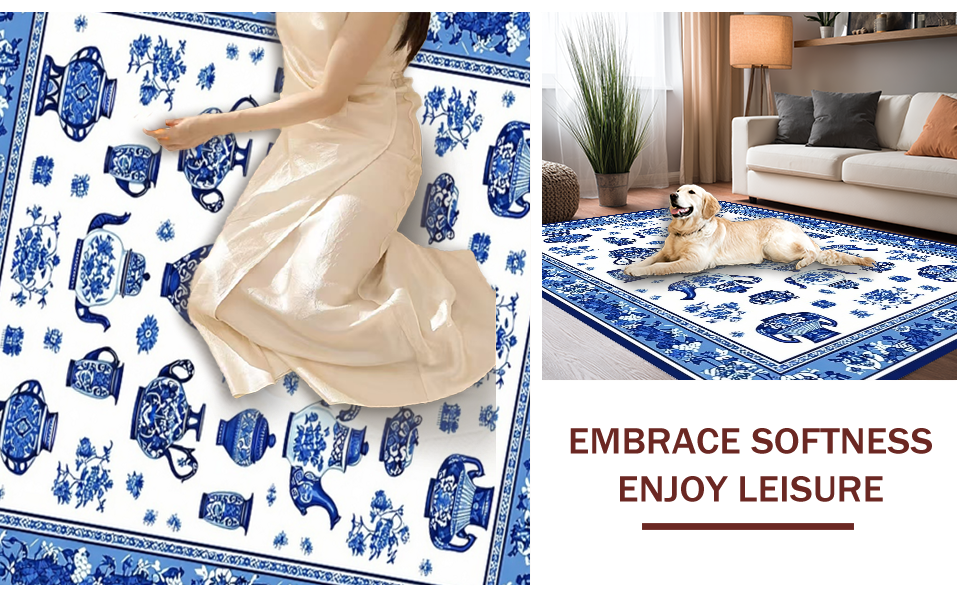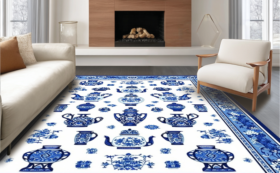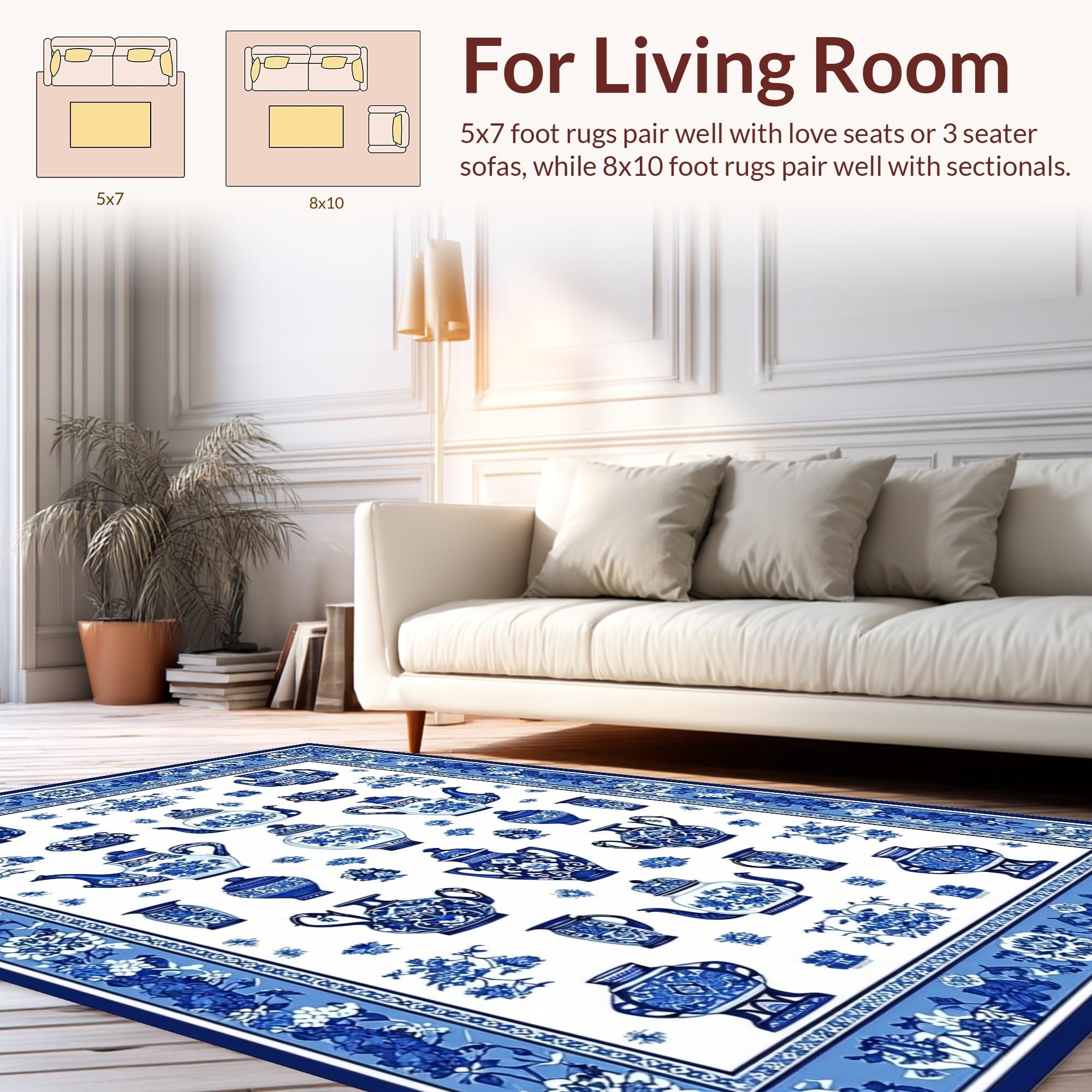 Ultra Soft Area Rug, Non Slip, Stain Resistant, Washable Area Rugs for Living Room, Bedroom, Minimalist Blue Ogee Design Theme(Blue) Overview: