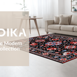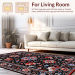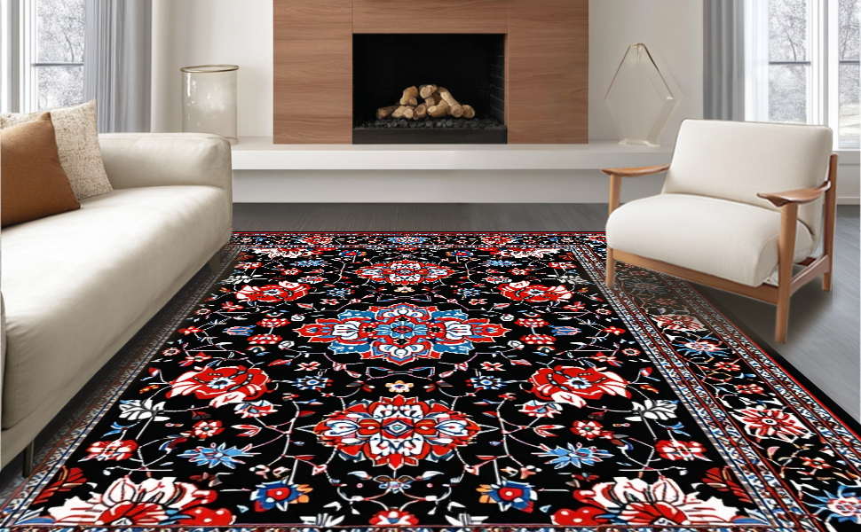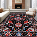 Ultra Soft Area Rug, Non Slip, Stain Resistant, Washable Area Rugs for Living Room, Bedroom, Minimalist Bold Floral Accent(Black) Overview: