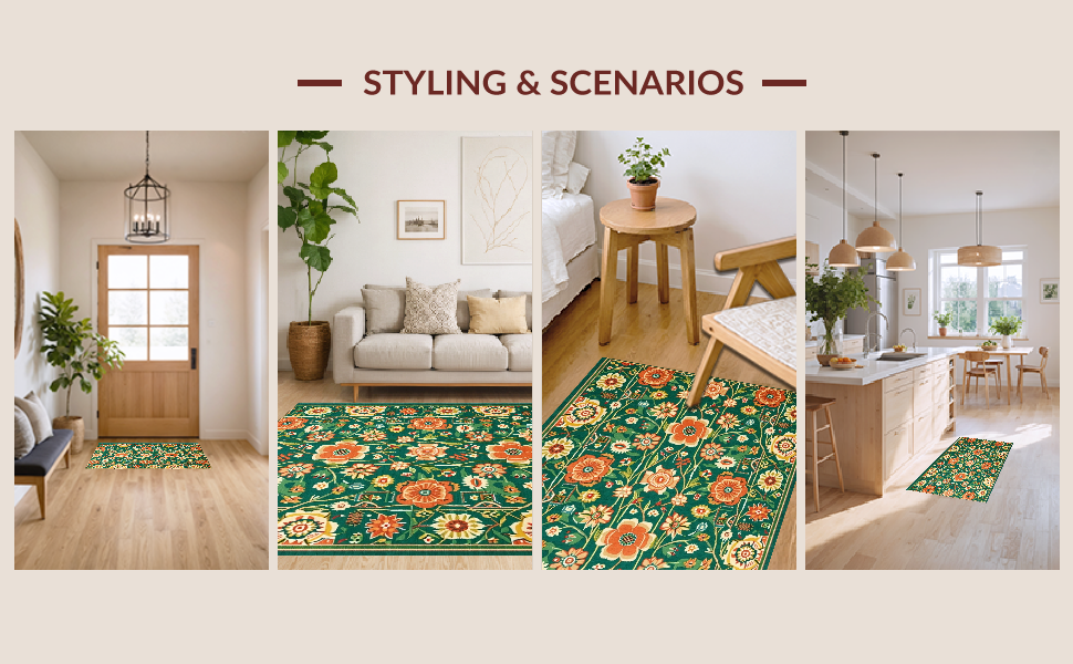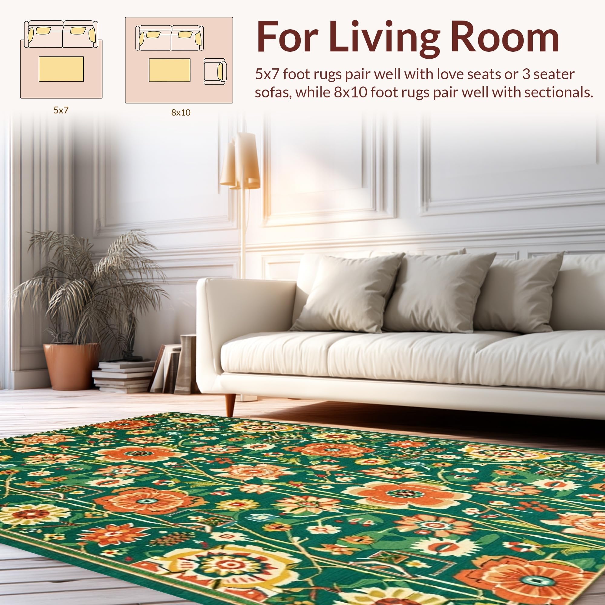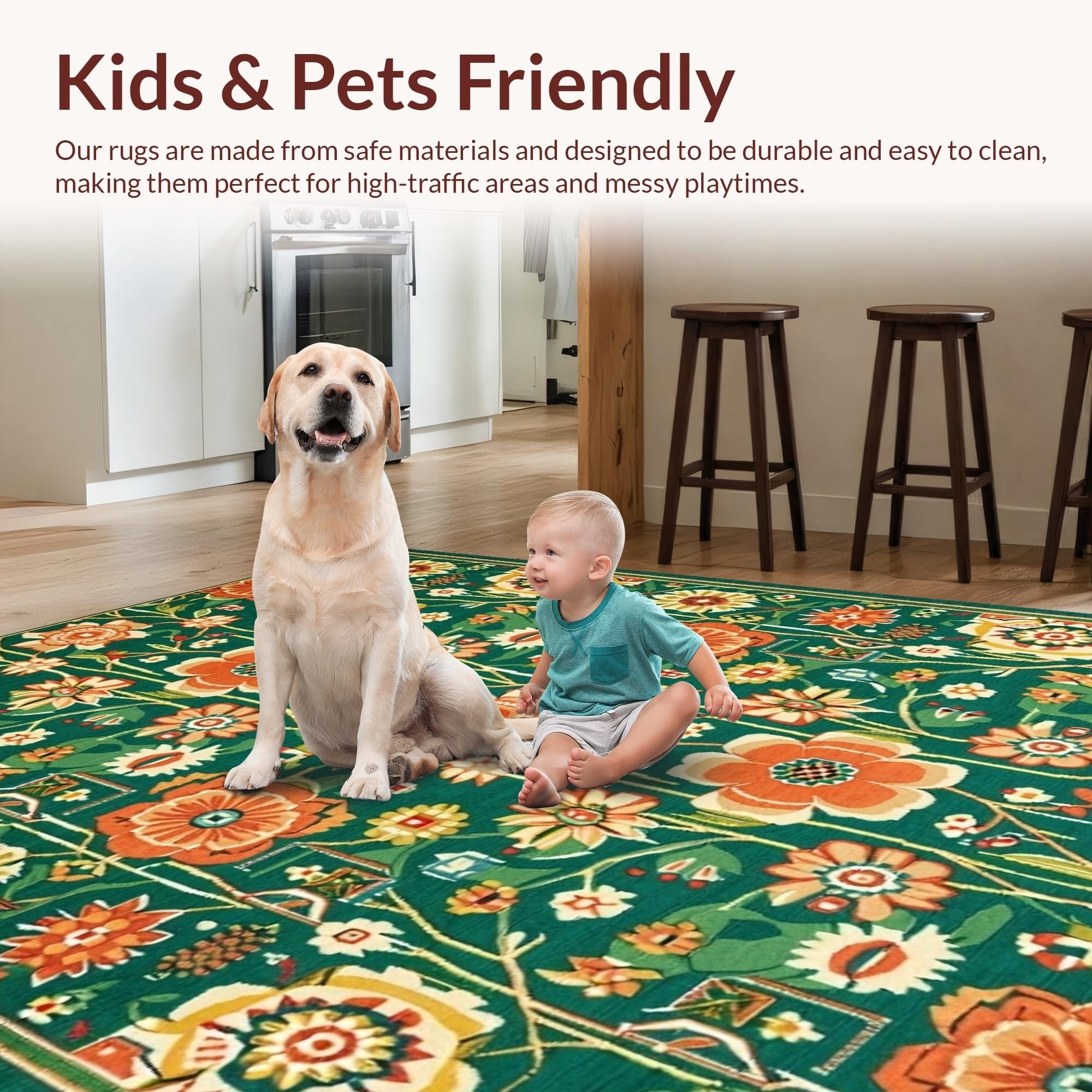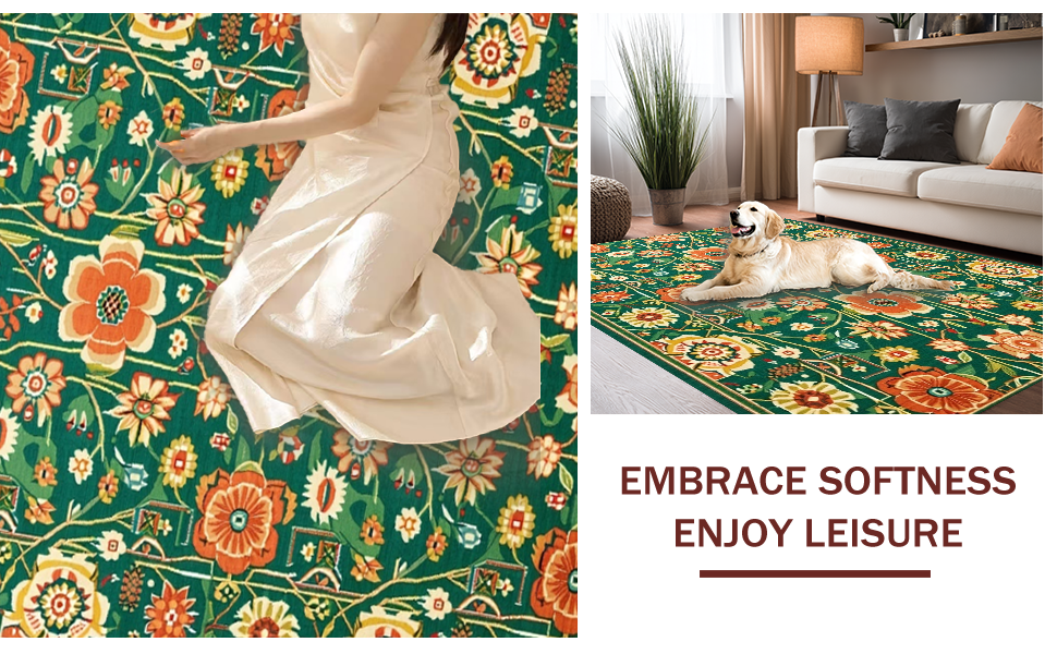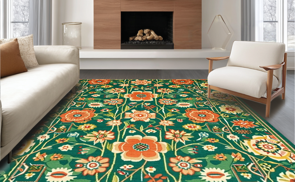 Ultra Soft Area Rug, Non Slip, Stain Resistant, Washable Area Rugs for Living Room, Bedroom, Minimalist Bright Patterned Arrangement(Green) Overview: