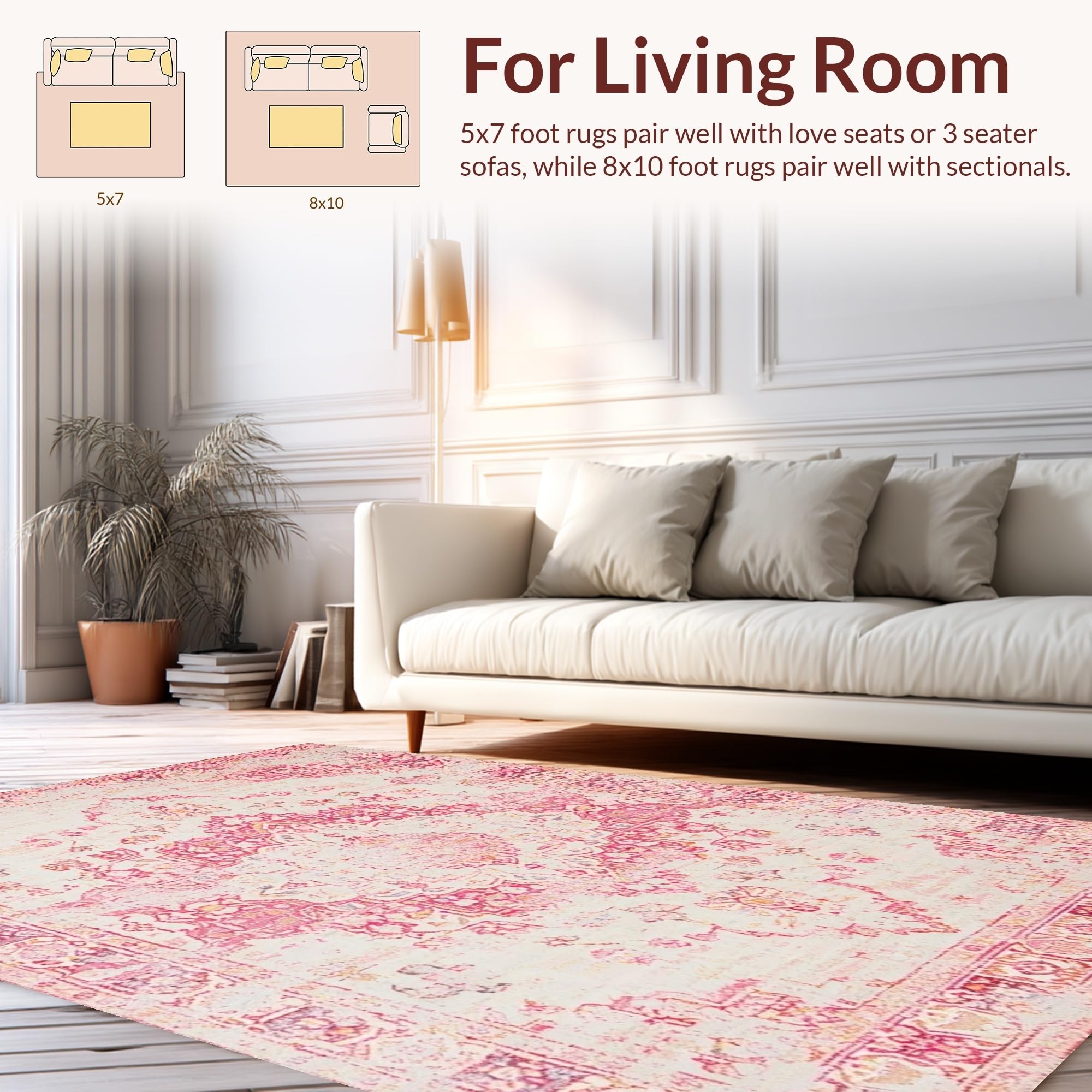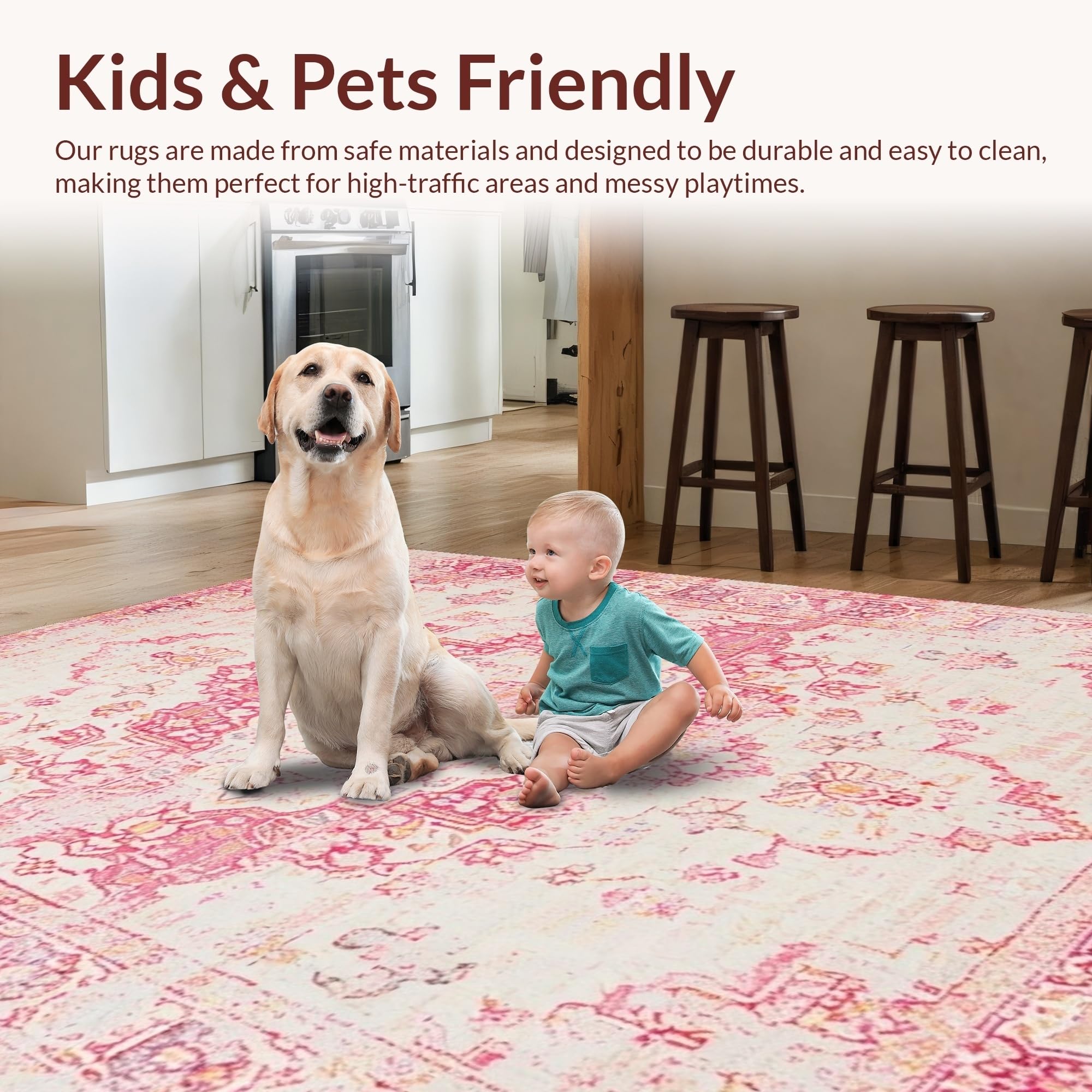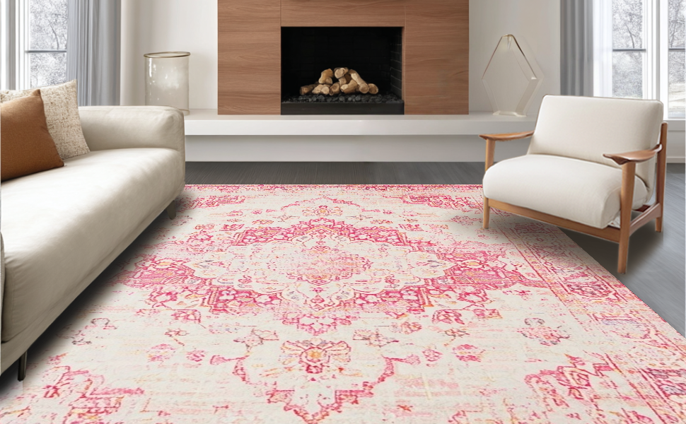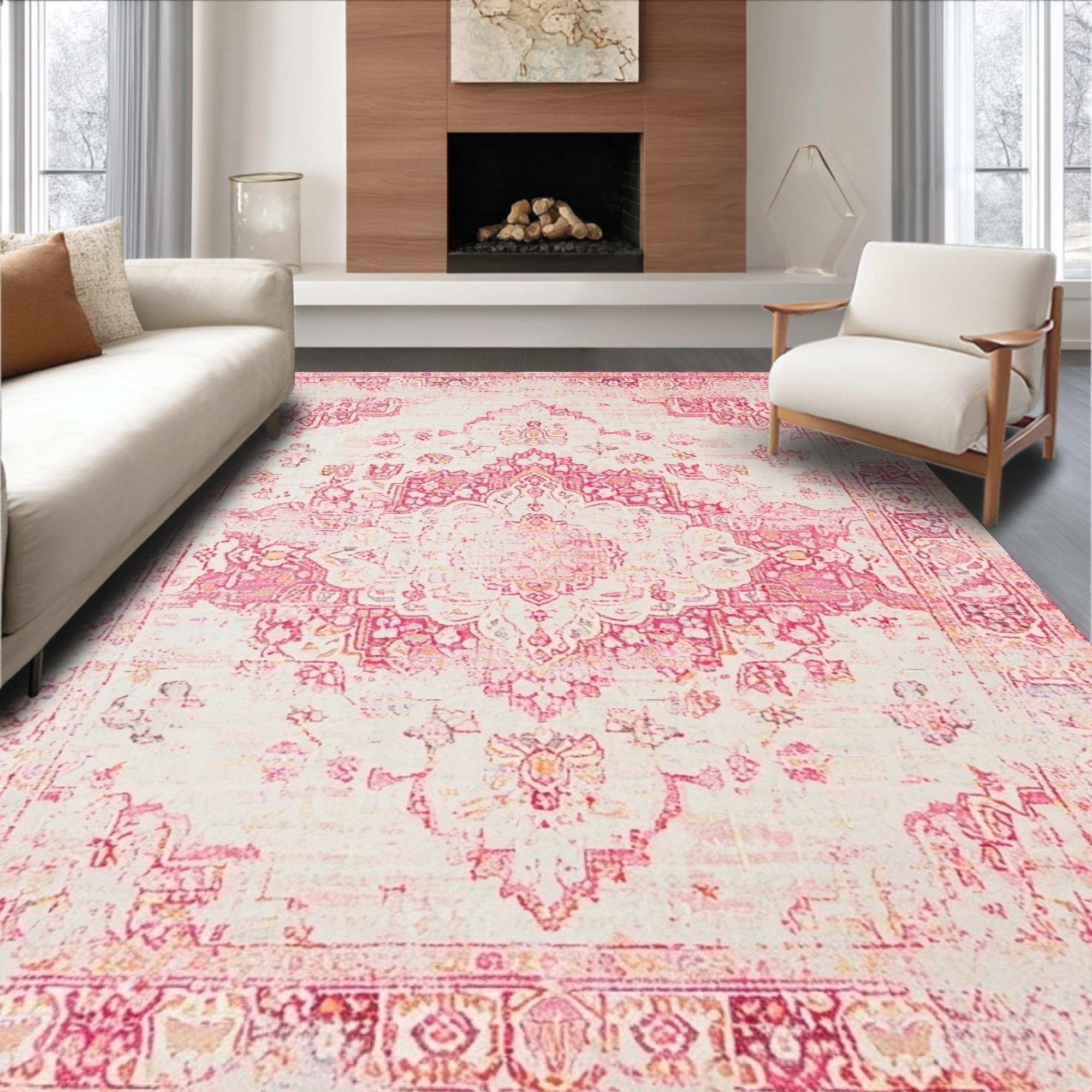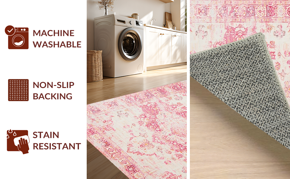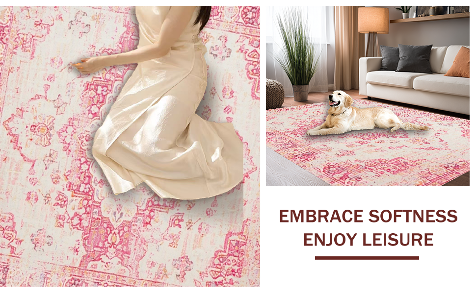 Ultra Soft Area Rug, Non Slip, Stain Resistant, Washable Area Rugs for Living Room, Bedroom, Minimalist Cozy Floral Arrangement(Pink) Overview: