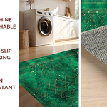 Ultra Soft Area Rug, Non Slip, Stain Resistant, Washable Area Rugs for Living Room, Bedroom, Minimalist Emerald Ogee Composition(Green) Overview: