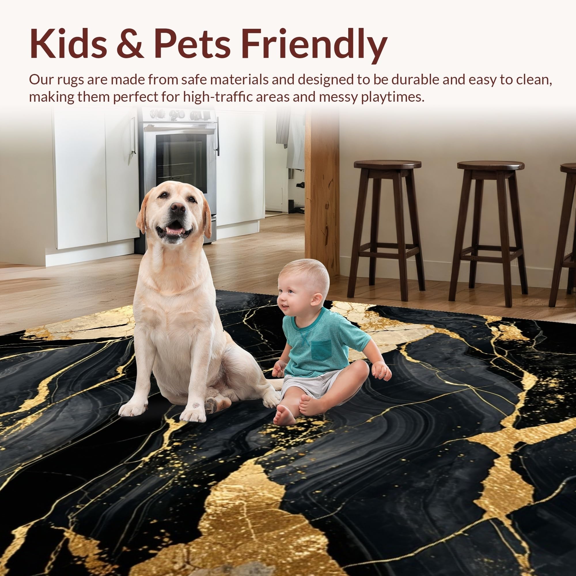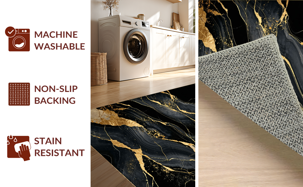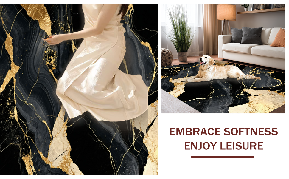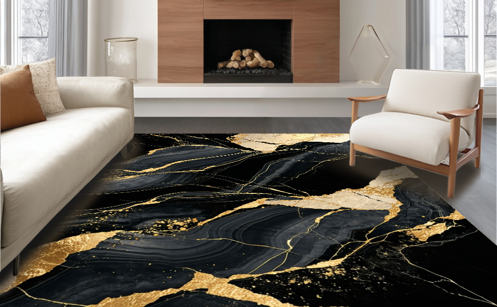 Ultra Soft Area Rug, Non Slip, Stain Resistant, Washable Area Rugs for Living Room, Bedroom, Minimalist Glamorous Pattern Scheme(Black) Overview: