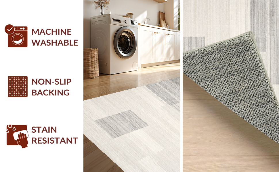 Ultra Soft Area Rug, Non Slip, Stain Resistant, Washable Area Rugs for Living Room, Bedroom, Minimalist Gray Accent Piece(Beige) Overview: