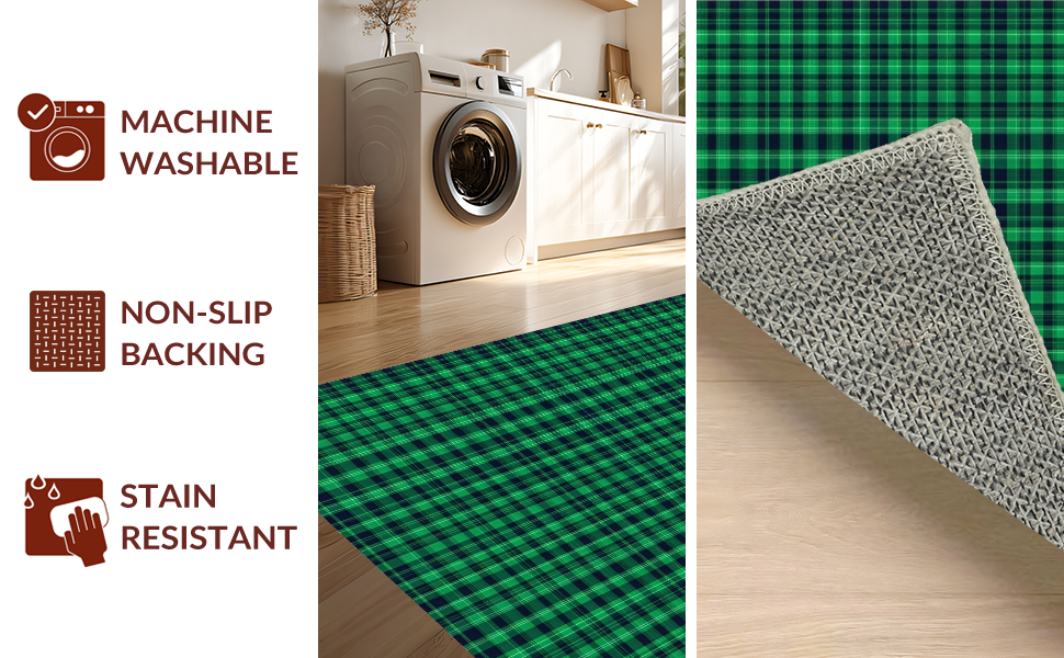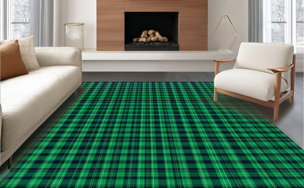 Ultra Soft Area Rug, Non Slip, Stain Resistant, Washable Area Rugs for Living Room, Bedroom, Minimalist Green and White Geometry(Green) Overview:
