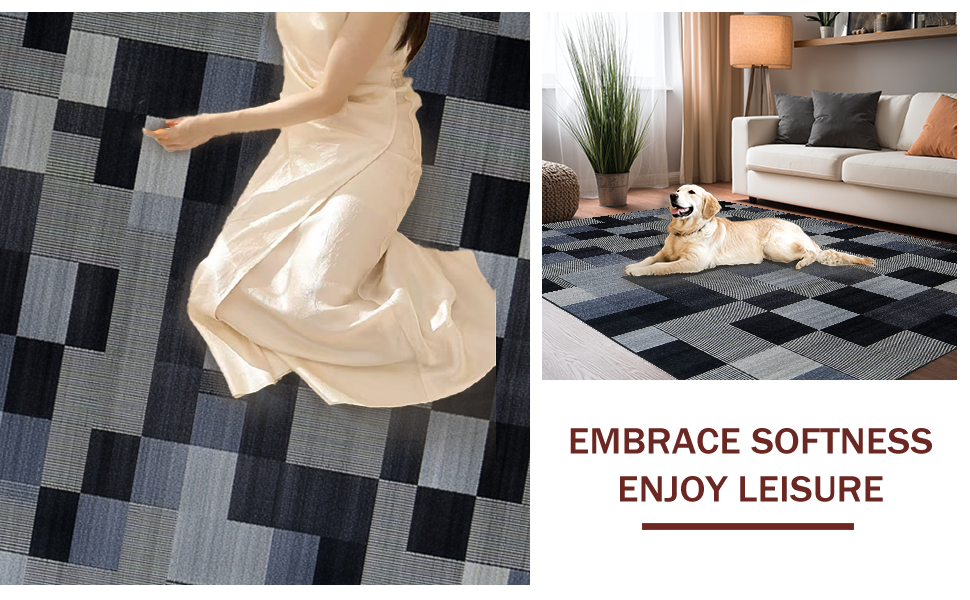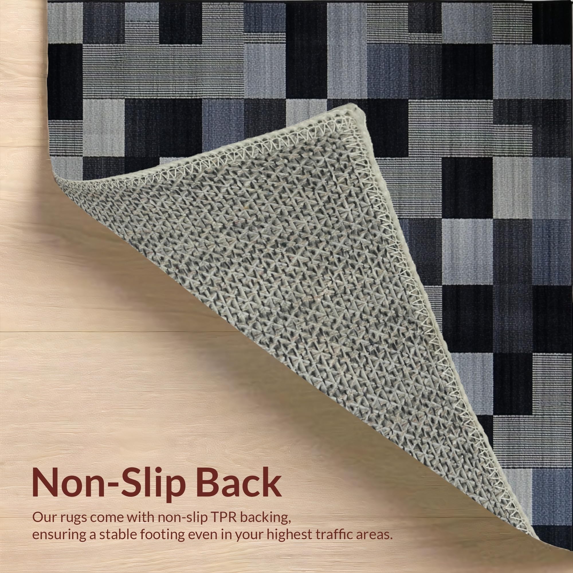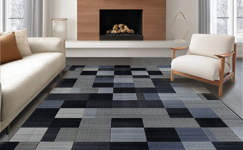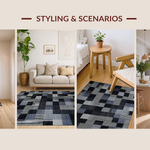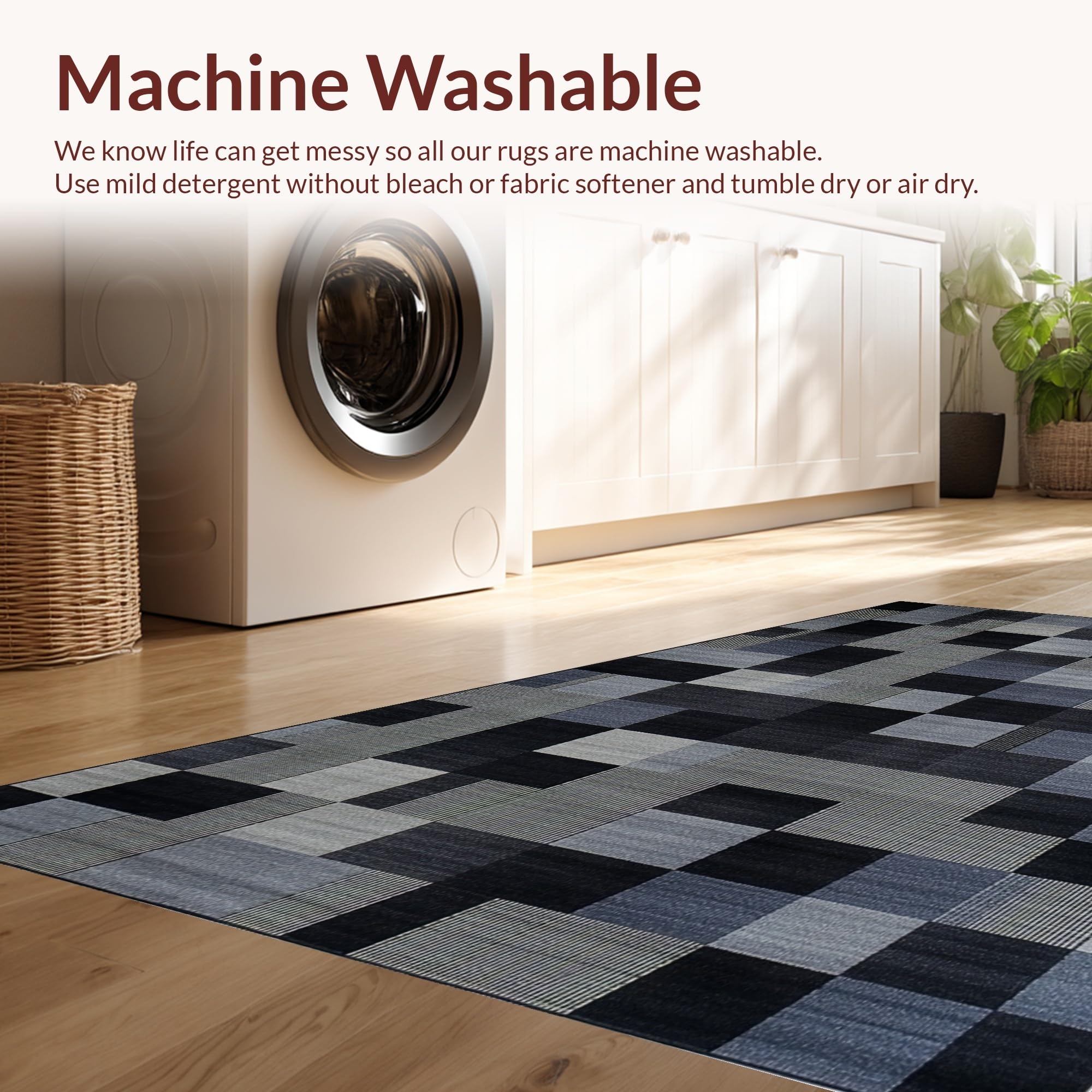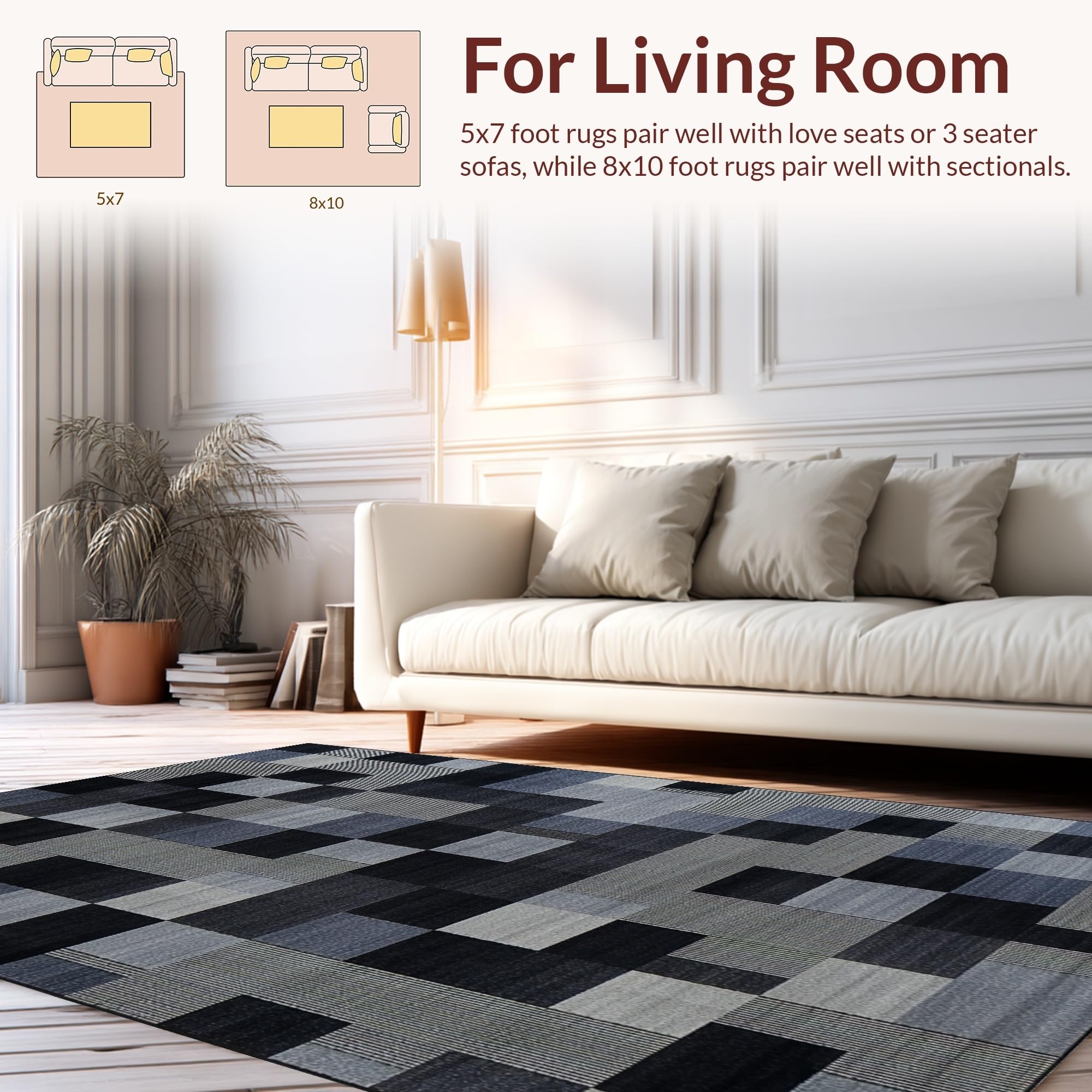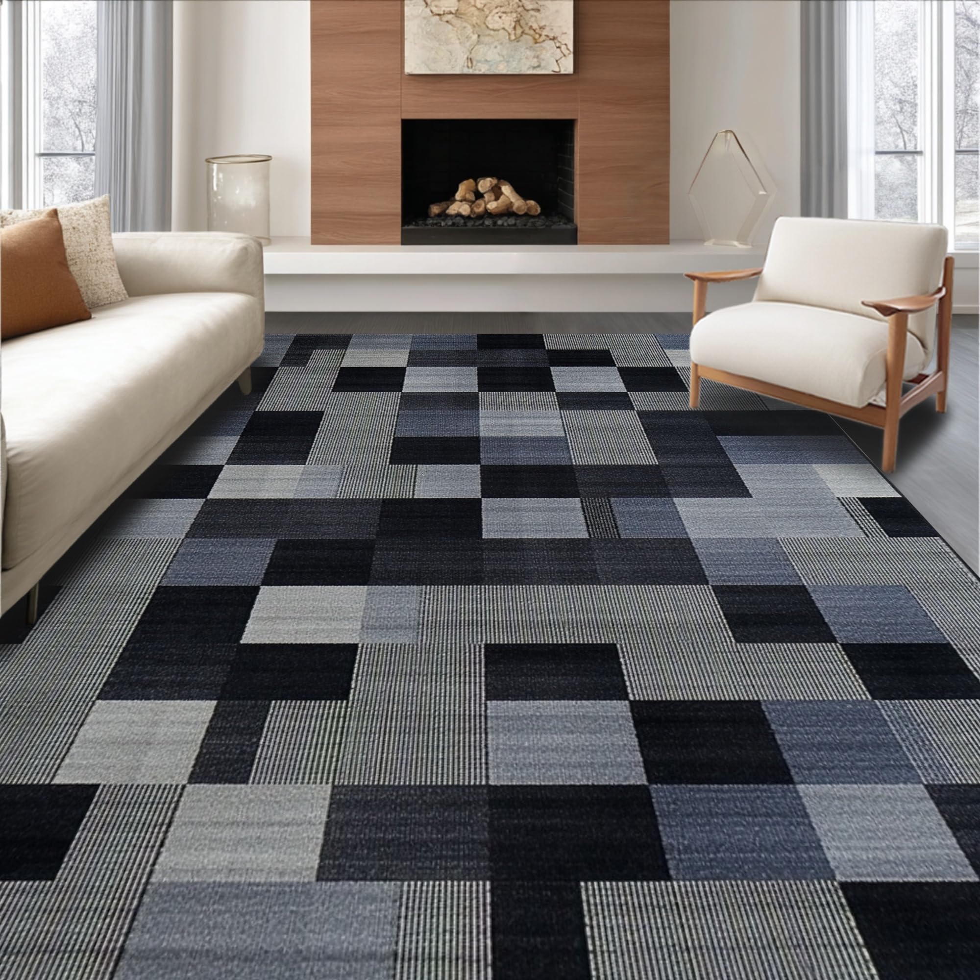 Ultra Soft Area Rug, Non Slip, Stain Resistant, Washable Area Rugs for Living Room, Bedroom, Minimalist Grey Square Concept(Black) Overview: