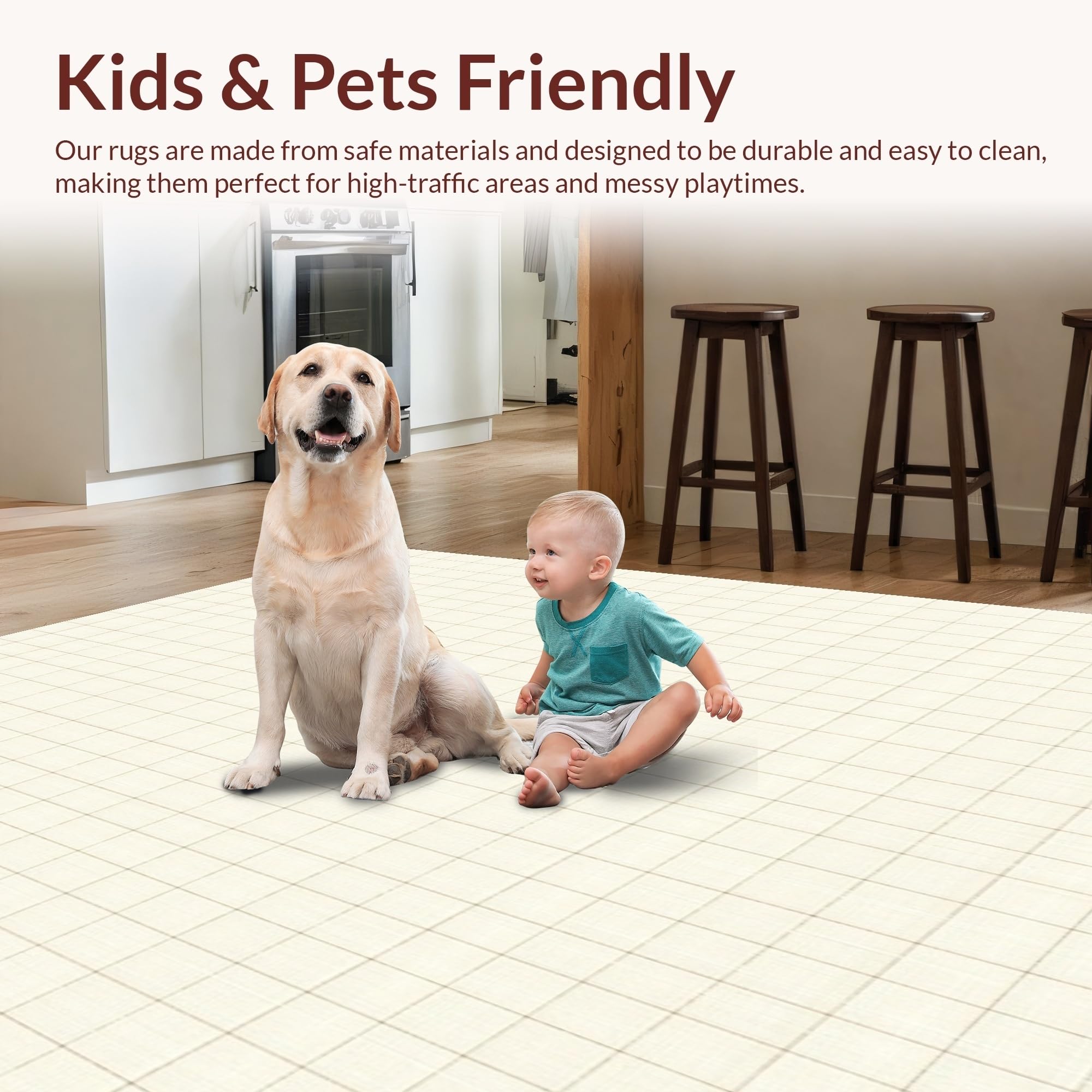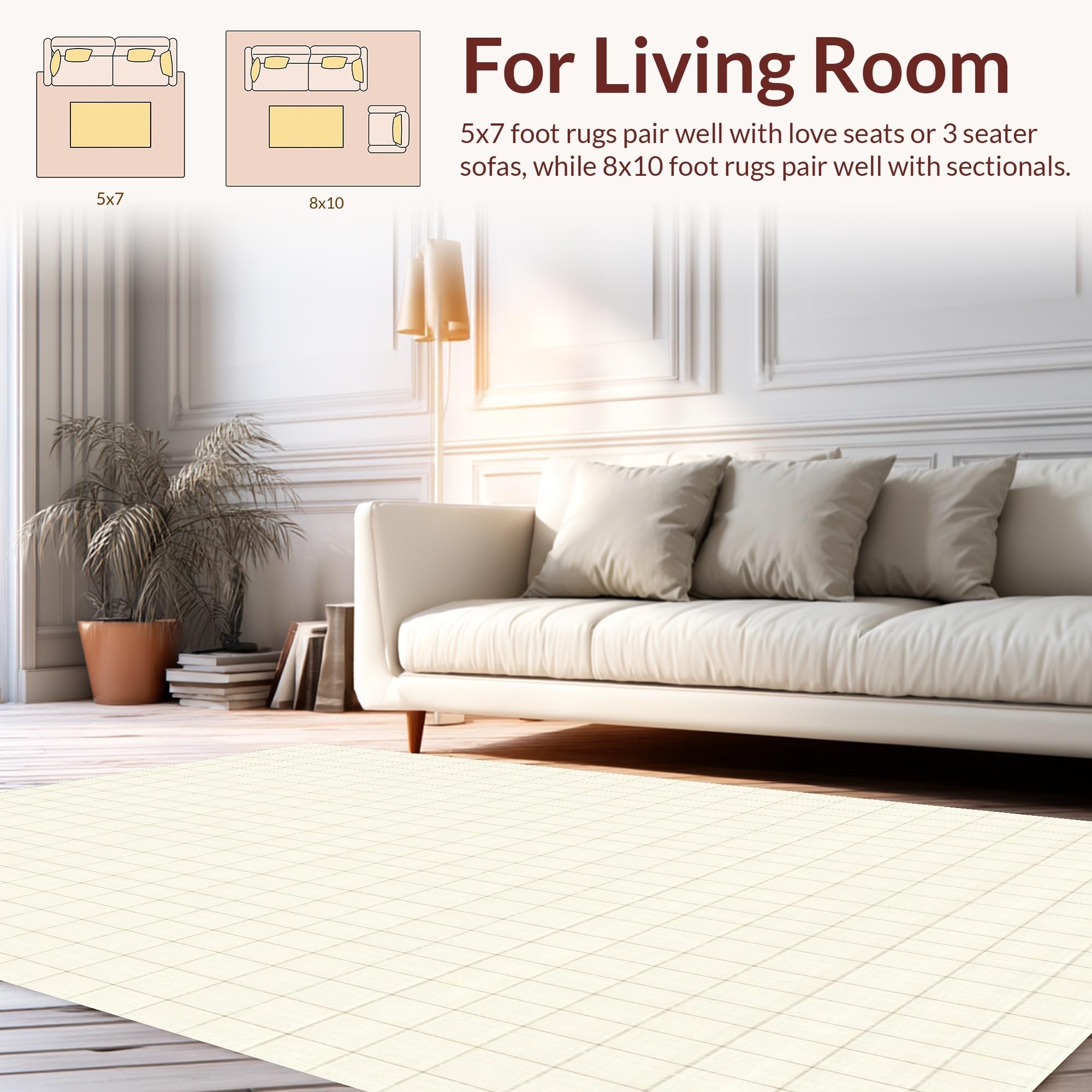 Ultra Soft Area Rug, Non Slip, Stain Resistant, Washable Area Rugs for Living Room, Bedroom, Minimalist Grid in Beige and Ivory with Crisp Checkered Geometry(Beige) Overview: