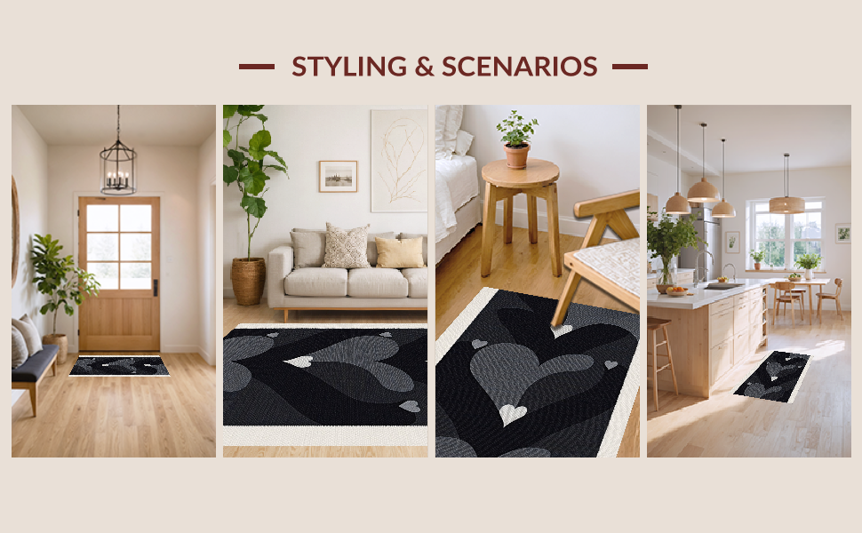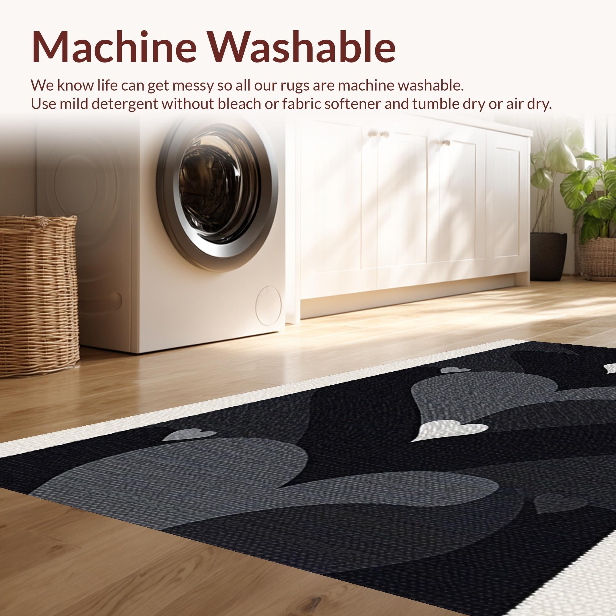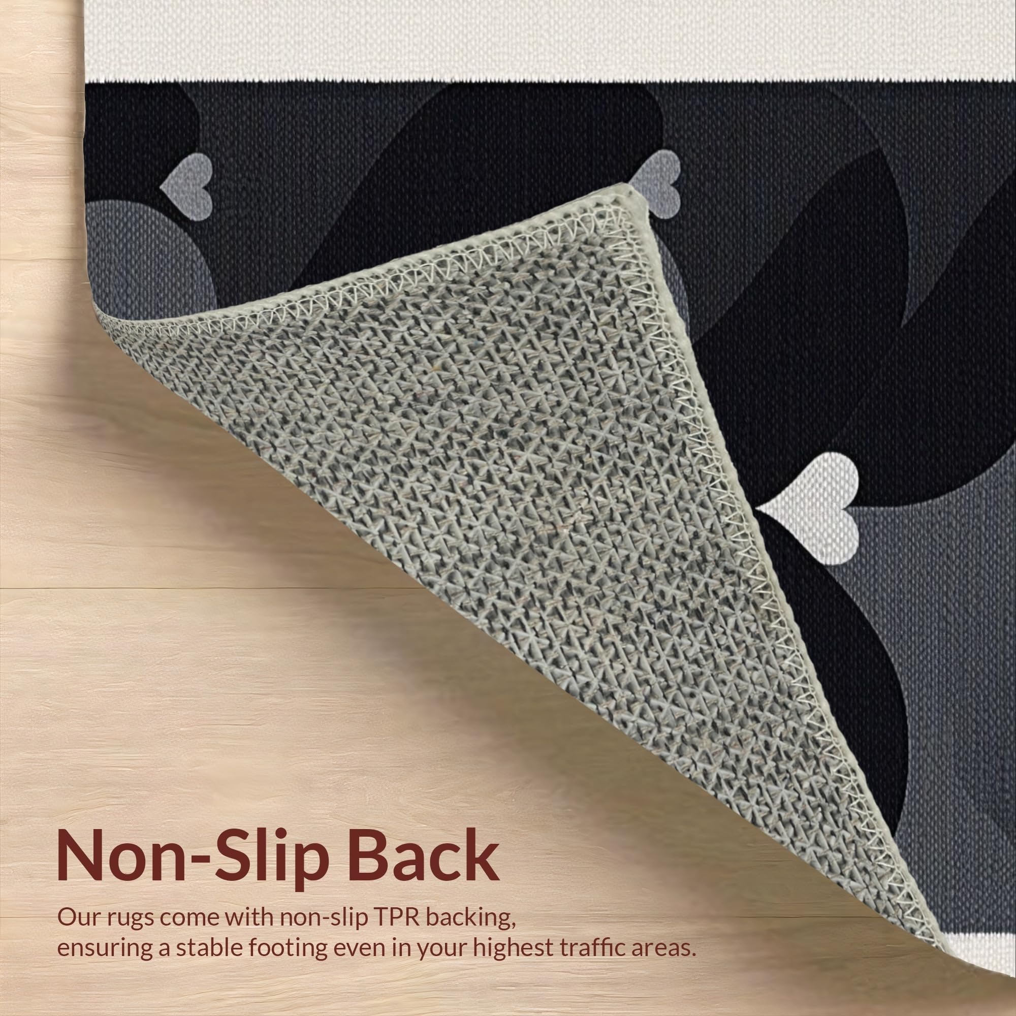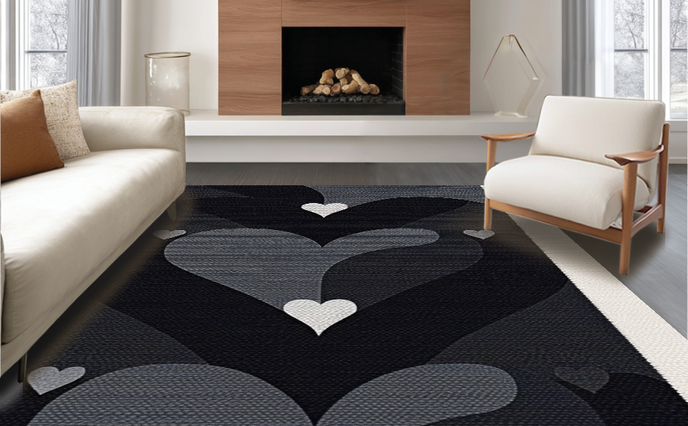 Ultra Soft Area Rug, Non Slip, Stain Resistant, Washable Area Rugs for Living Room, Bedroom, Minimalist Heart Pattern Delight(Black) Overview:
