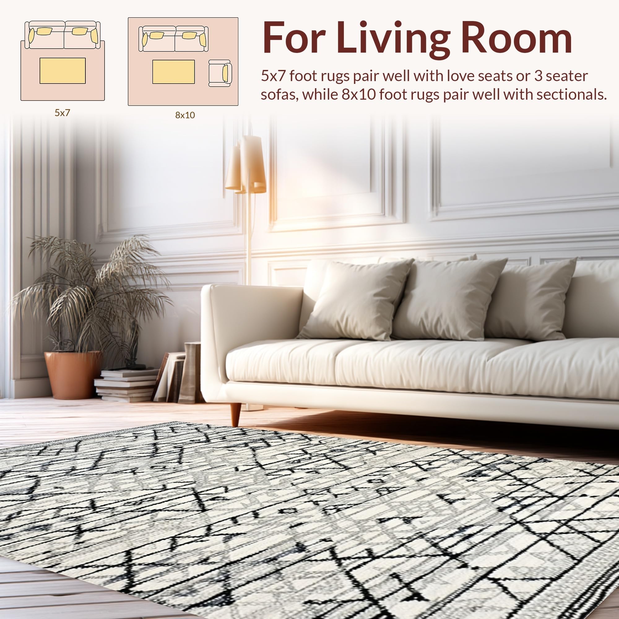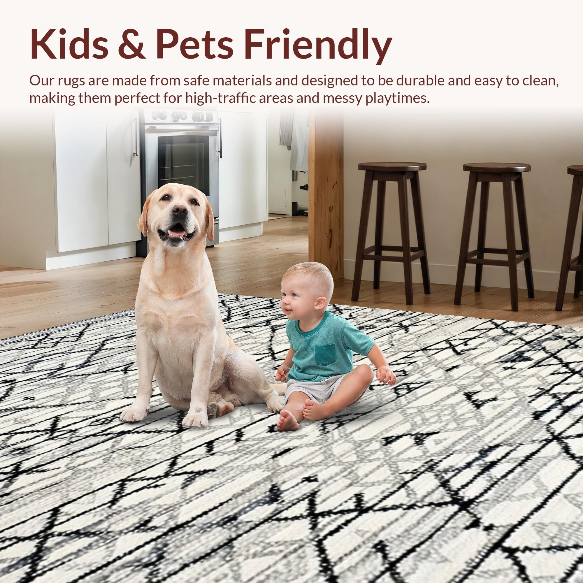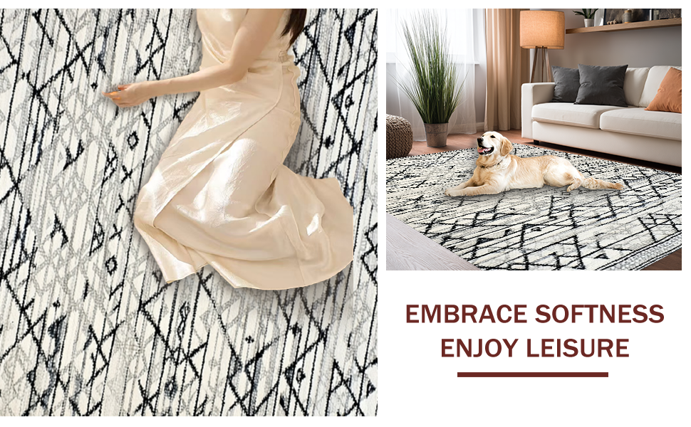 Ultra Soft Area Rug, Non Slip, Stain Resistant, Washable Area Rugs for Living Room, Bedroom, Minimalist High-Pile Geometric Elegance(Gray) Overview: