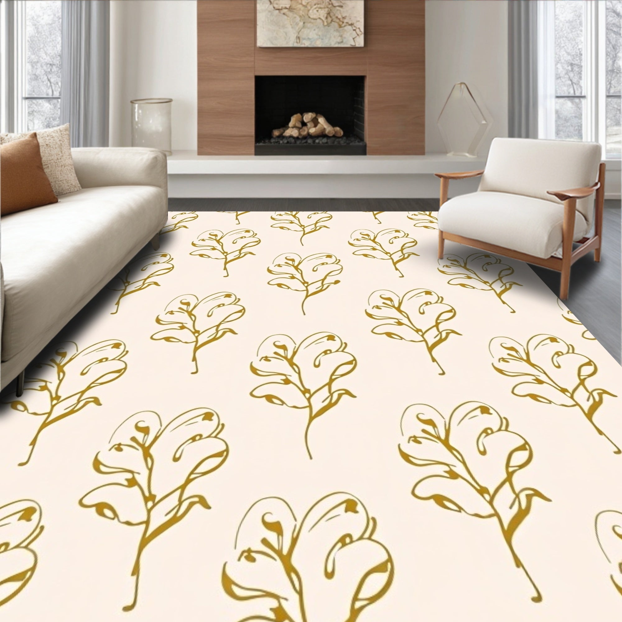 Ultra Soft Area Rug, Non Slip, Stain Resistant, Washable Area Rugs for Living Room, Bedroom, Minimalist Latticework Scrollwork Abstract Accent(Gold) Overview: