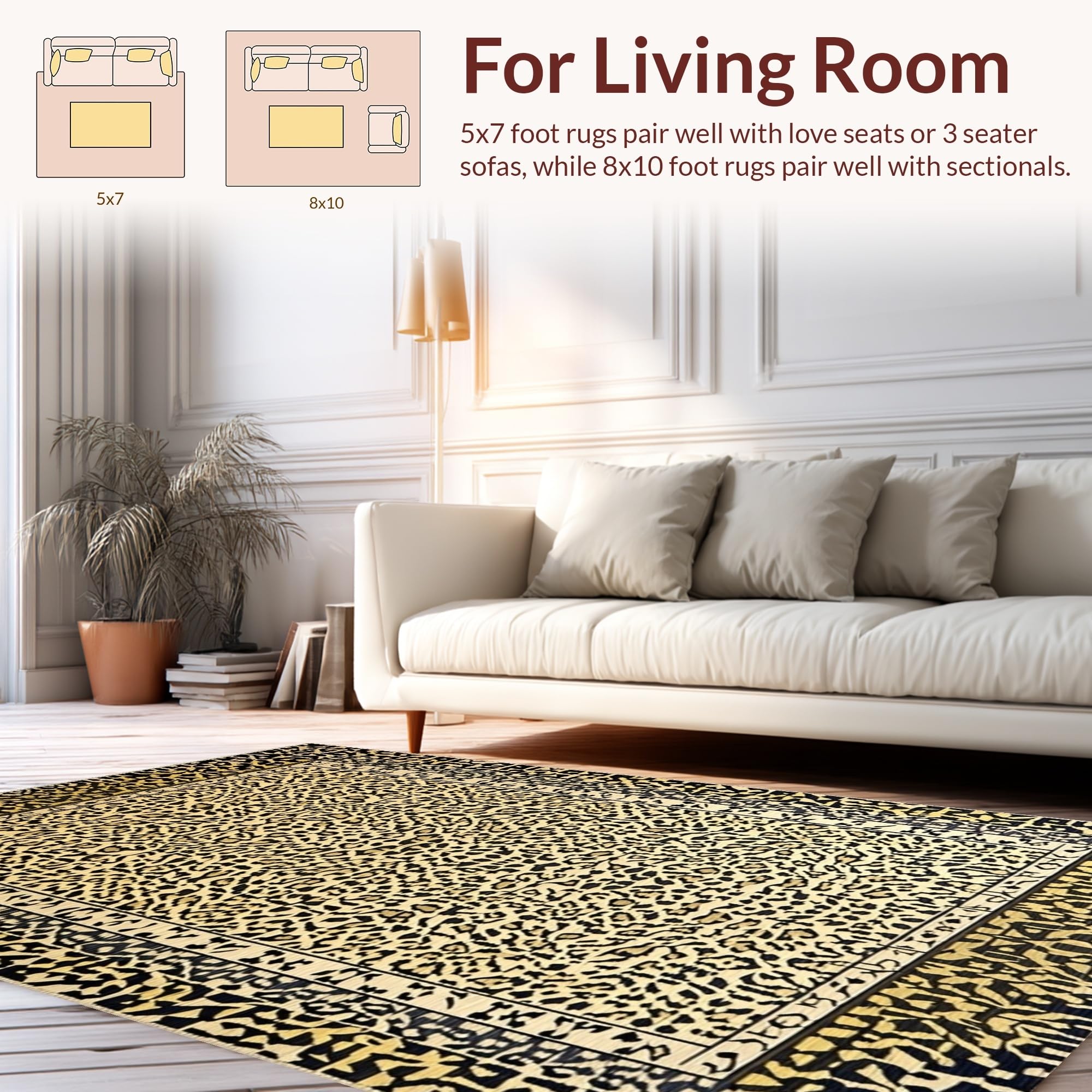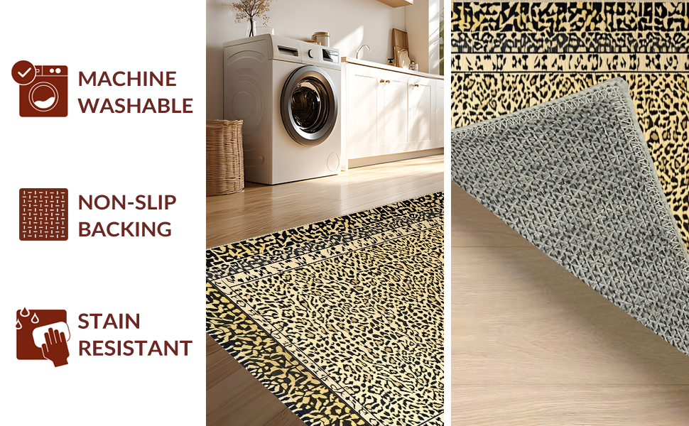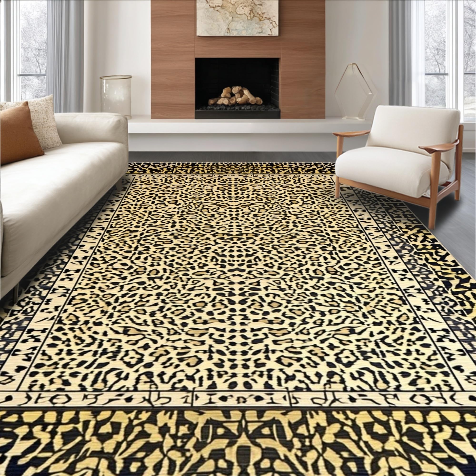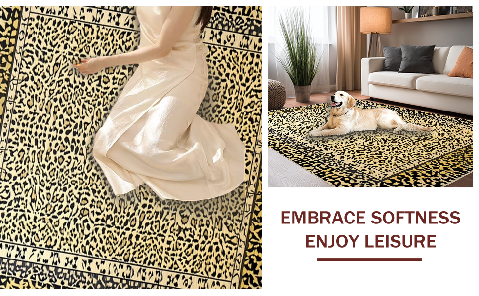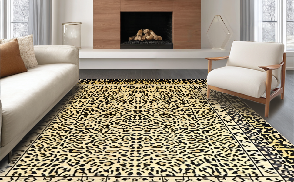 Ultra Soft Area Rug, Non Slip, Stain Resistant, Washable Area Rugs for Living Room, Bedroom, Minimalist Leopard Print Elegance(Beige) Overview: