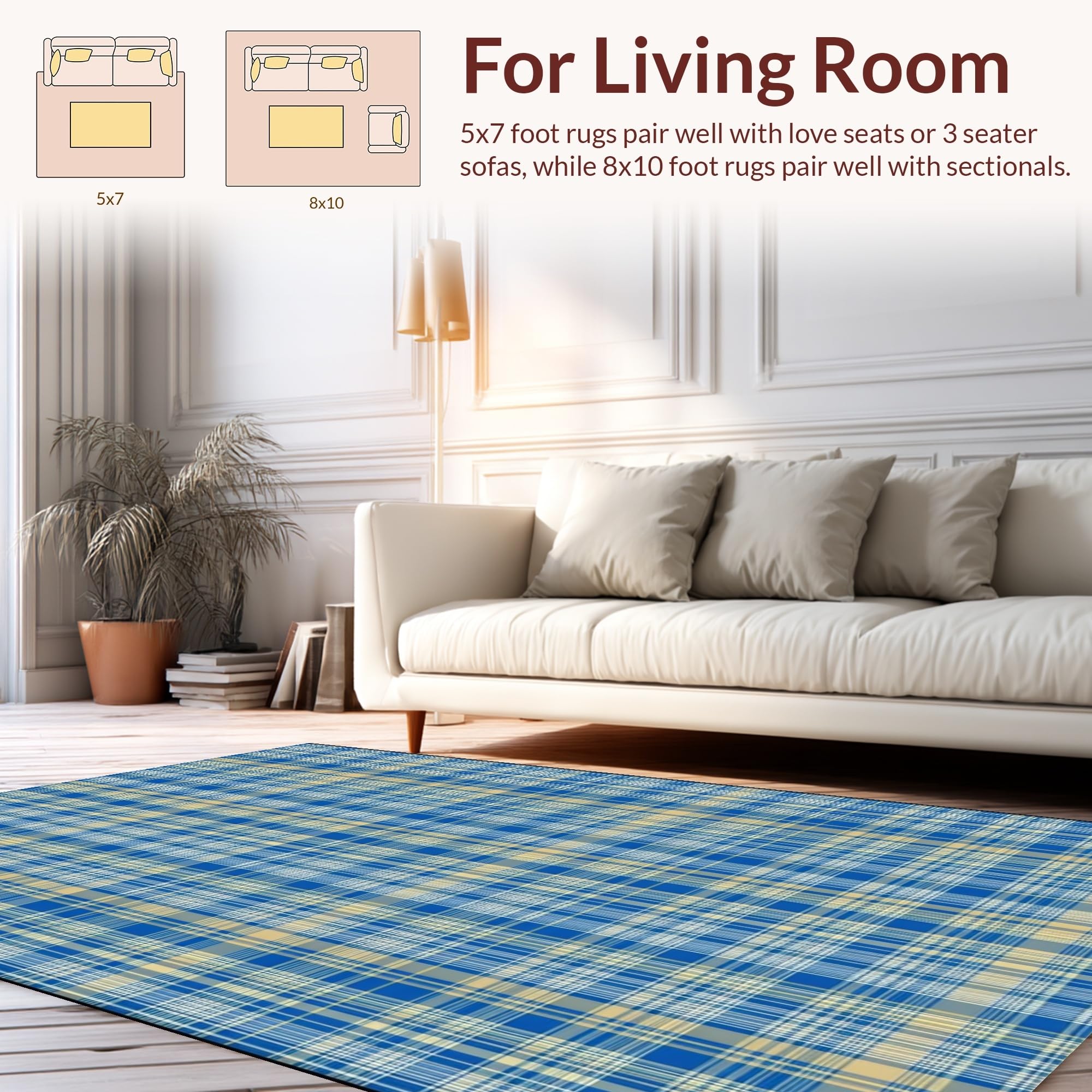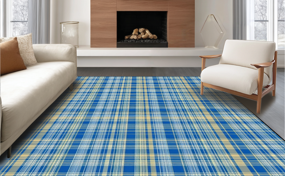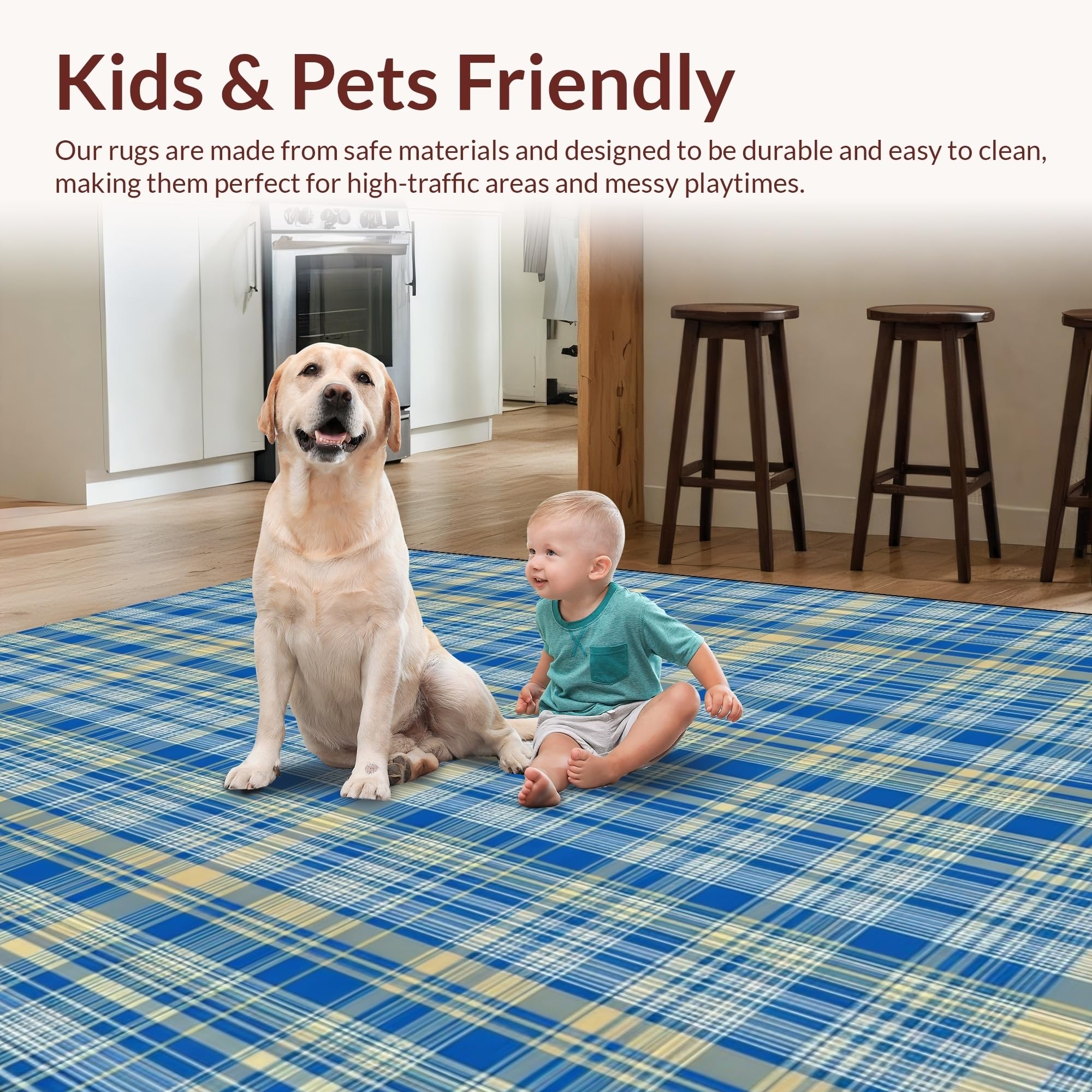 Ultra Soft Area Rug, Non Slip, Stain Resistant, Washable Area Rugs for Living Room, Bedroom, Minimalist Light Blue Tiled Design(Blue) Overview: