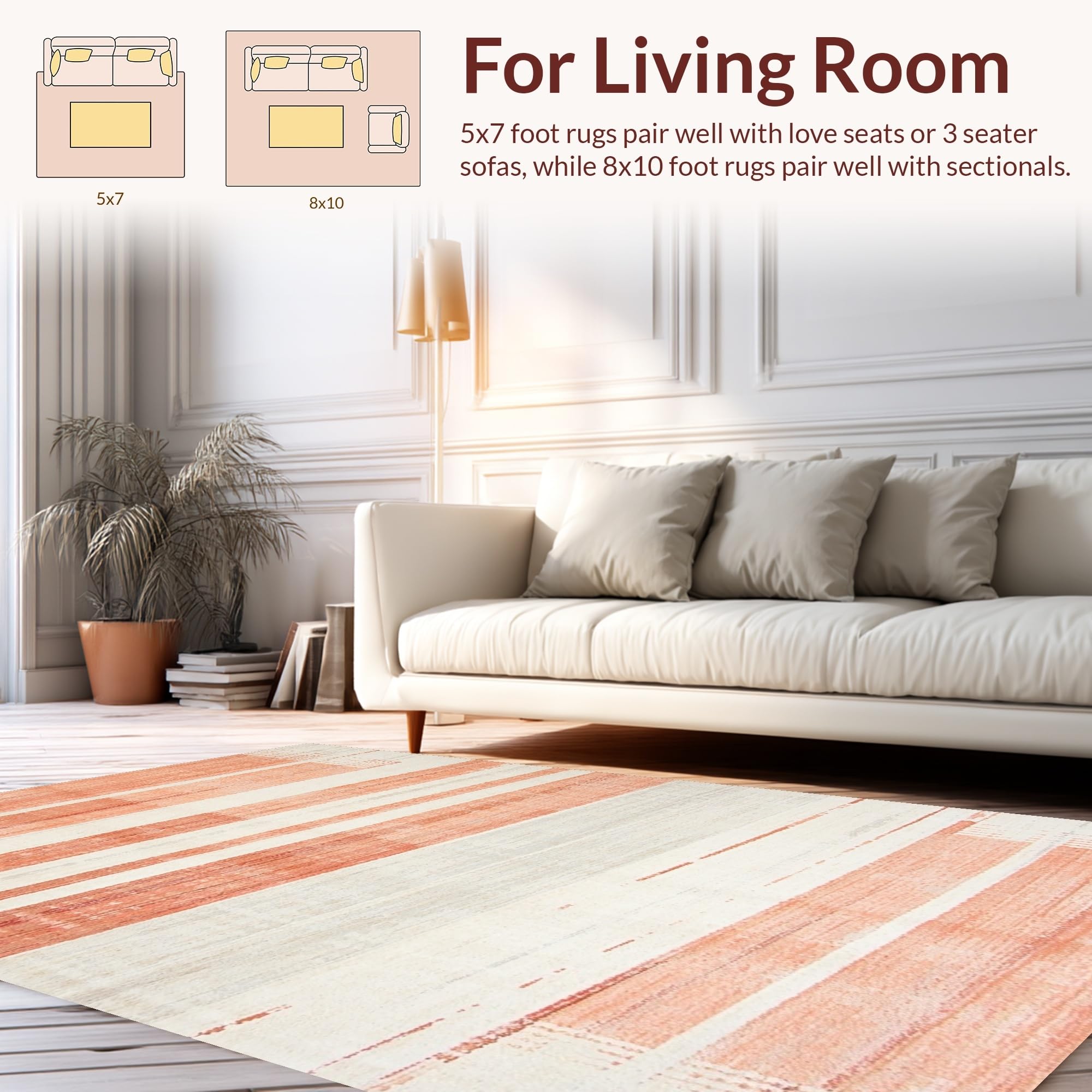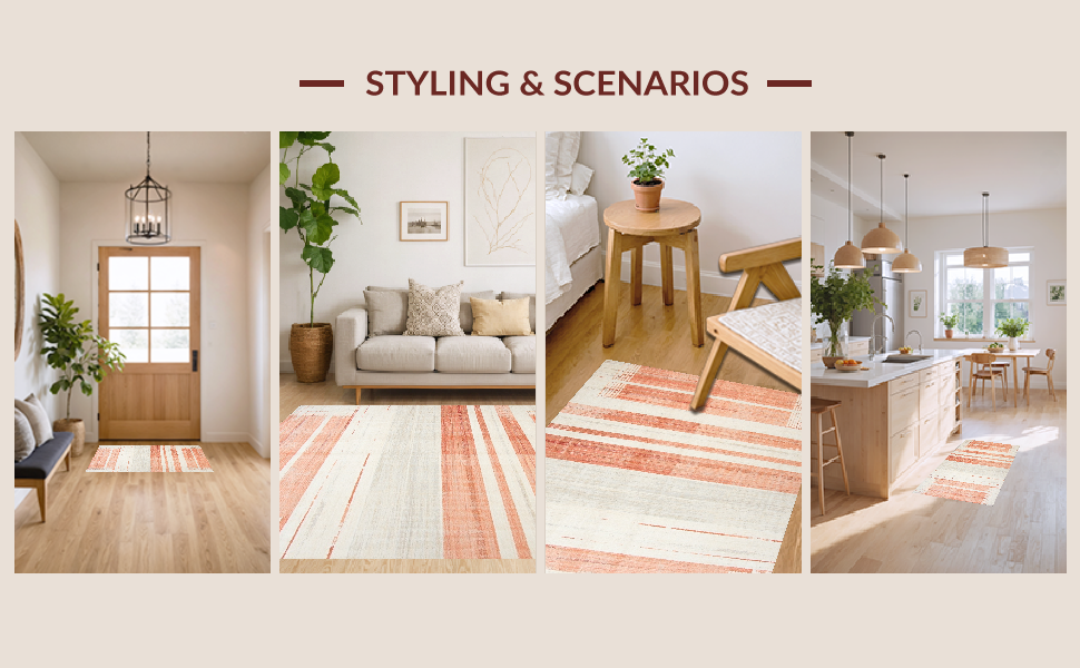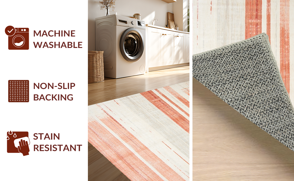 Ultra Soft Area Rug, Non Slip, Stain Resistant, Washable Area Rugs for Living Room, Bedroom, Minimalist Linear Patterned Beauty(Red) Overview: