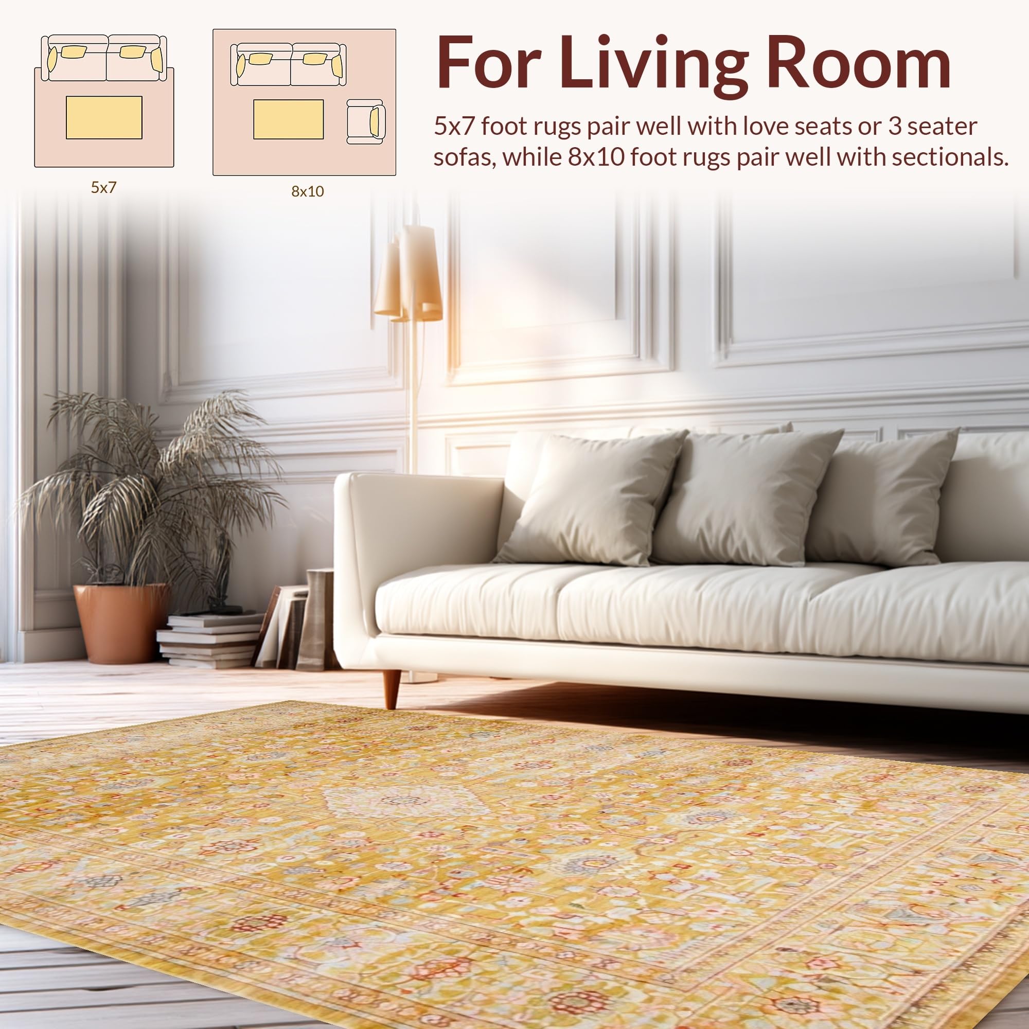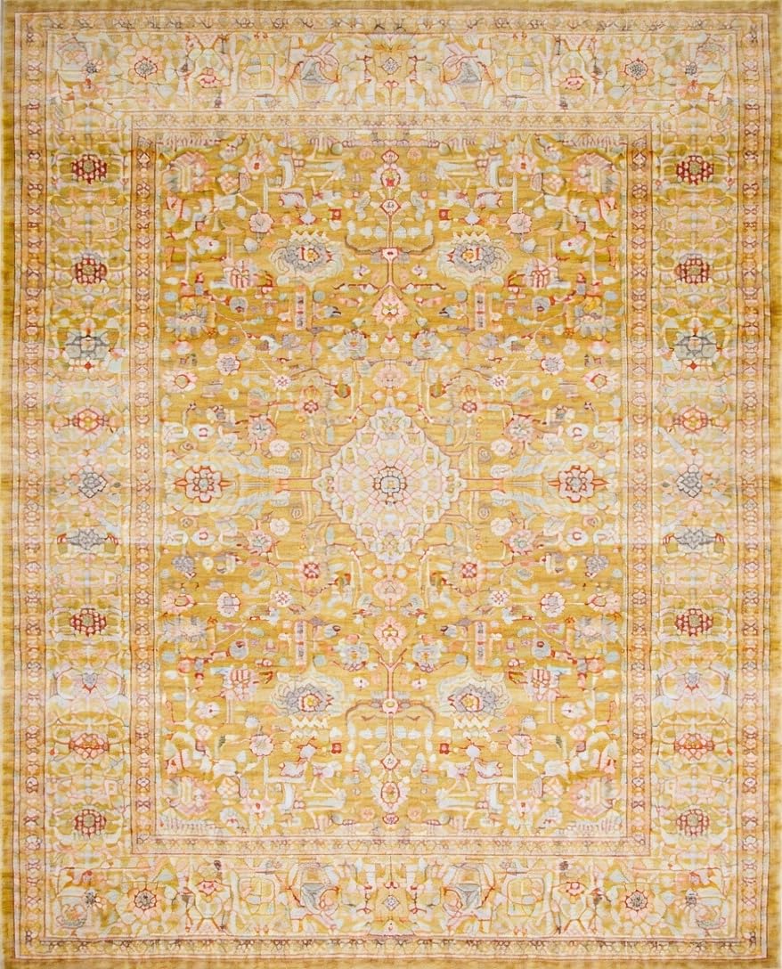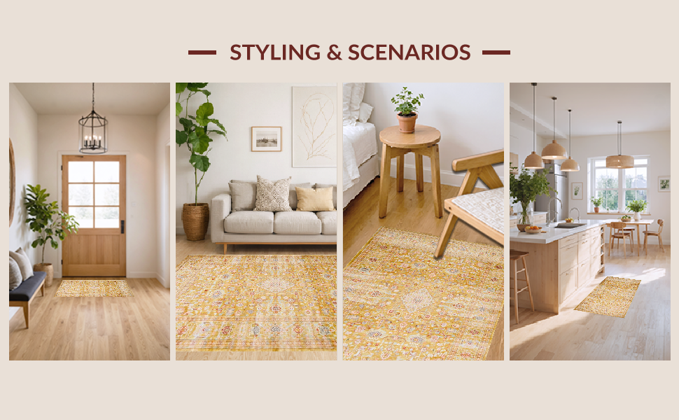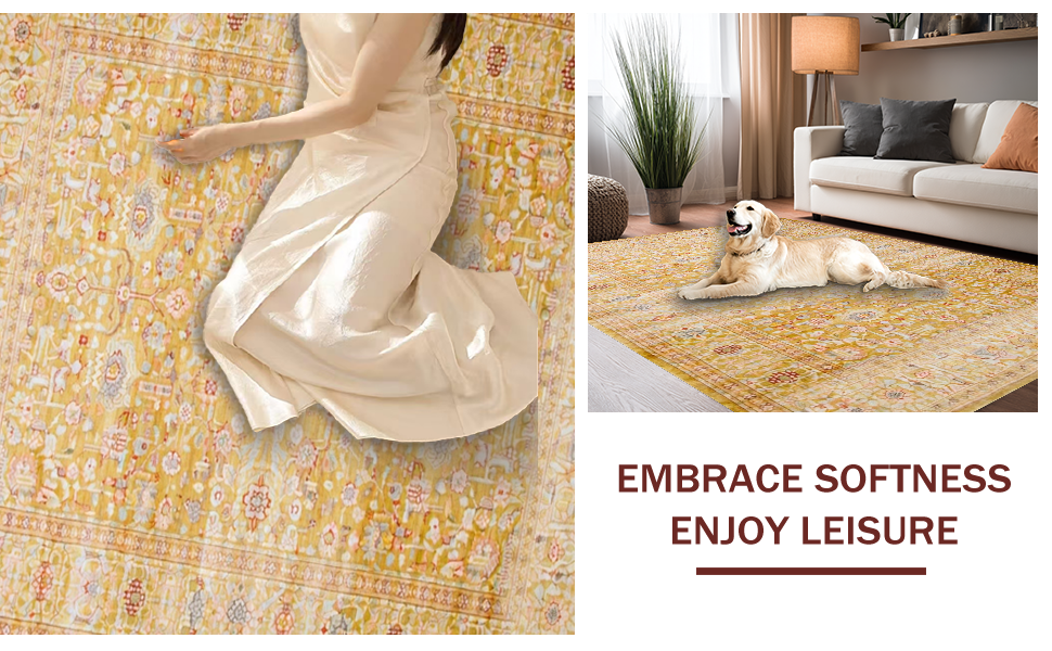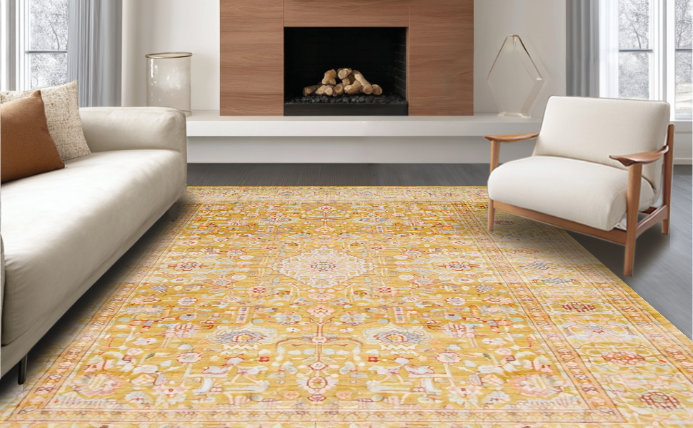 Ultra Soft Area Rug, Non Slip, Stain Resistant, Washable Area Rugs for Living Room, Bedroom, Minimalist Monochrome Ogee Pattern(Yellow) Overview: