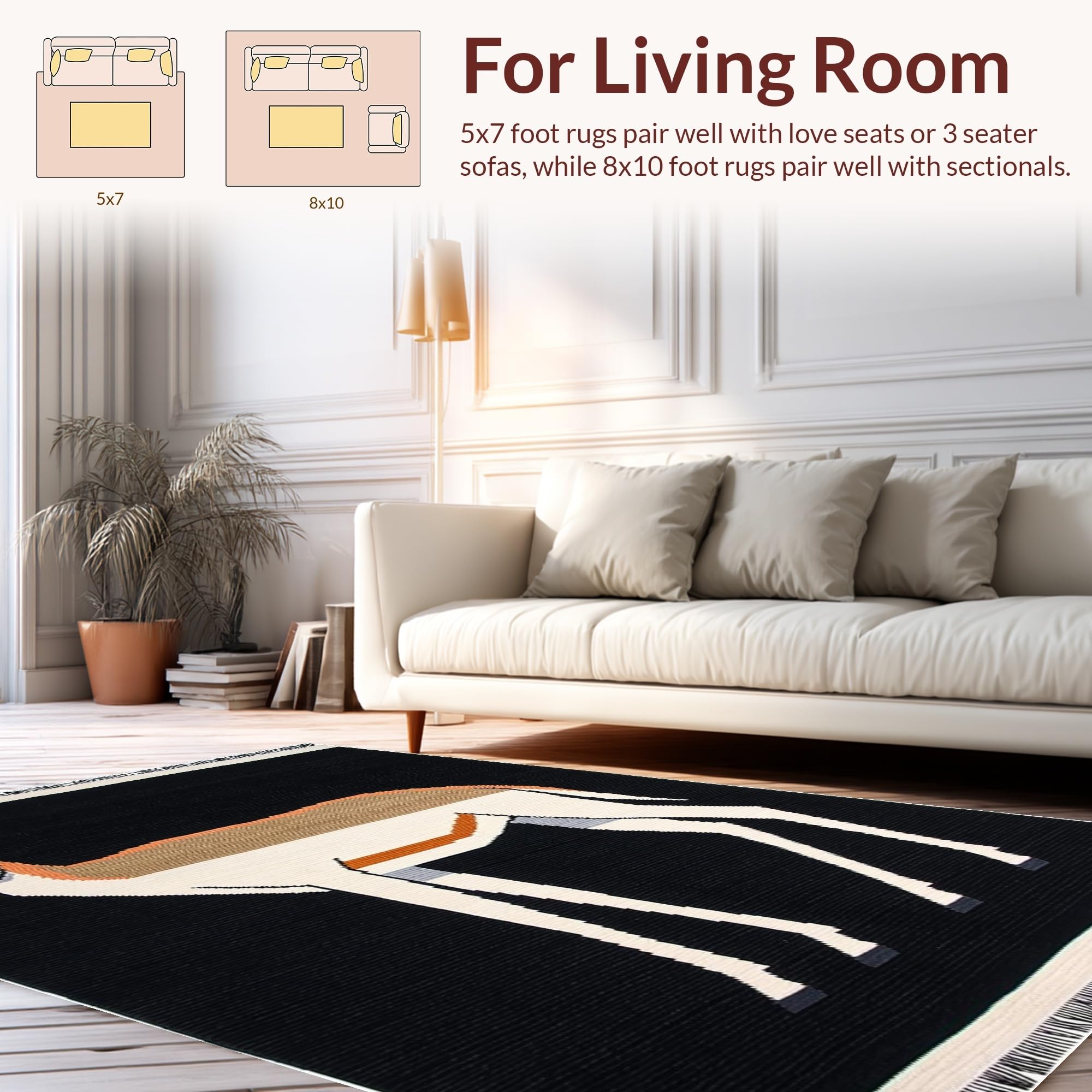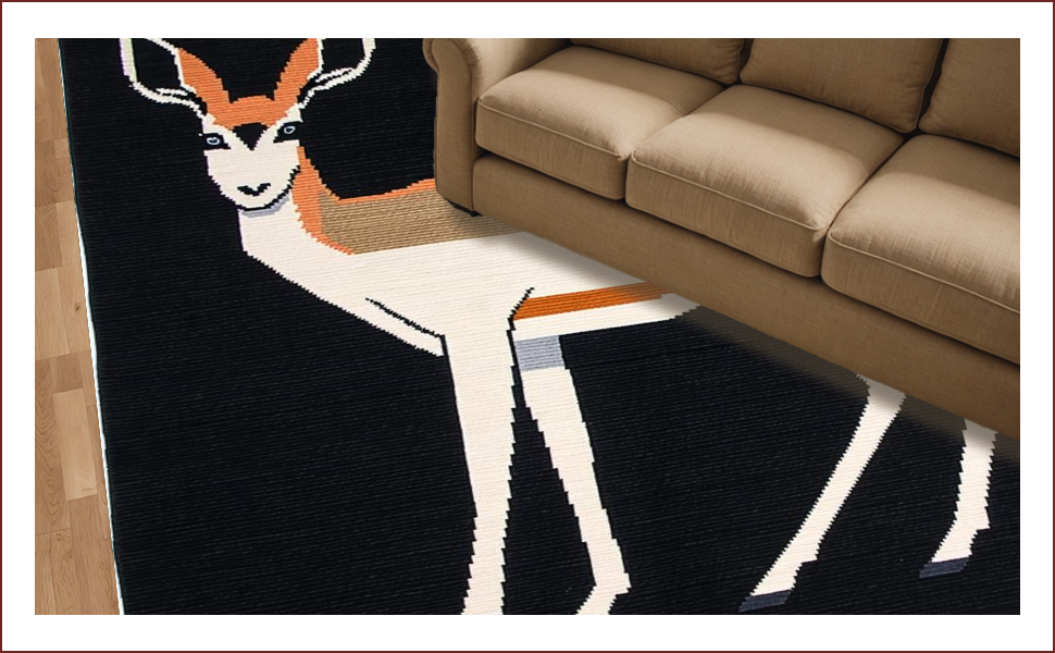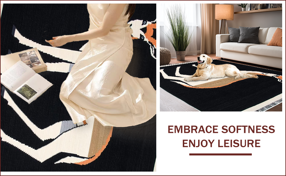 Ultra Soft Area Rug, Non Slip, Stain Resistant, Washable Area Rugs for Living Room, Bedroom, Minimalist Monochrome Wildlife Pattern(Black) Overview: