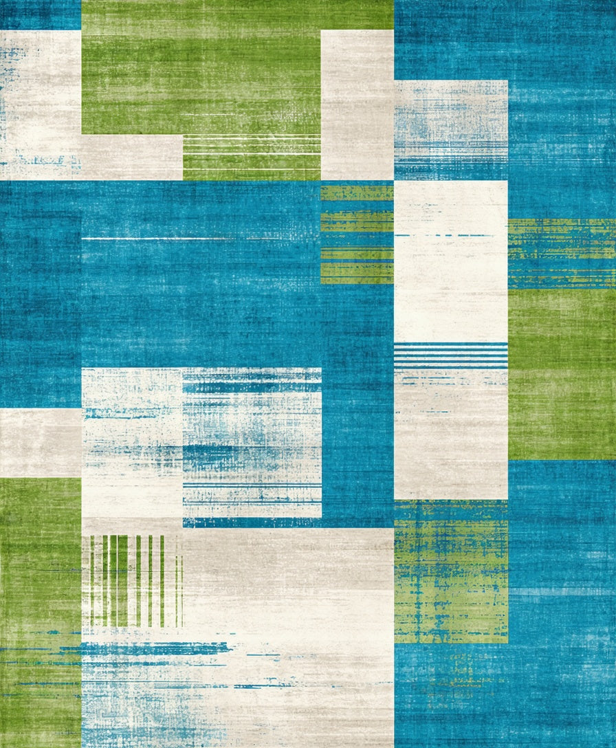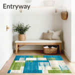 Minimalist Non Shedding with Distressed Blue Green and Beige Check(Blue)