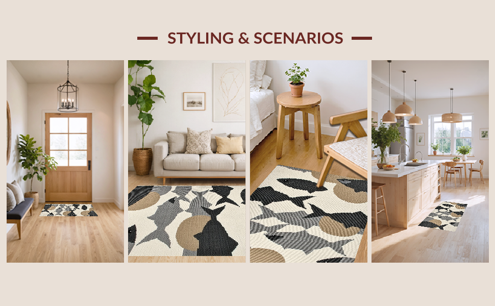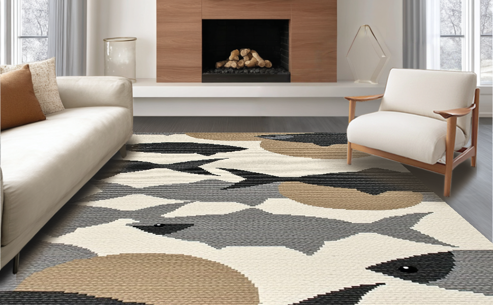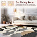 Ultra Soft Area Rug, Non Slip, Stain Resistant, Washable Area Rugs for Living Room, Bedroom, Minimalist Organic Shapes in Neutral(Beige) Overview: