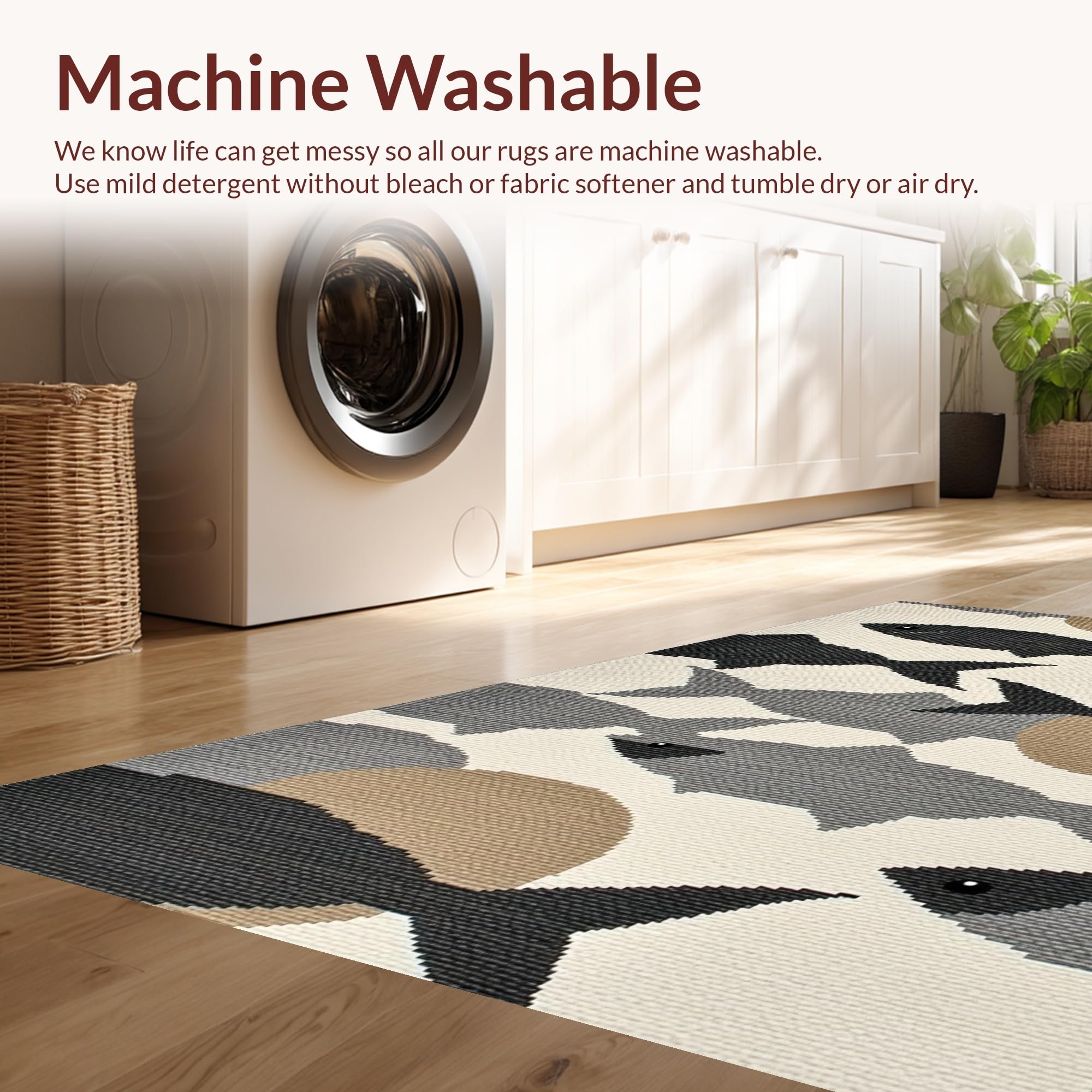 - Machine Washable: Our rugs can be easily thrown in the wash machine.