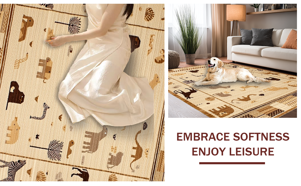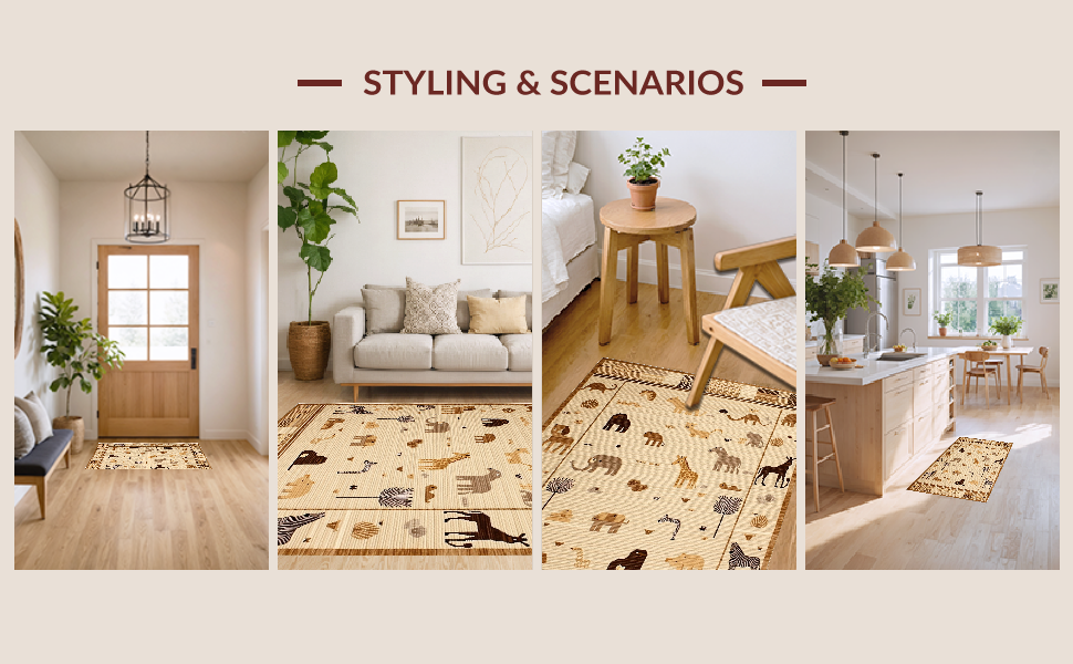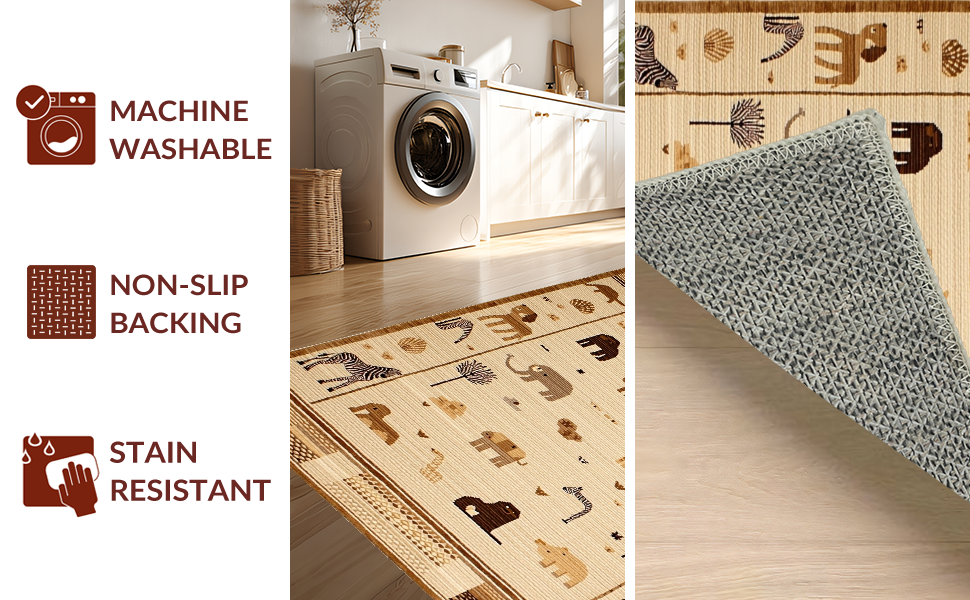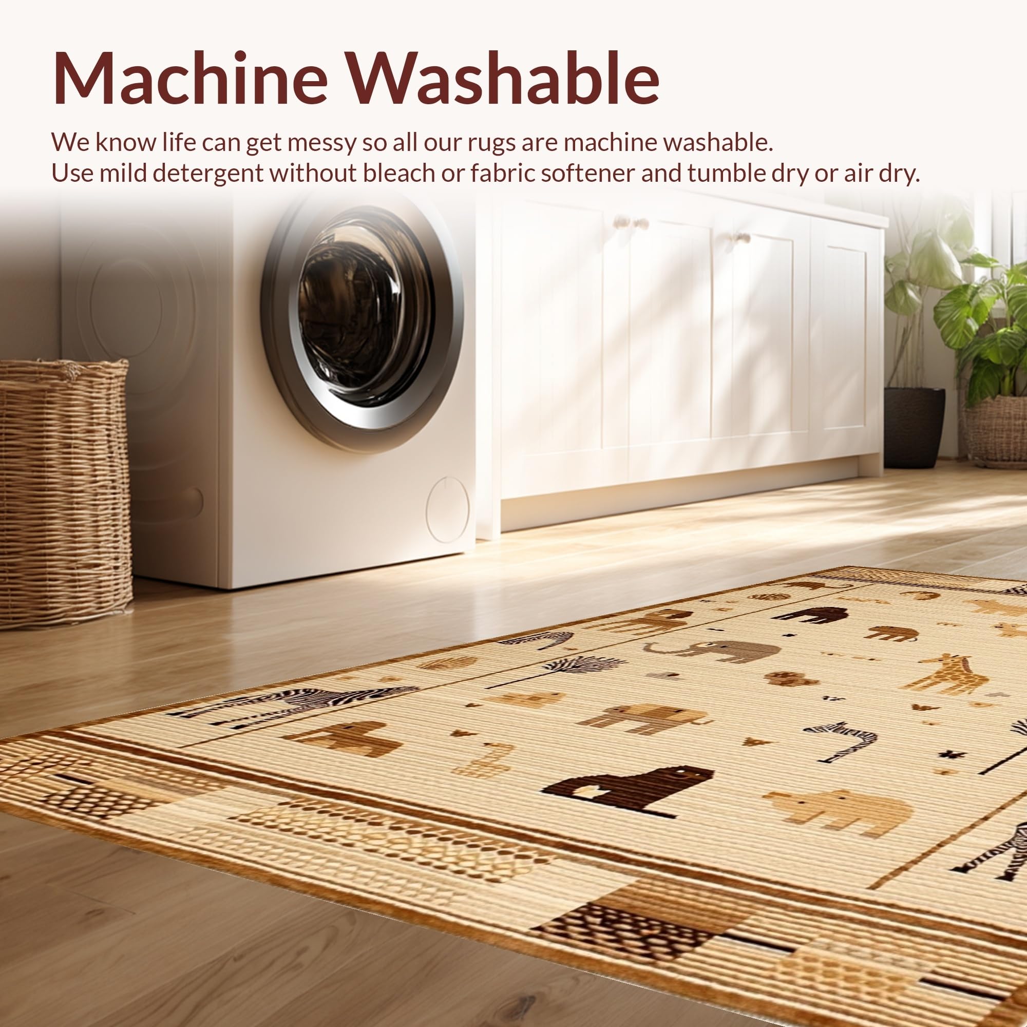 Ultra Soft Area Rug, Non Slip, Stain Resistant, Washable Area Rugs for Living Room, Bedroom, Minimalist Safari Chic Play Surface(Beige) Overview: