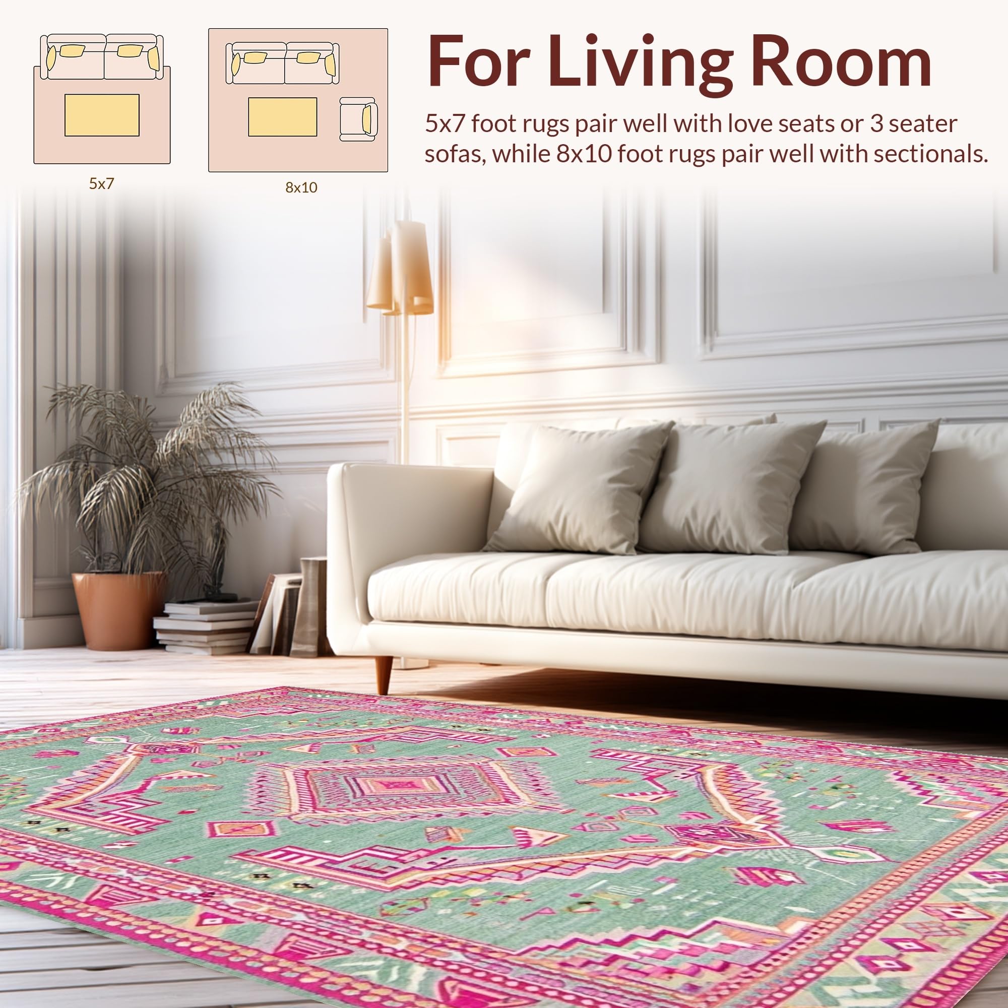 Ultra Soft Area Rug, Non Slip, Stain Resistant, Washable Area Rugs for Living Room, Bedroom, Minimalist Sage Abstract Style(Green) Overview: