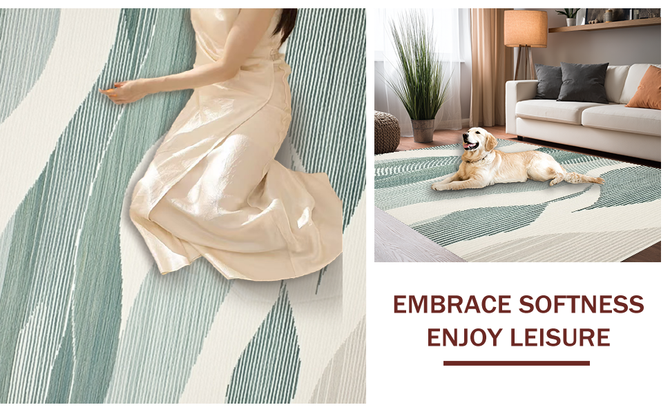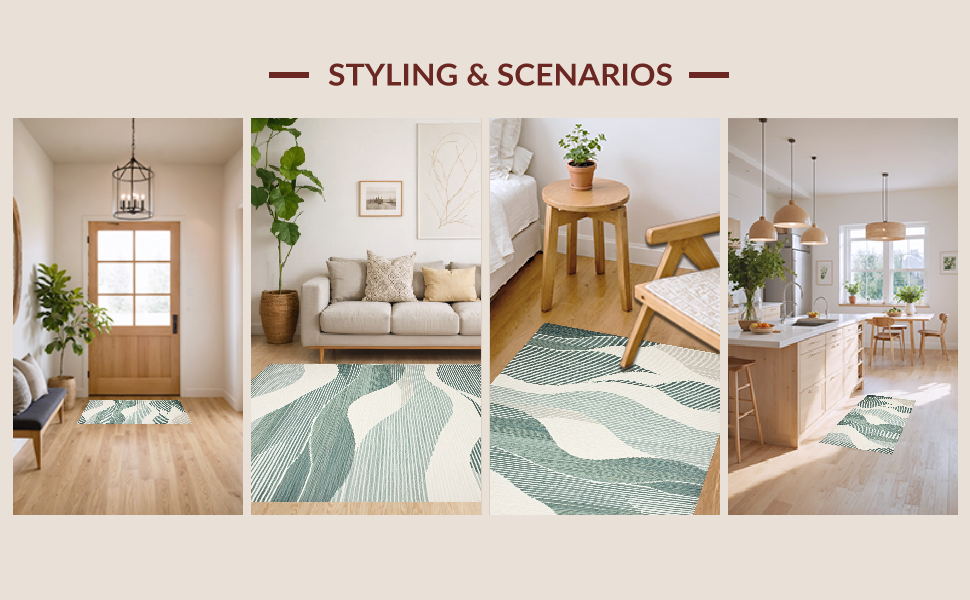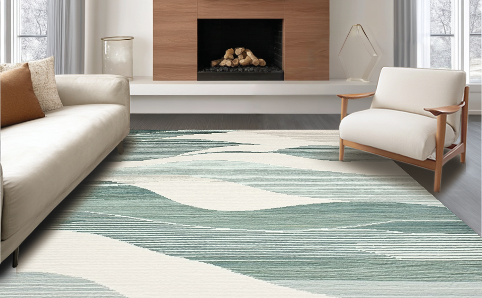 Ultra Soft Area Rug, Non Slip, Stain Resistant, Washable Area Rugs for Living Room, Bedroom, Minimalist Sage Cream Ripple Effect(Beige) Overview: