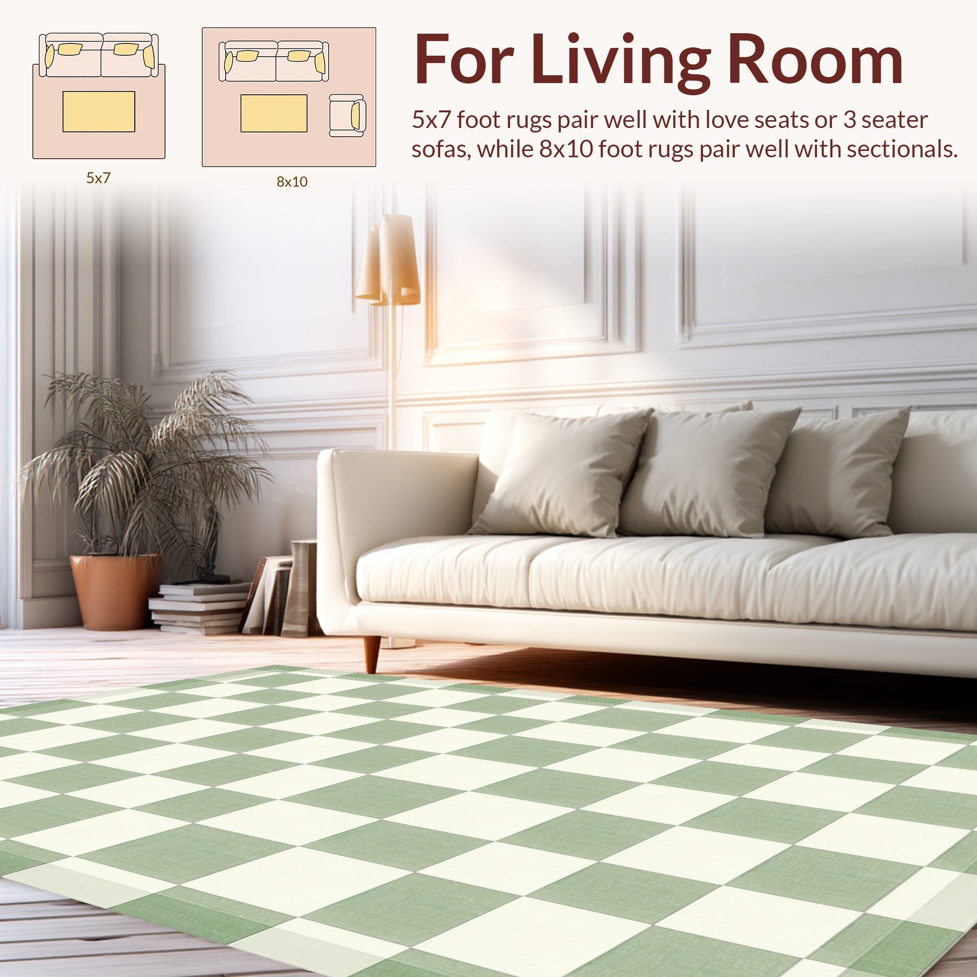 Ultra Soft Area Rug, Non Slip, Stain Resistant, Washable Area Rugs for Living Room, Bedroom, Minimalist Sage Green Checkerboard Area Rug Washable Indoor Floor Carpet(Green) Overview: