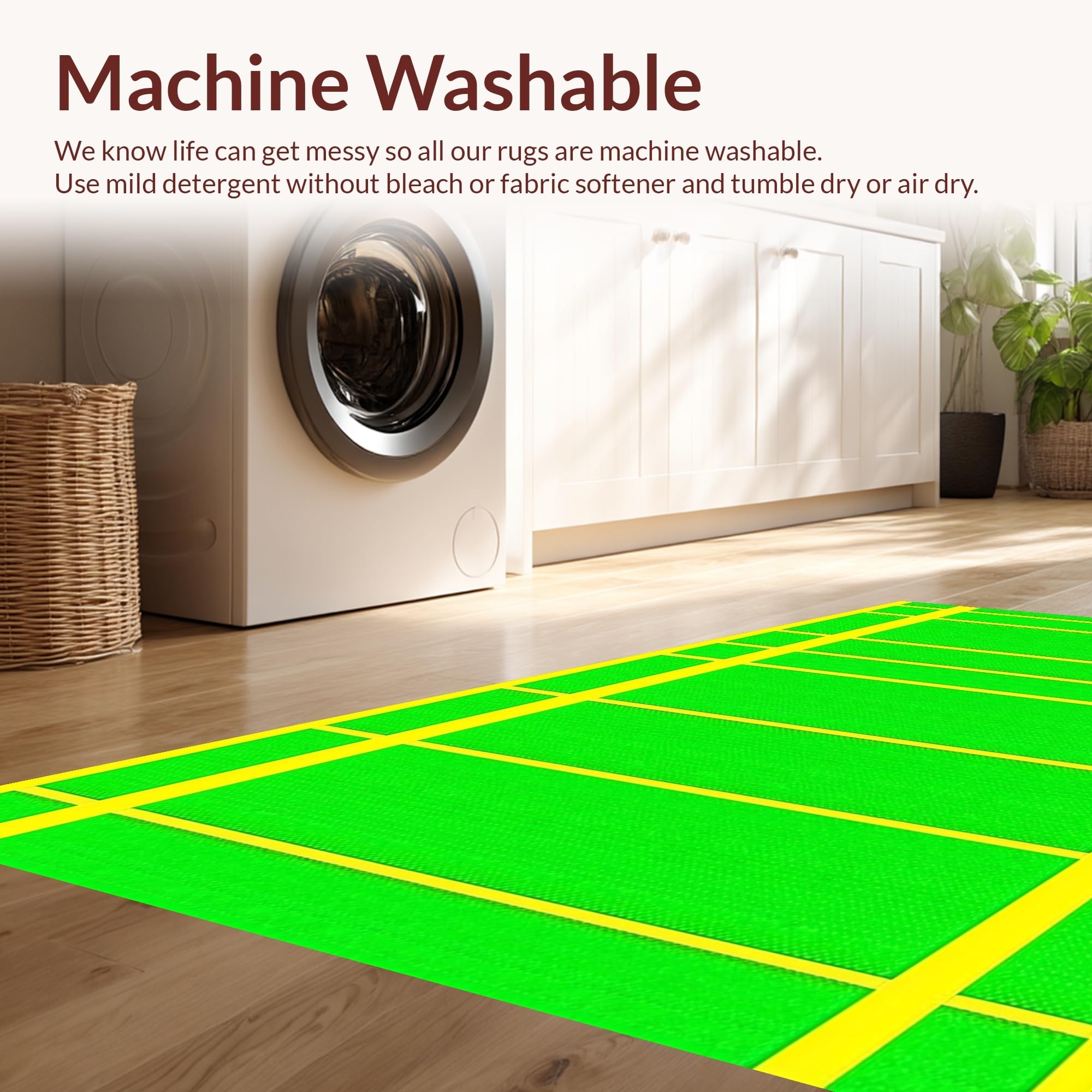 - Machine Washable: Our rugs can be easily thrown in the wash machine.
