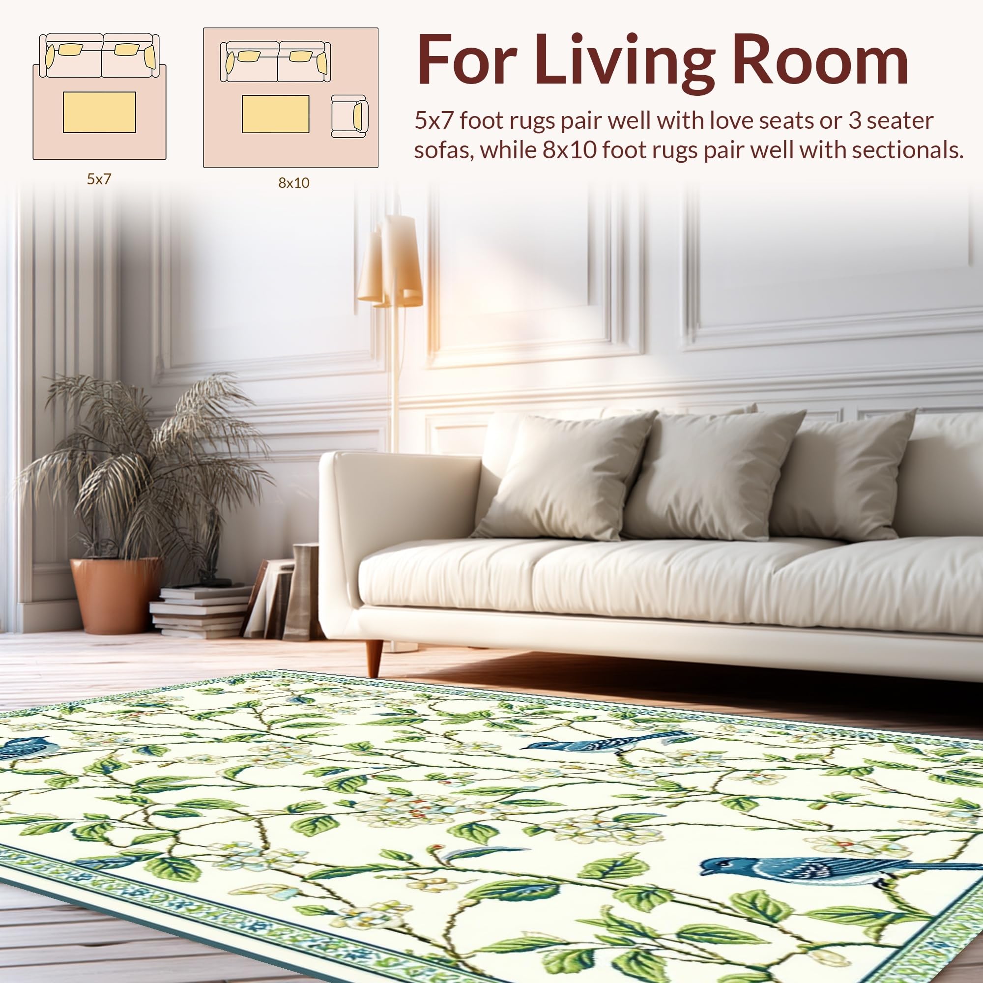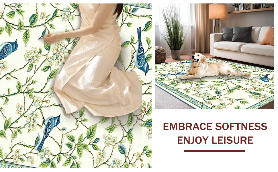 Ultra Soft Area Rug, Non Slip, Stain Resistant, Washable Area Rugs for Living Room, Bedroom, Minimalist Seasonal Twigs and Feathers(Beige) Overview:
